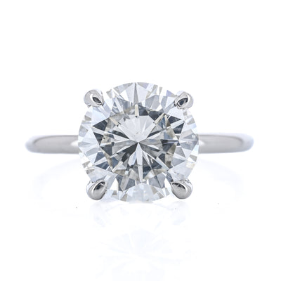 3.02CTW Round Diamond Engagement Ring - Solitaire + Hidden Halo - 14K White Gold