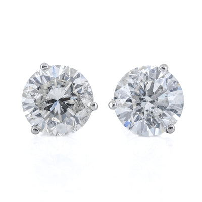 6.11CTW Round Diamond Stud Earrings - Martini Set + 3-Prong - 14K White Gold