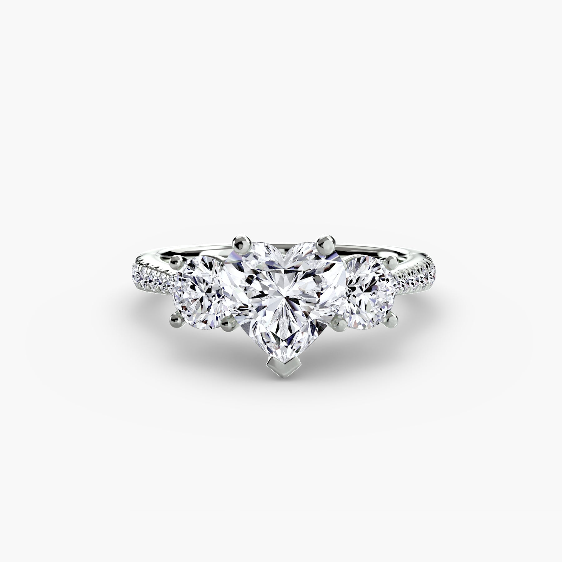 This elegant three-stone ring symbolizes your past, present, and future, elevated with a pavé band for extra sparkle and detail. A perfect union of meaning and brilliance.