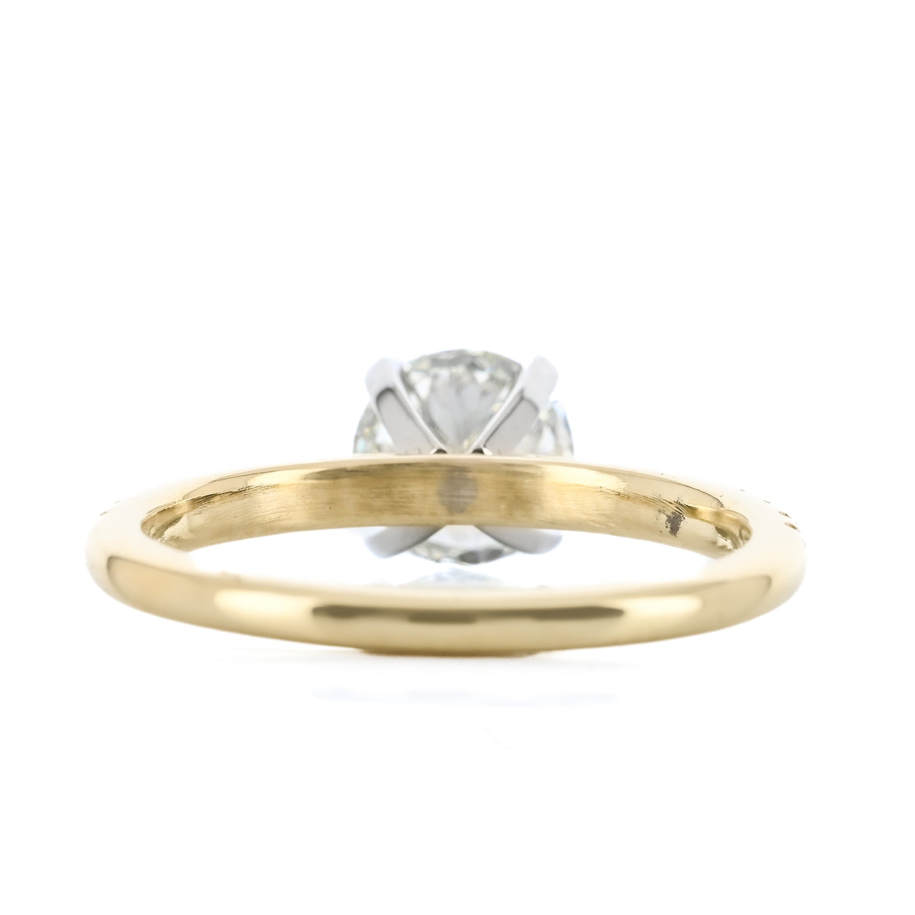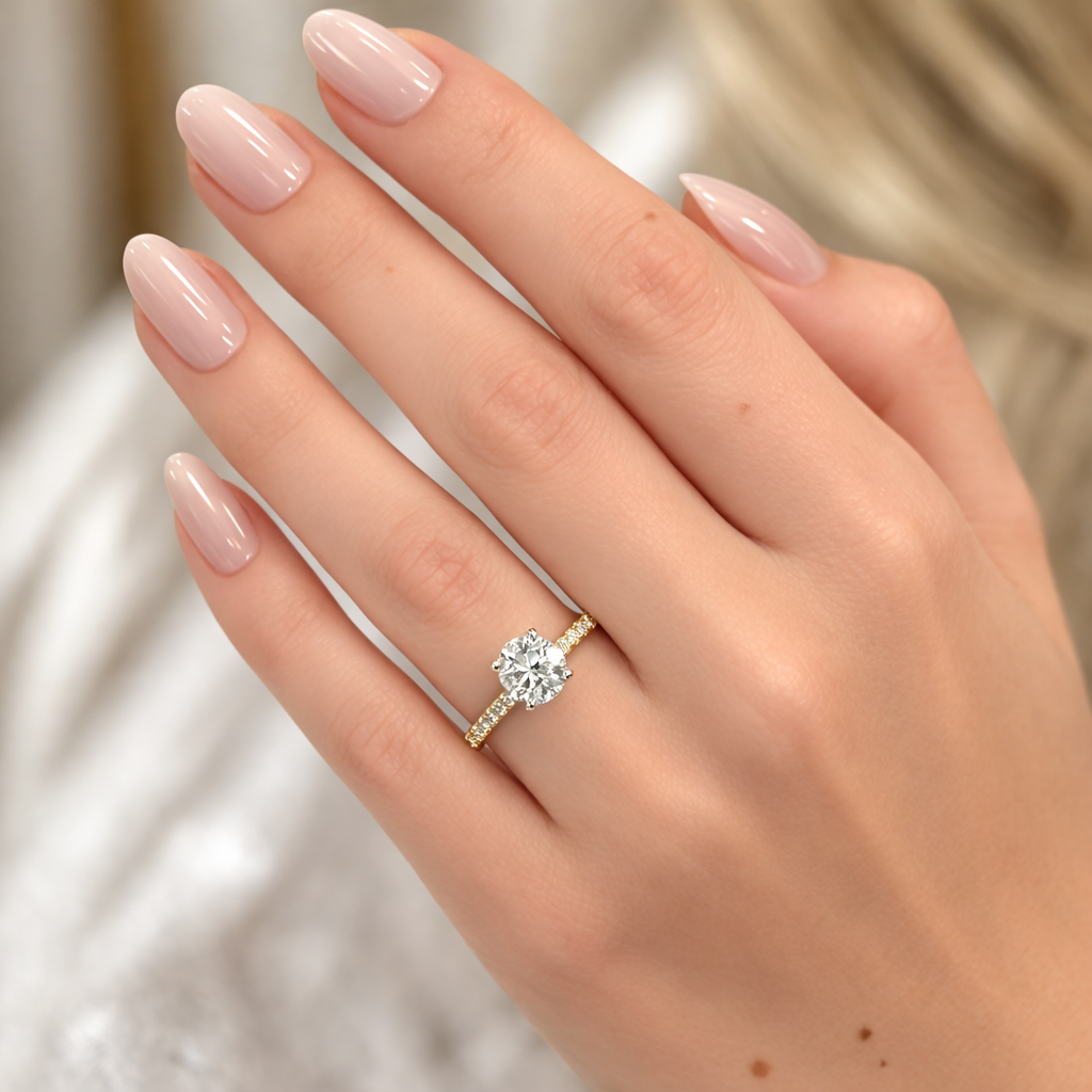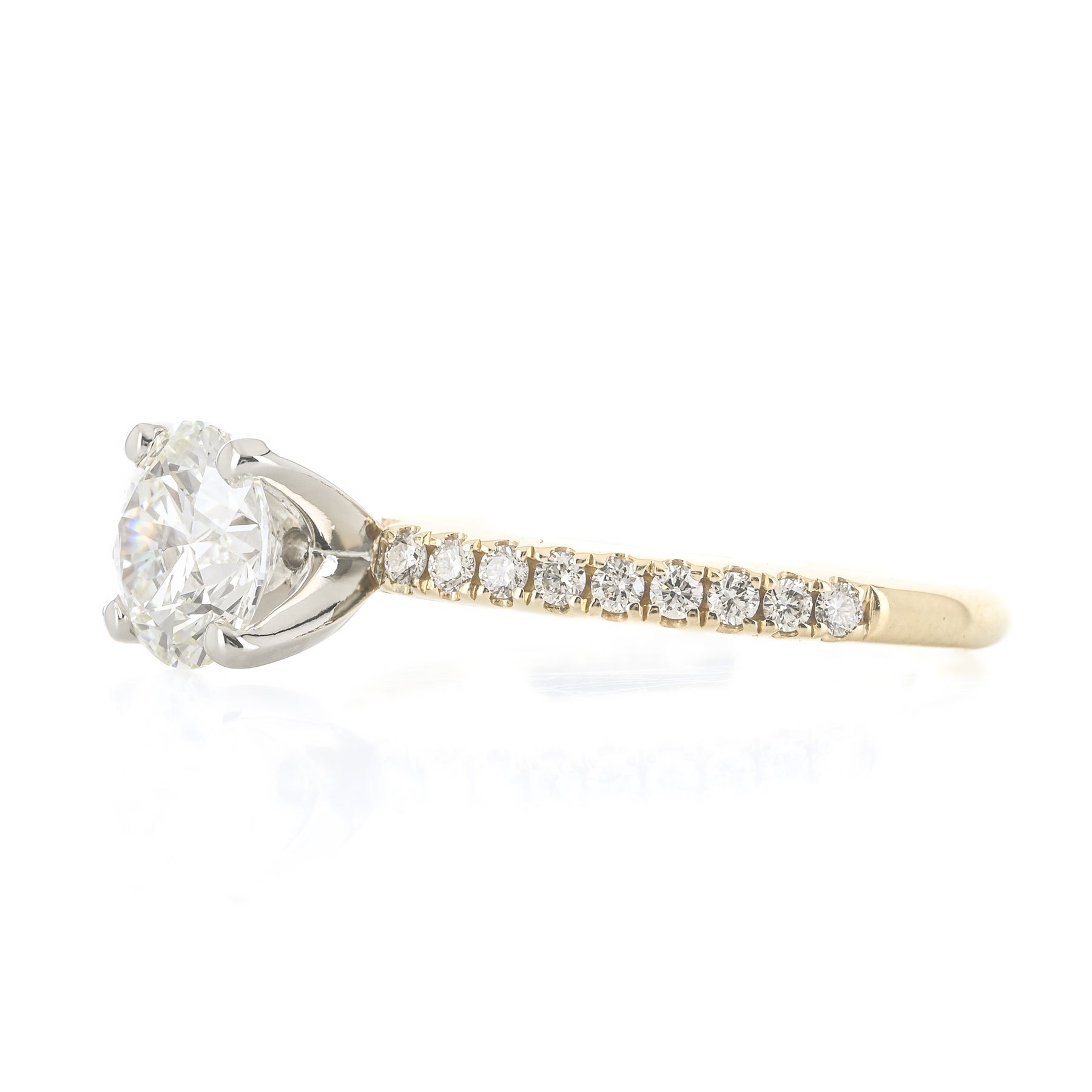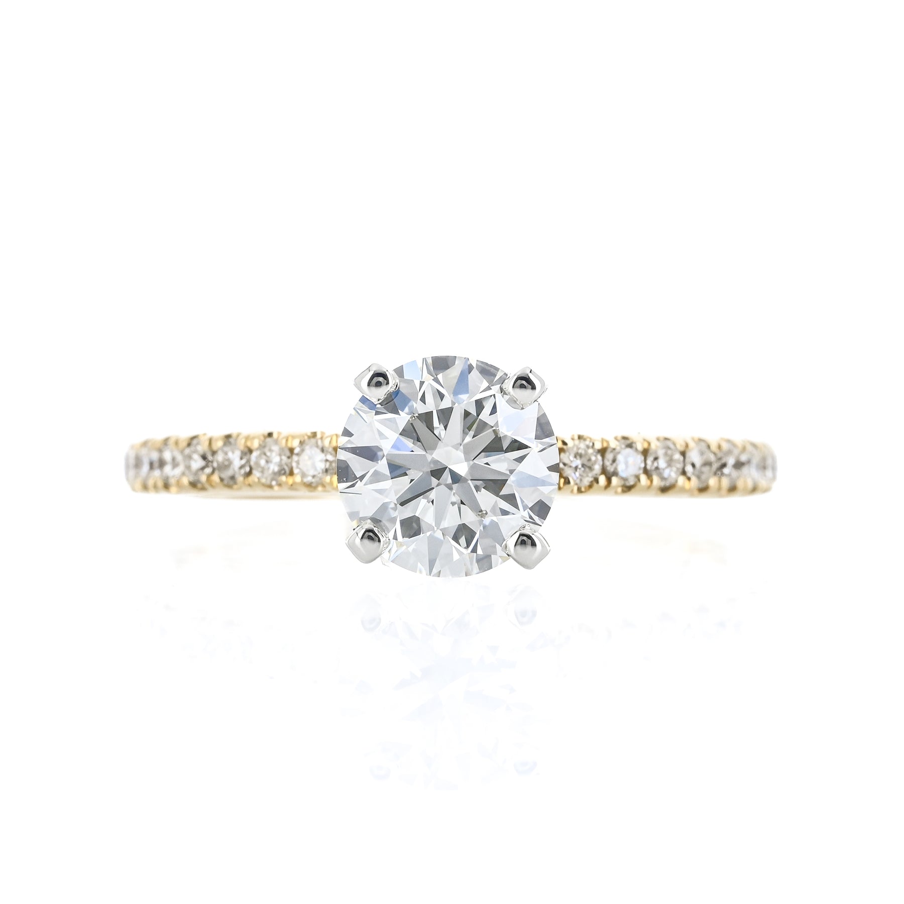 1.31CTW Round Diamond Engagement Ring - Pavé Band - 14K Yellow Gold + White Gold