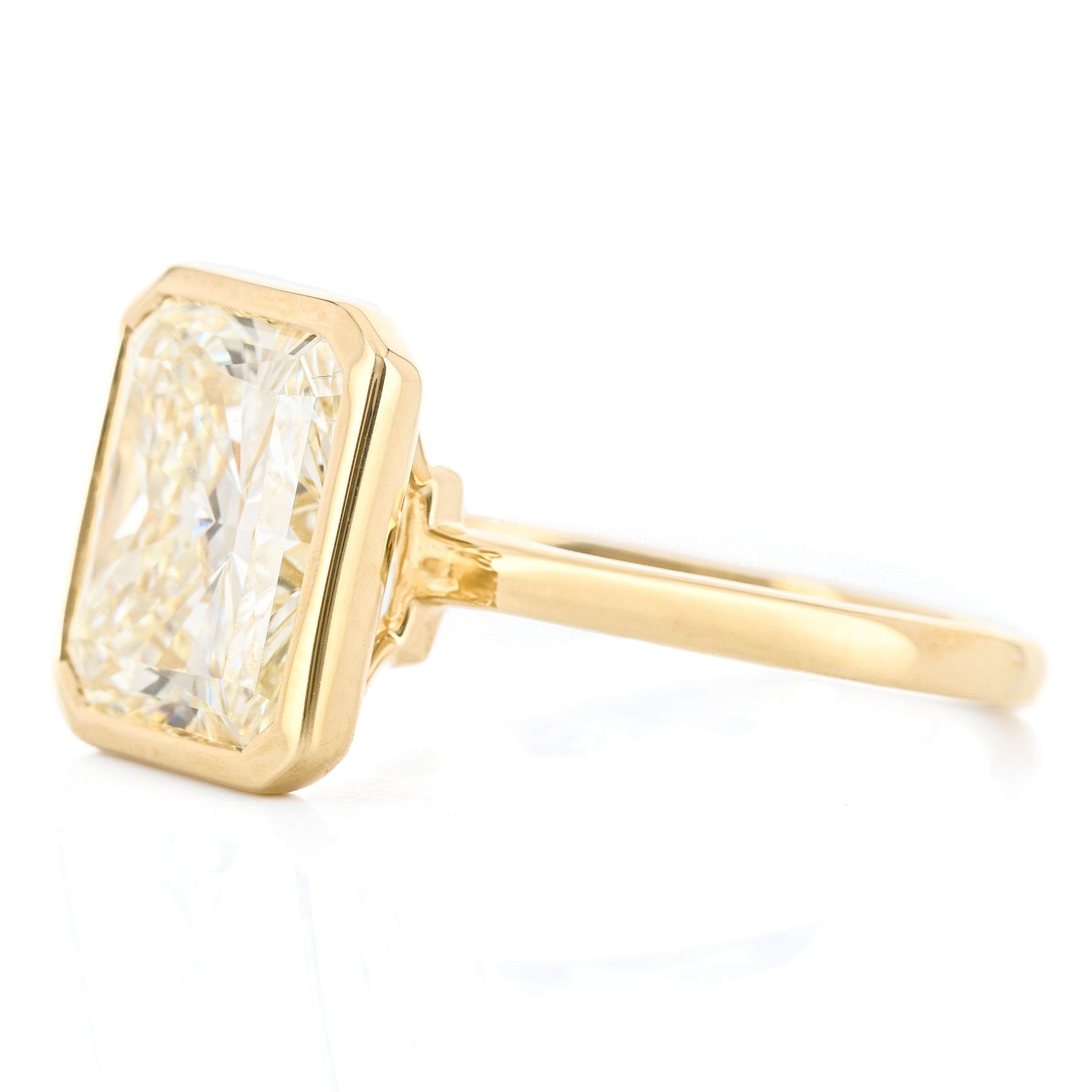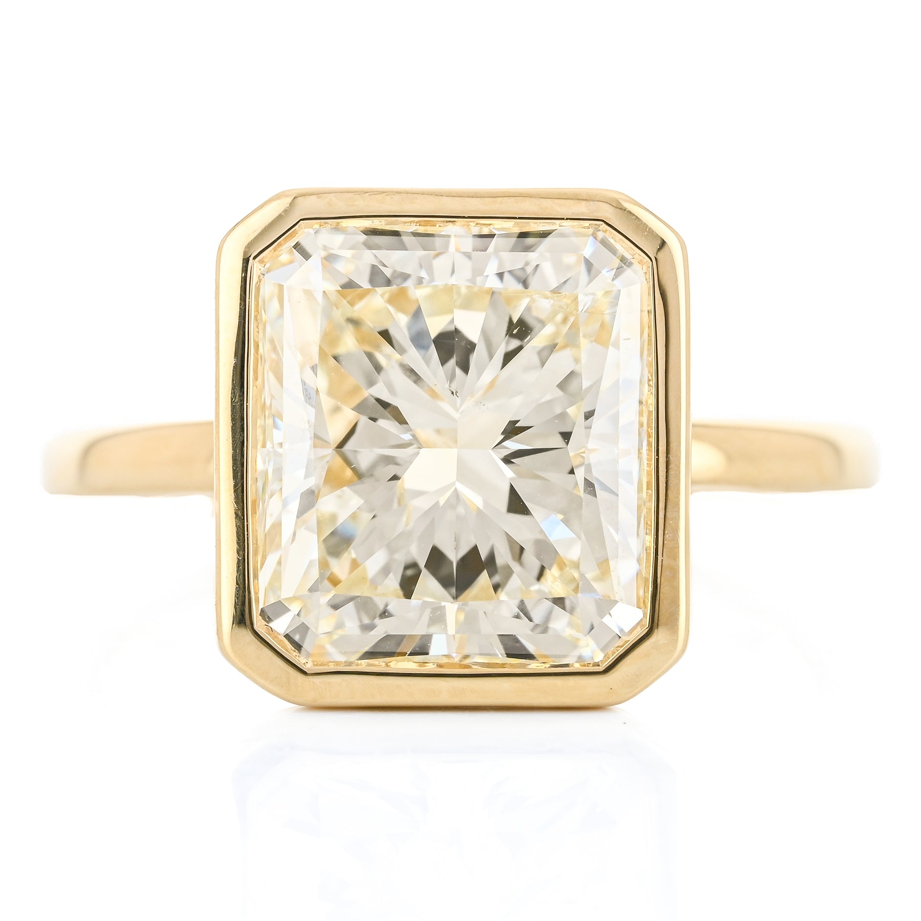 5.02CT Radiant Diamond Engagement Ring - Bezel + Solitaire - 14K Yellow Gold