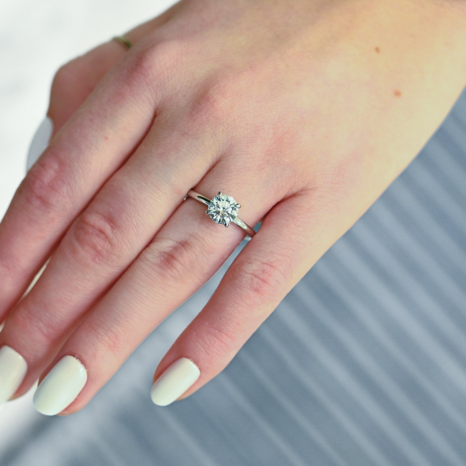 .75CTW Round Diamond Engagement Ring - Solitaire + Hidden Halo - 14K White Gold