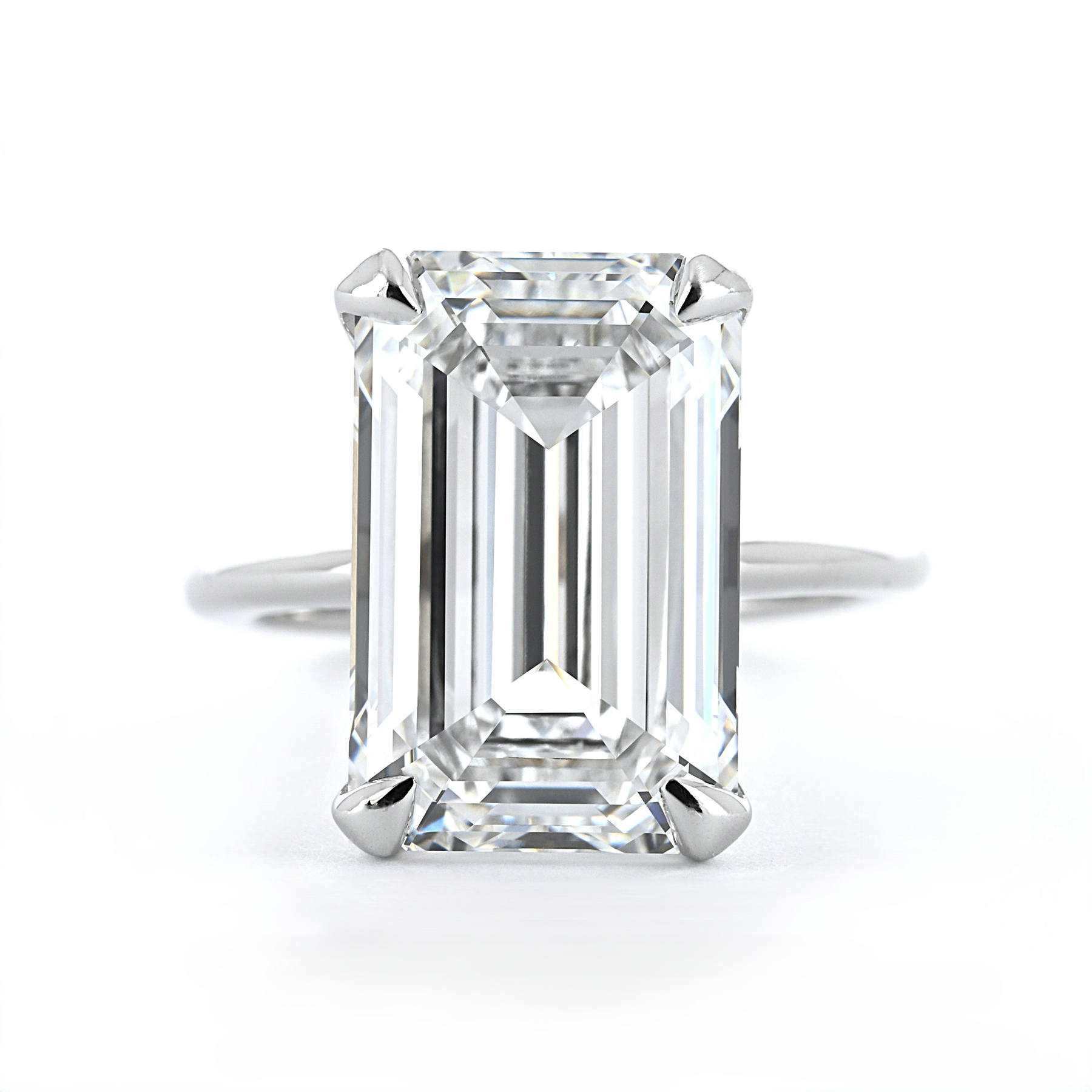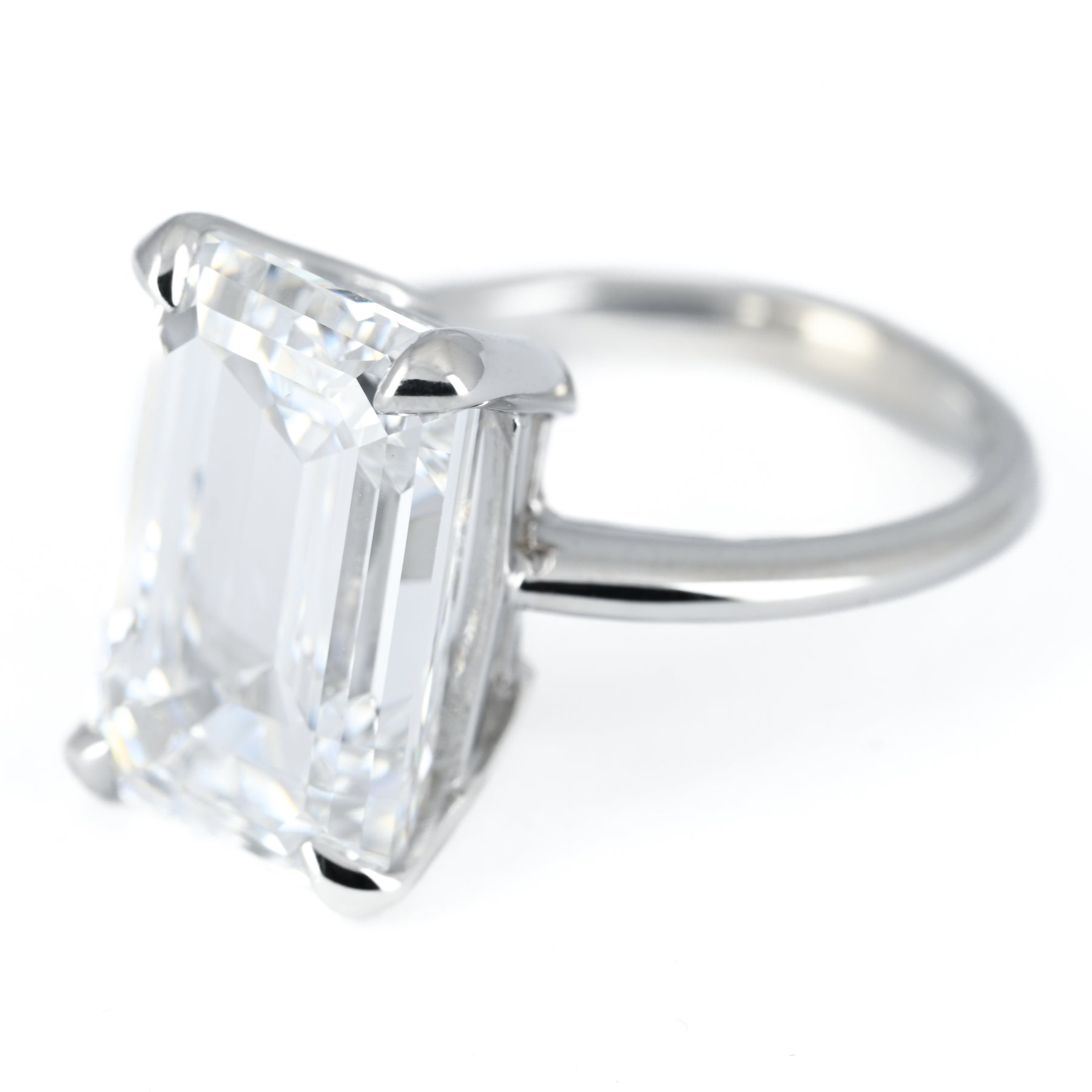 8.18ct Emerald Lab Grown Diamond Solitaire Engagement Ring – 14k White Gold