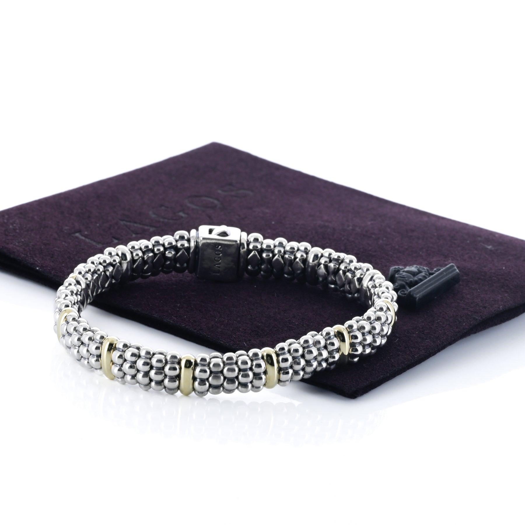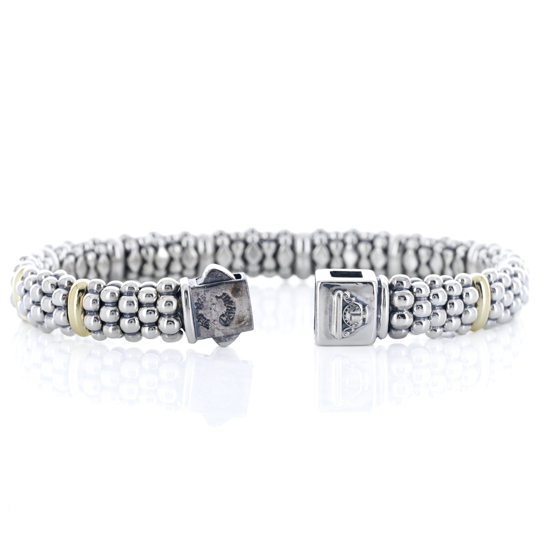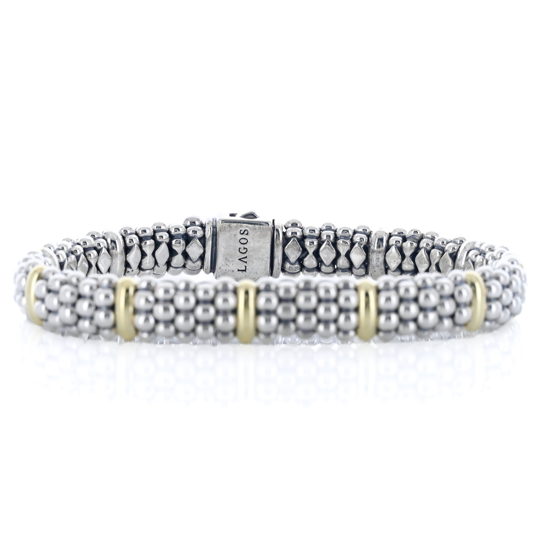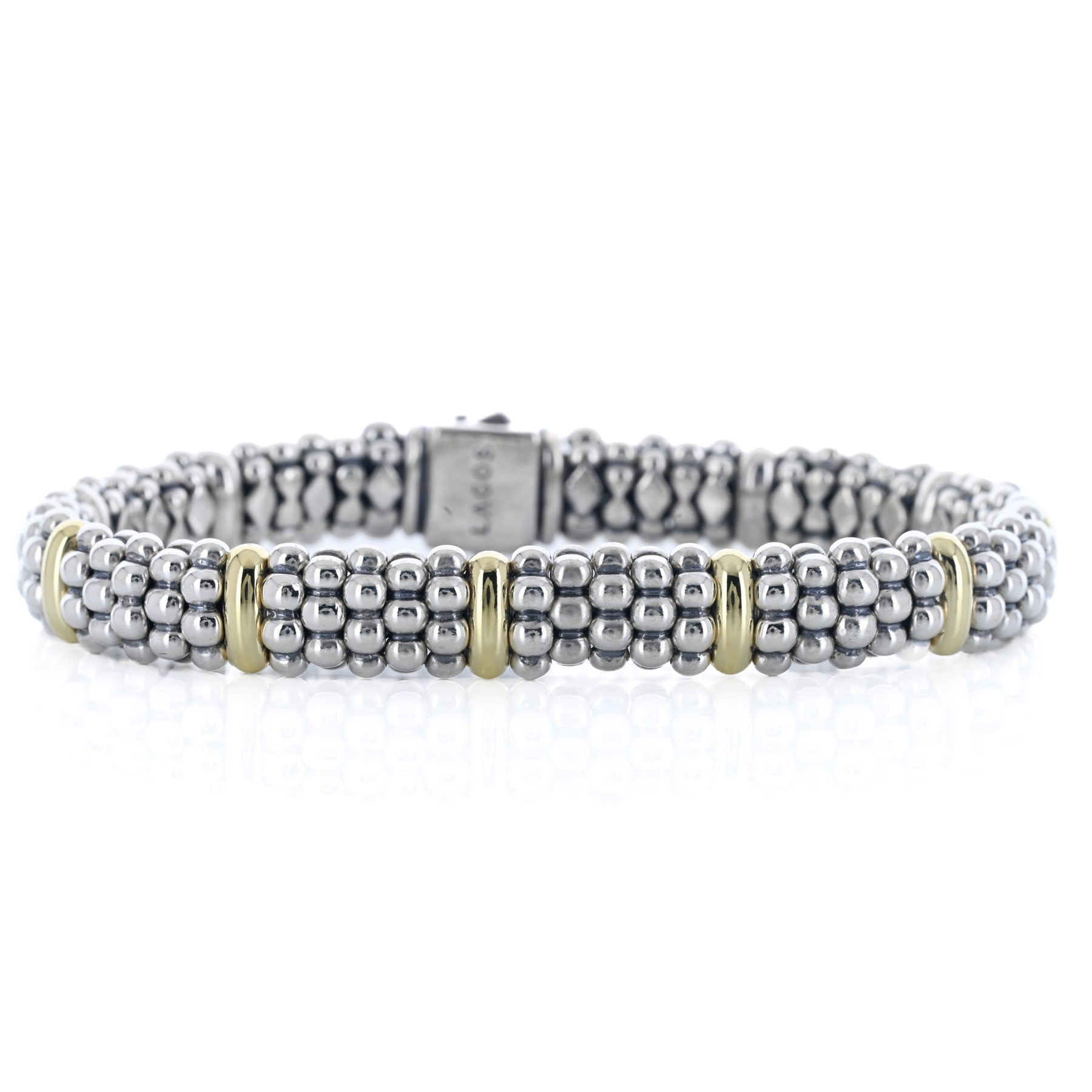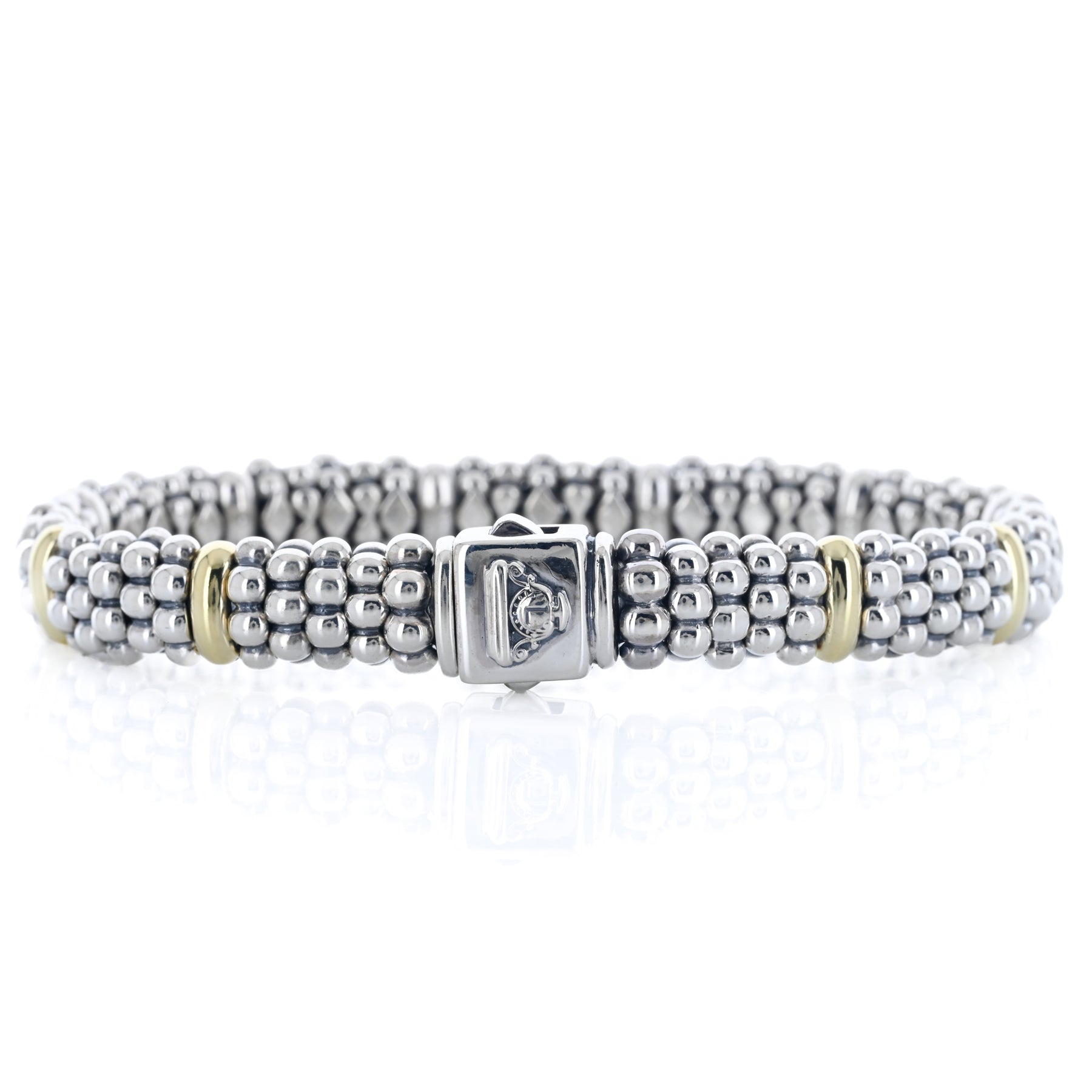 Lagos | Five Gold Station Caviar Bracelet, 6.5" - 18K Yellow Gold + 925 Sterling Silver
