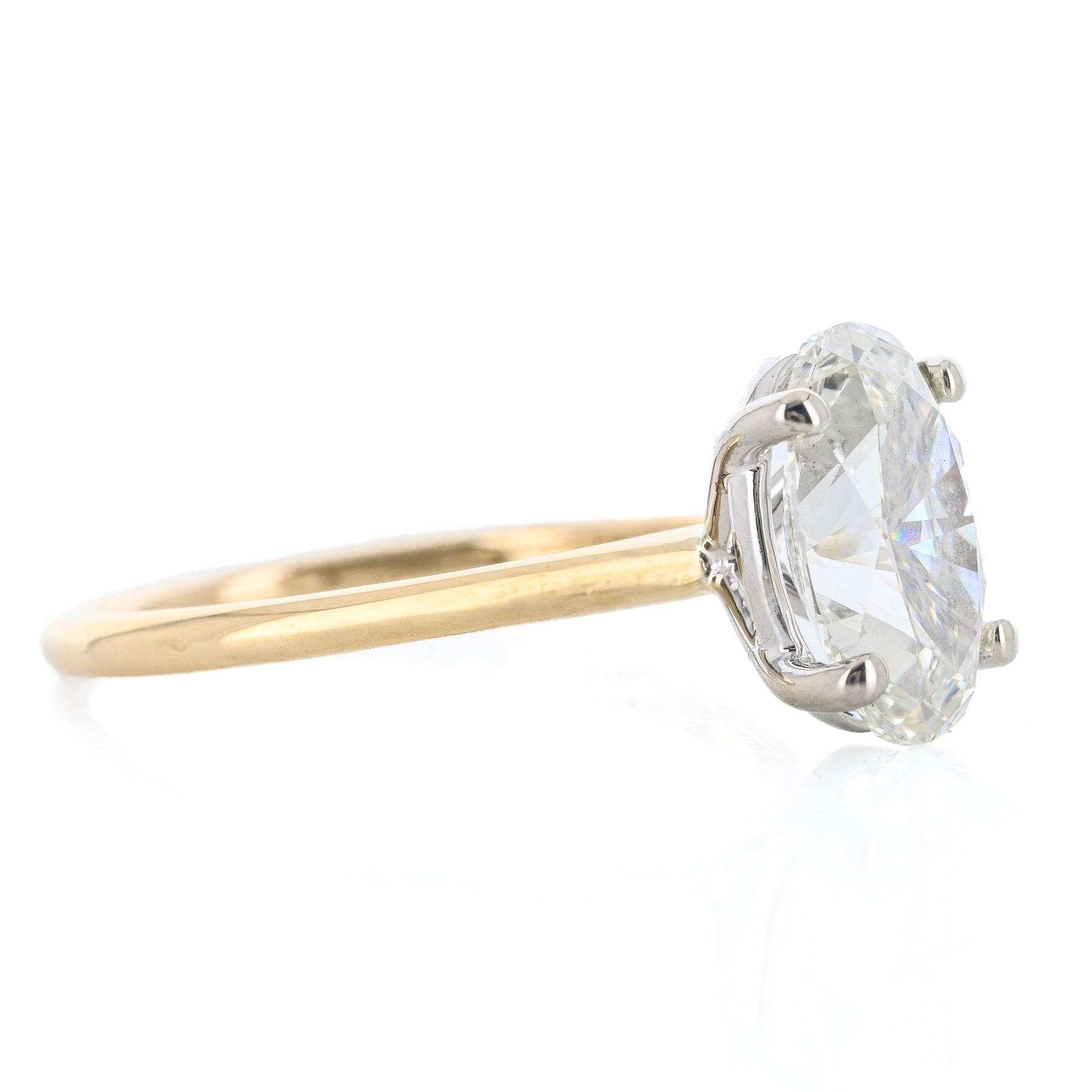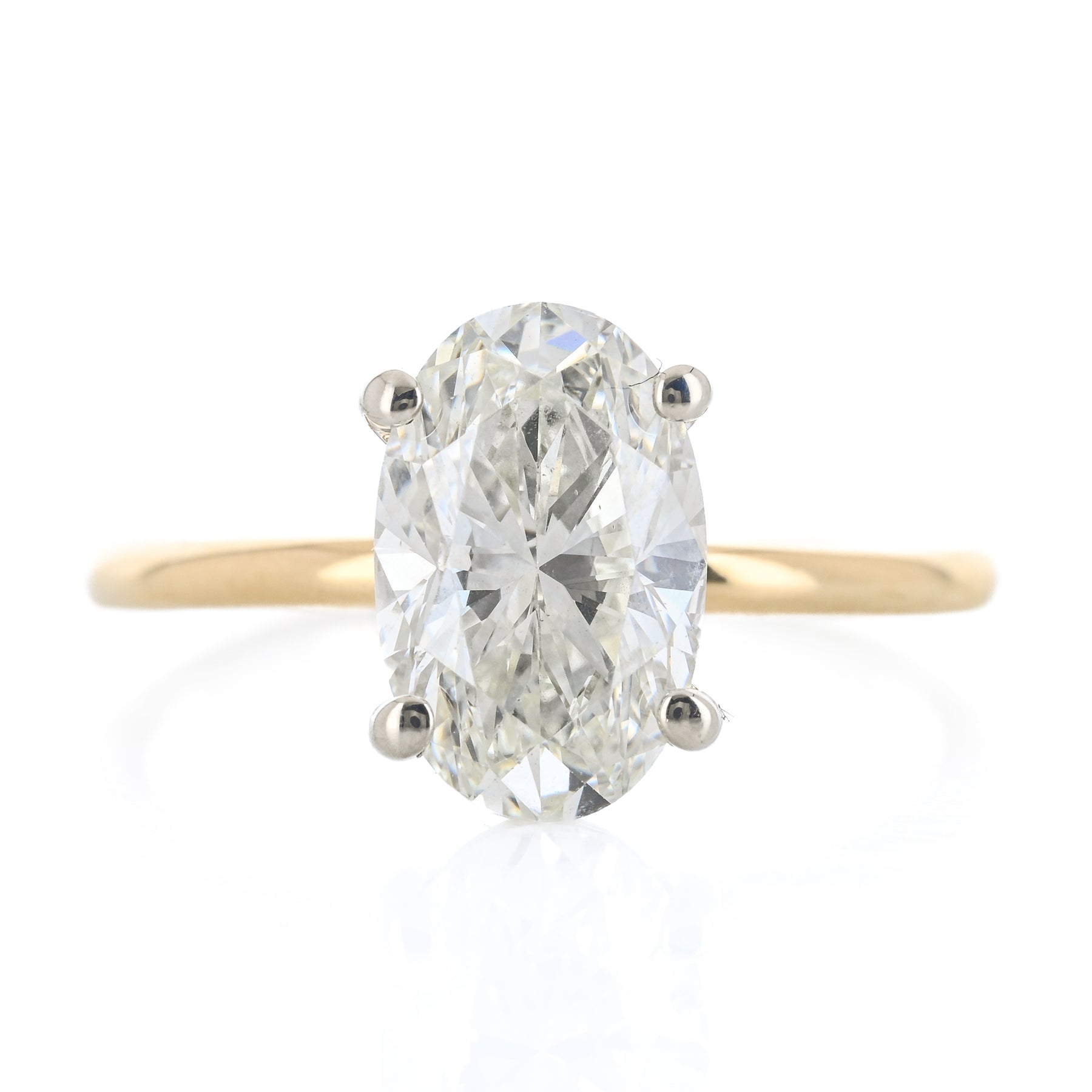 2.28CT Oval Diamond Engagement Ring - Solitaire - 14K Yellow Gold + 14K White Gold