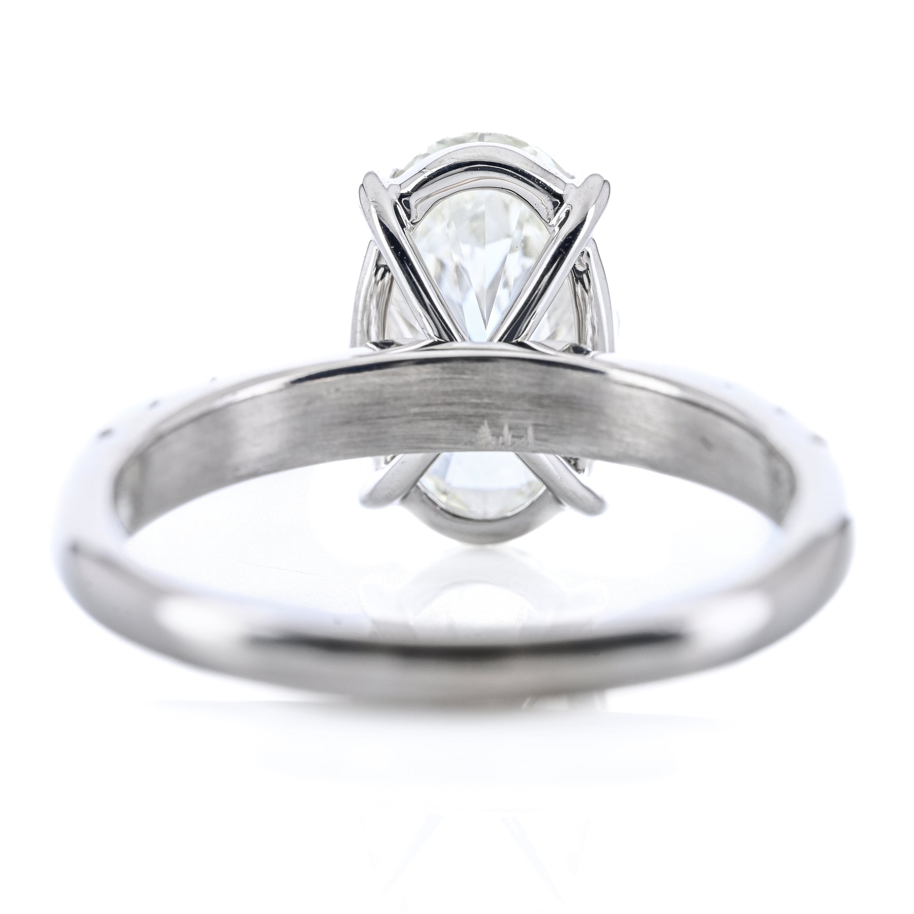 2.74CTW Oval Diamond Engagement Ring - Split Prong Round Diamond Band - 14K White Gold
