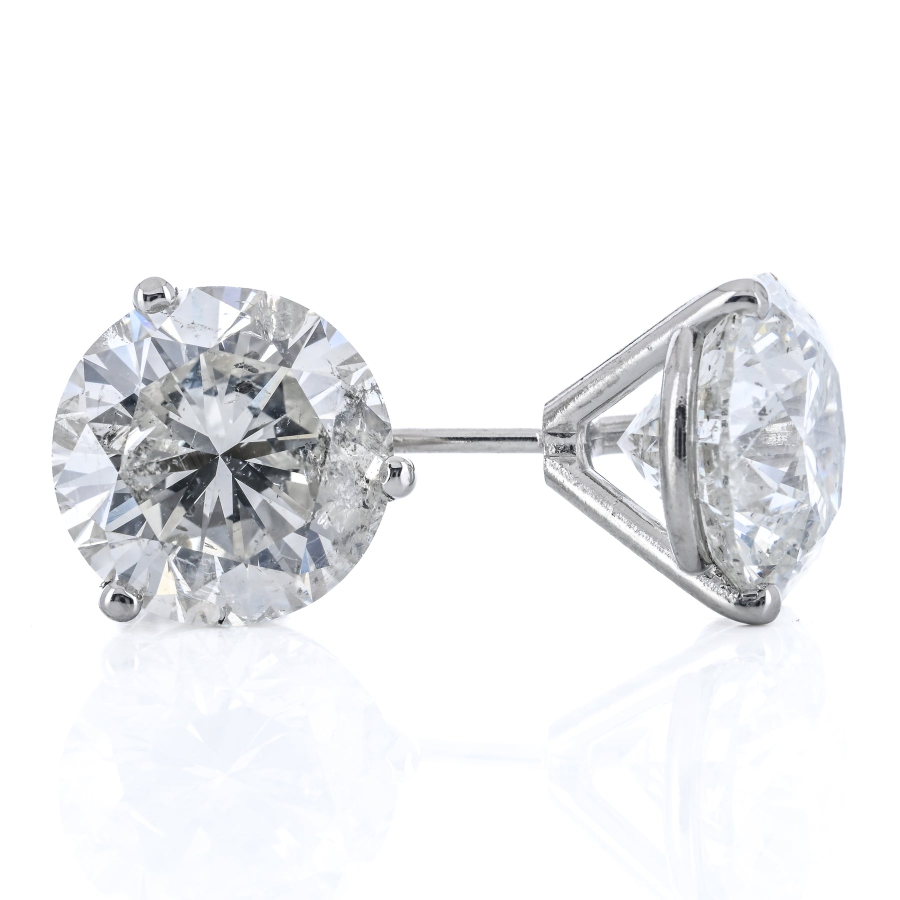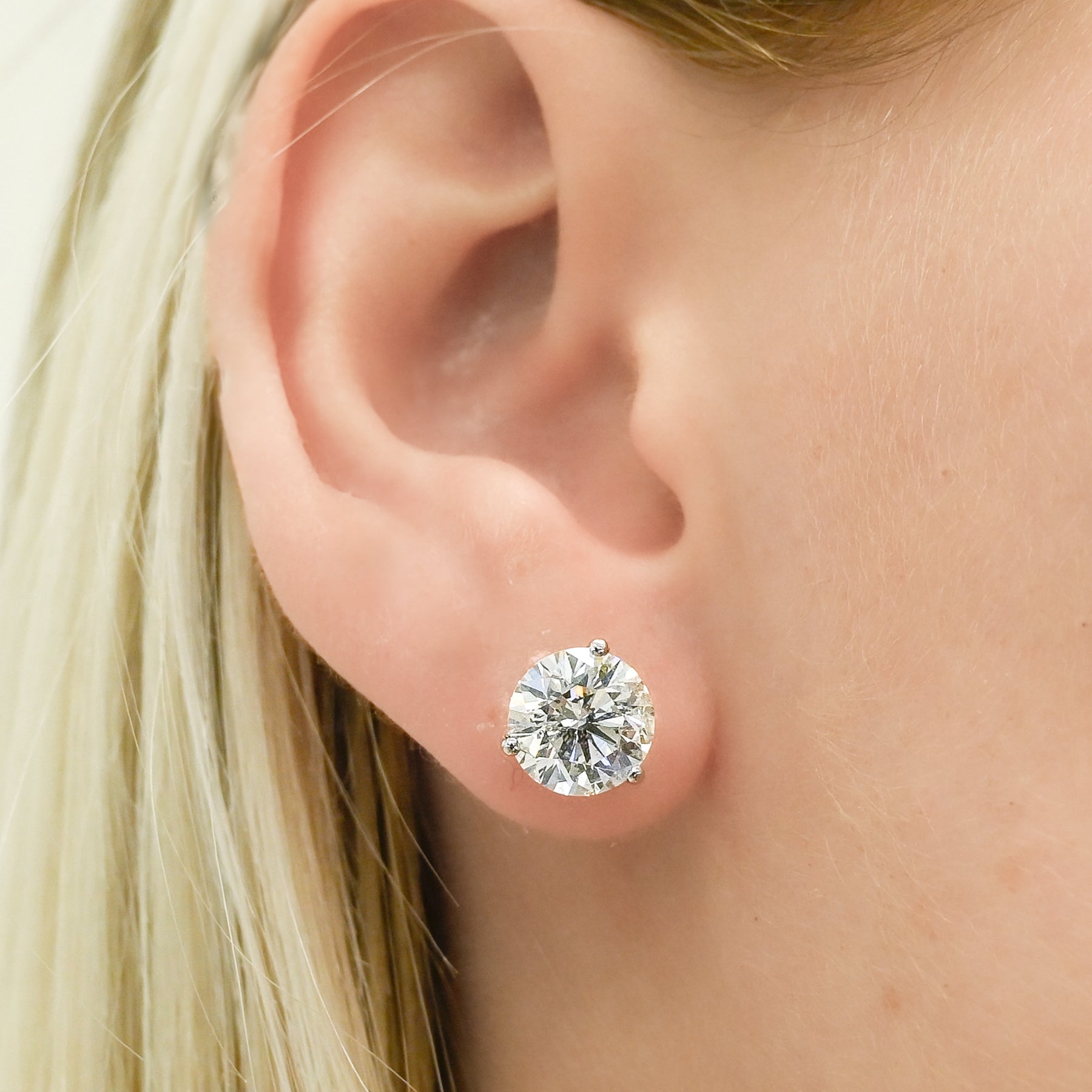 6.11CTW Round Diamond Stud Earrings - Martini Set + 3-Prong - 14K White Gold