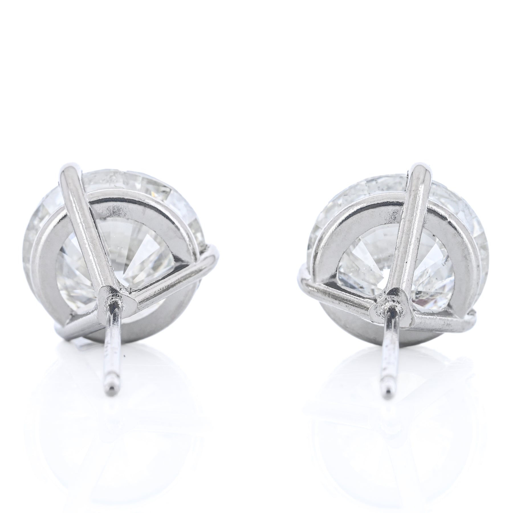 These stud earrings are crafted in 14K white gold and feature a total of 6.11 carats of GIA-certified round brilliant cut diamonds.
