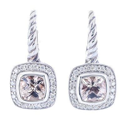 David Yurman | .13CTW Albion Morganite + Diamond Drop Earrings - 925 Sterling Silver