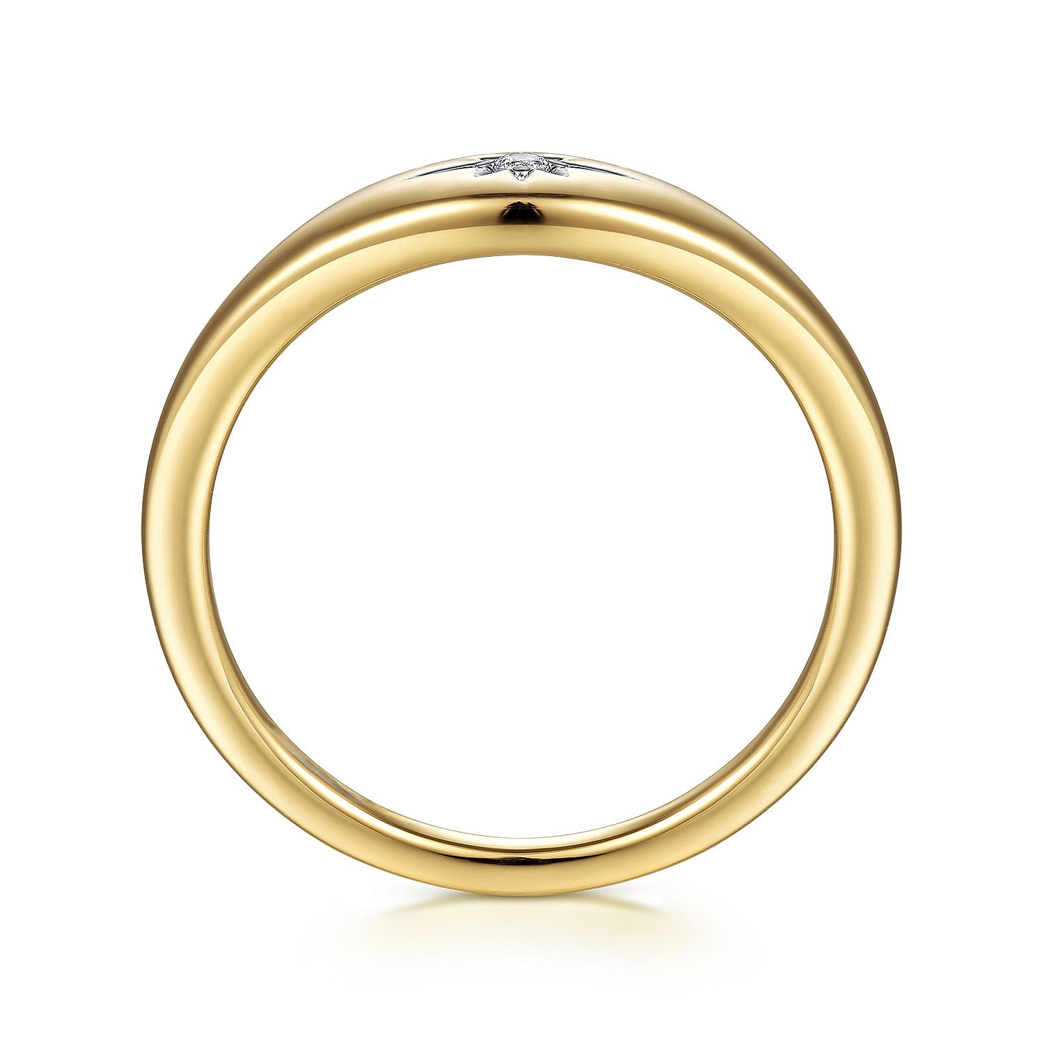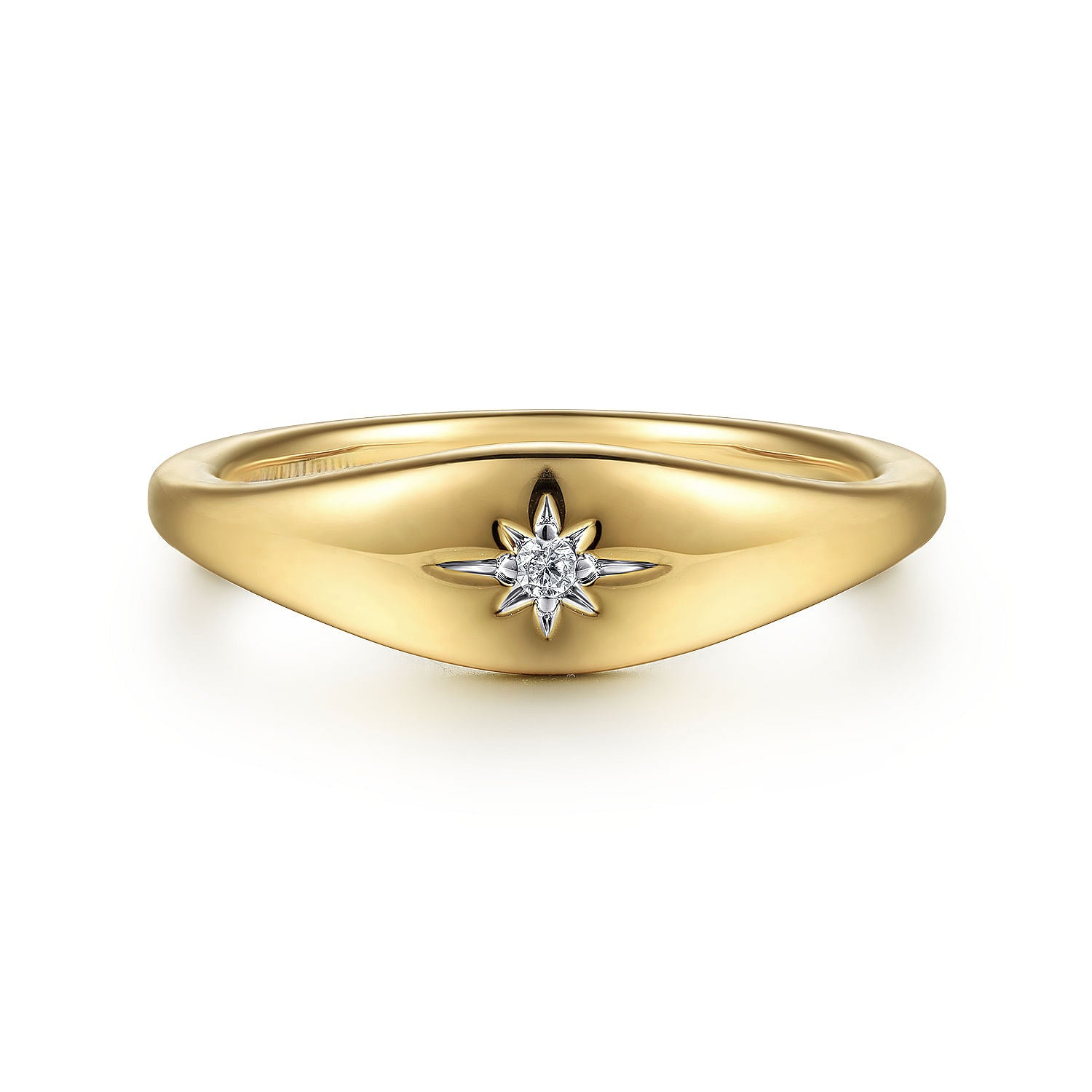 0.02ct Round Diamond Starburst Signet Ring - 14K Yellow Gold
