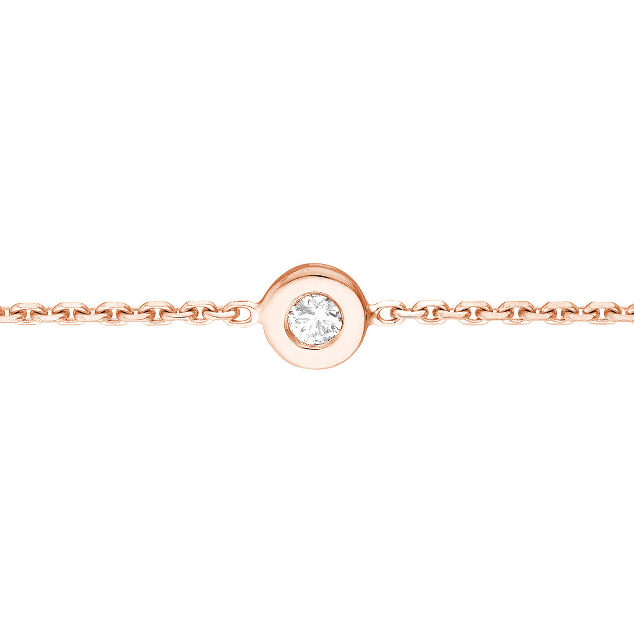 Introducing our latest diamond bezel necklace! This adjustable choker features a 0.03ct round diamond, set in a full bezel crafted from rose gold.