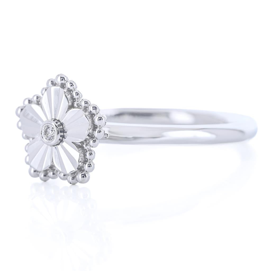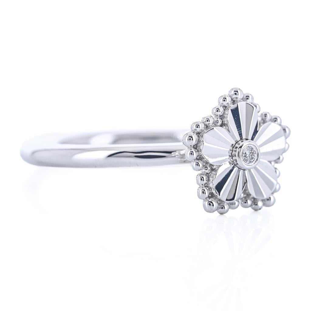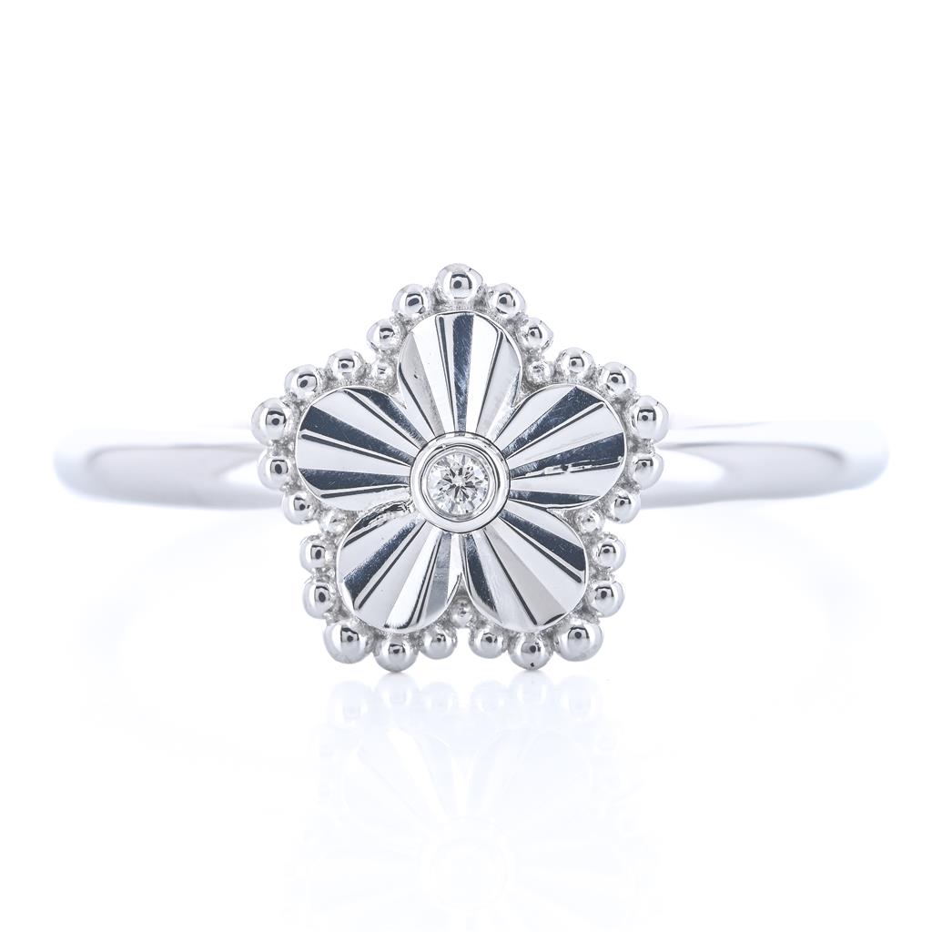 This sterling silver Bujukan flower frame ring features a 0.01 carat diamond accent. Size 6.5.