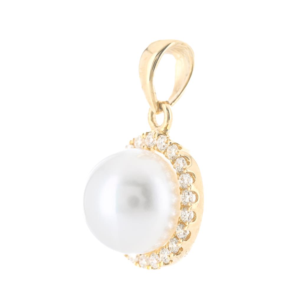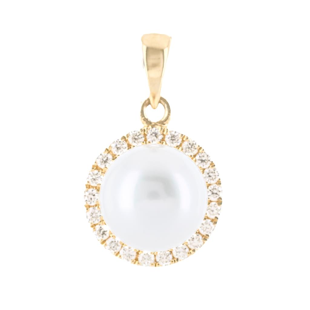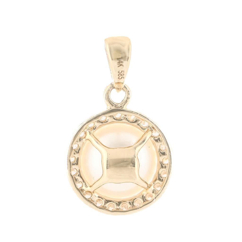 .08CTW Diamond + Cultured Freshwater Pendant - Halo - 14K Yellow Gold