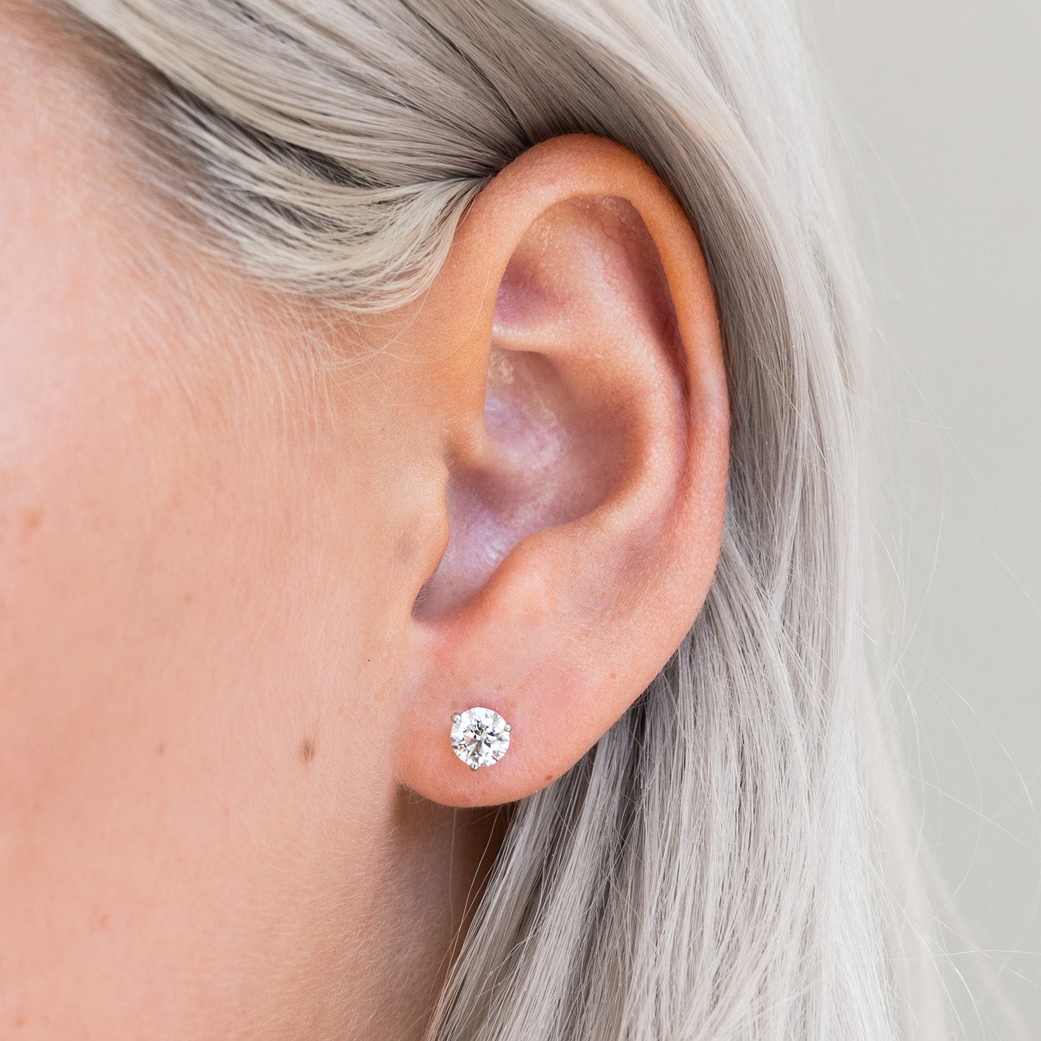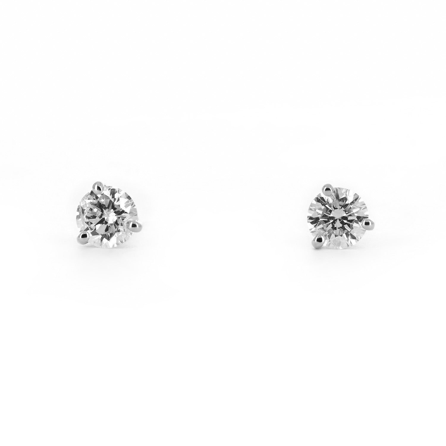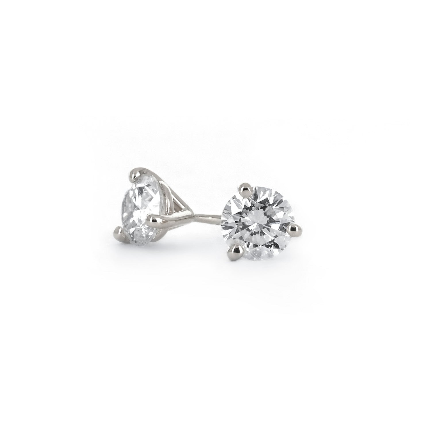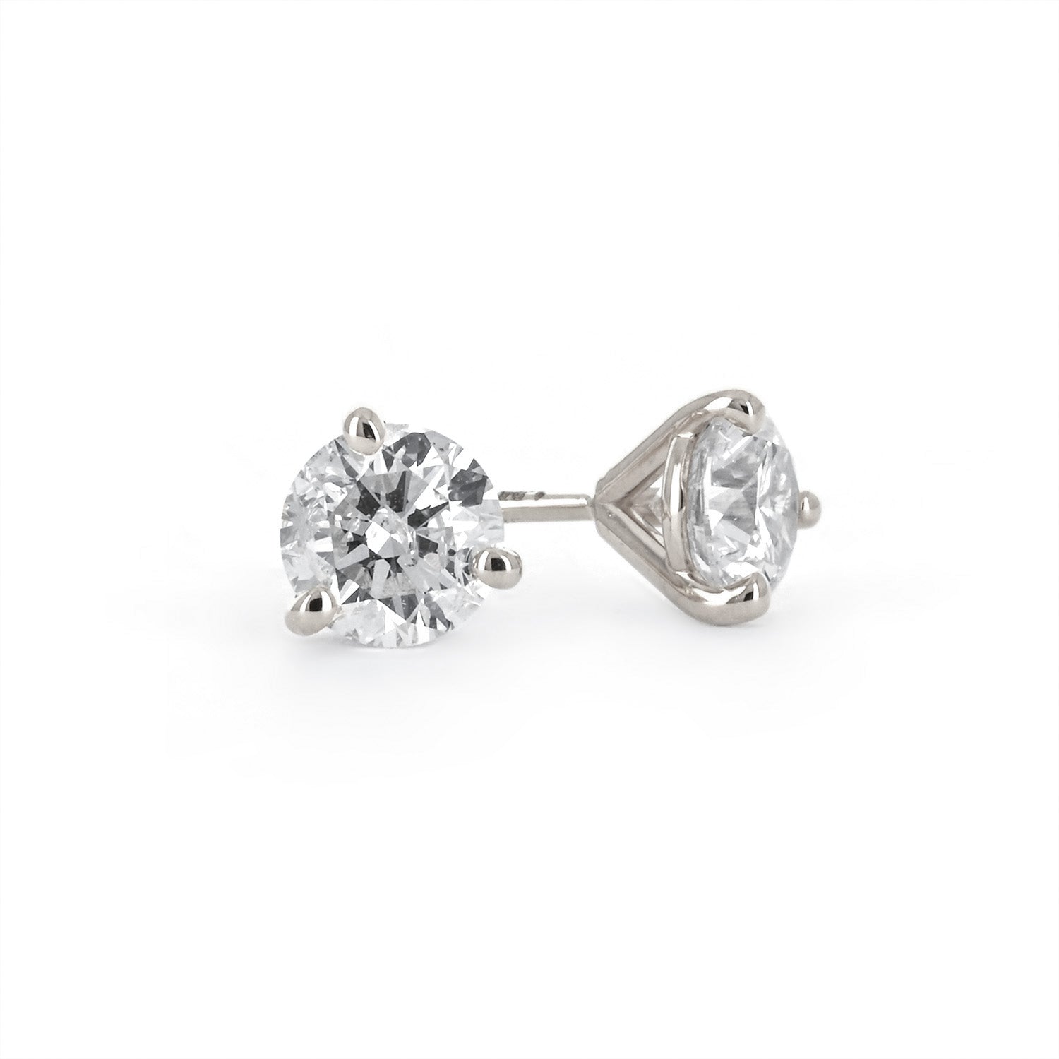 1.01ctw Round Diamond Stud Earrings, 3 Prong - 14K White Gold