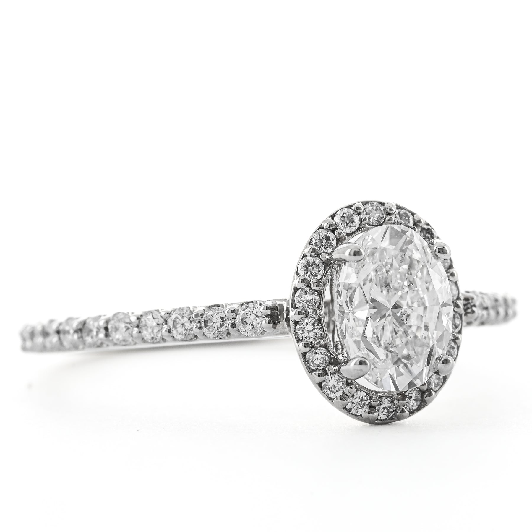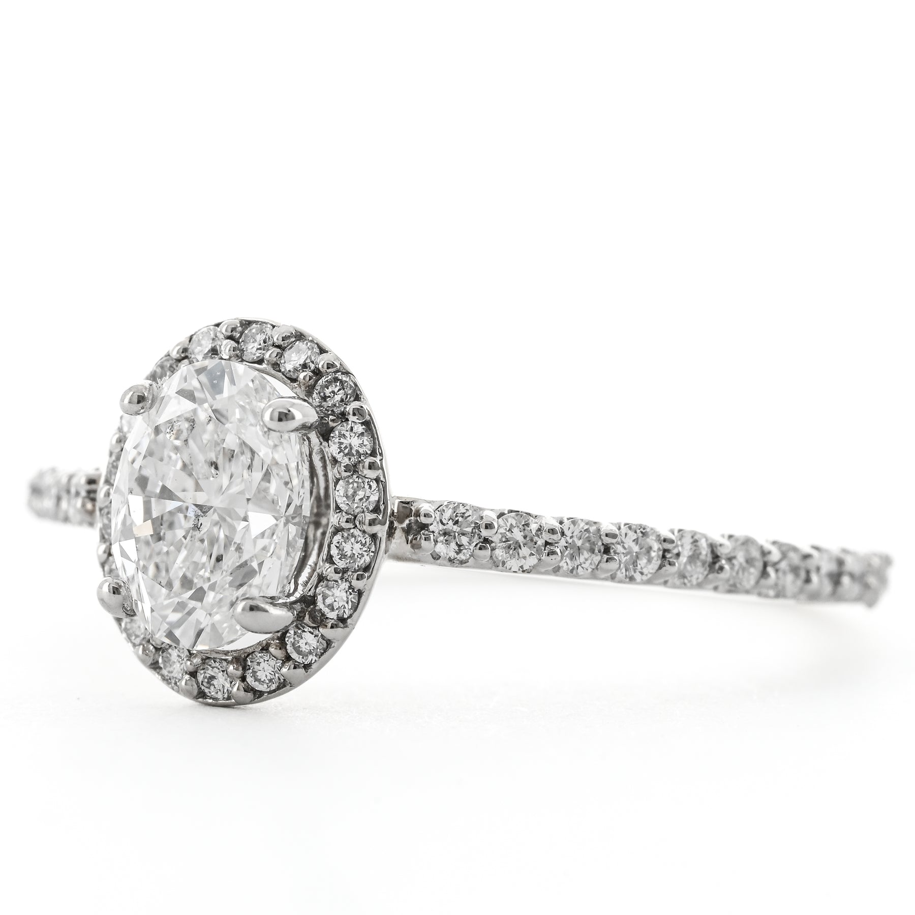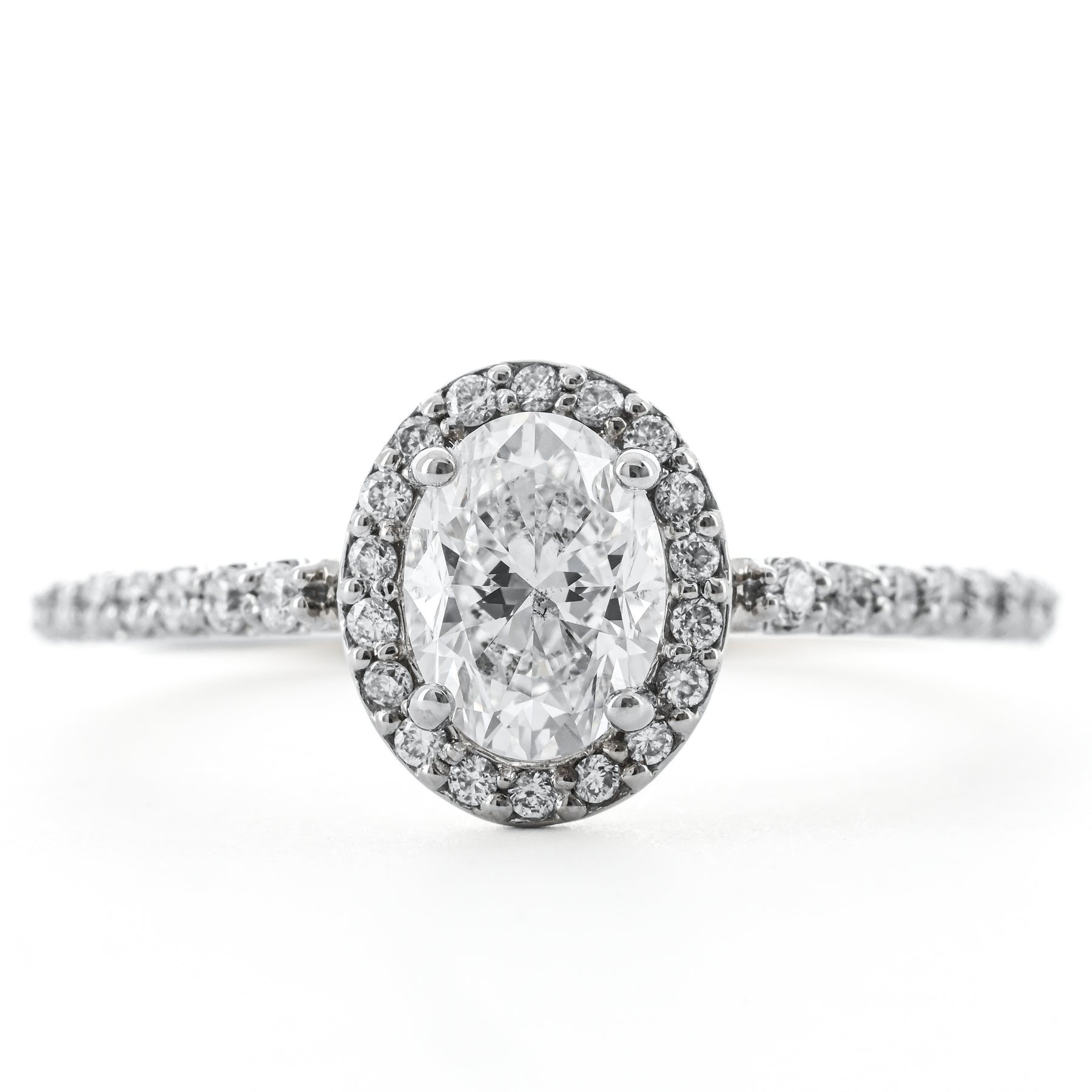 1.03CTW Oval Diamond Engagement Ring  - Halo - 14K White Gold