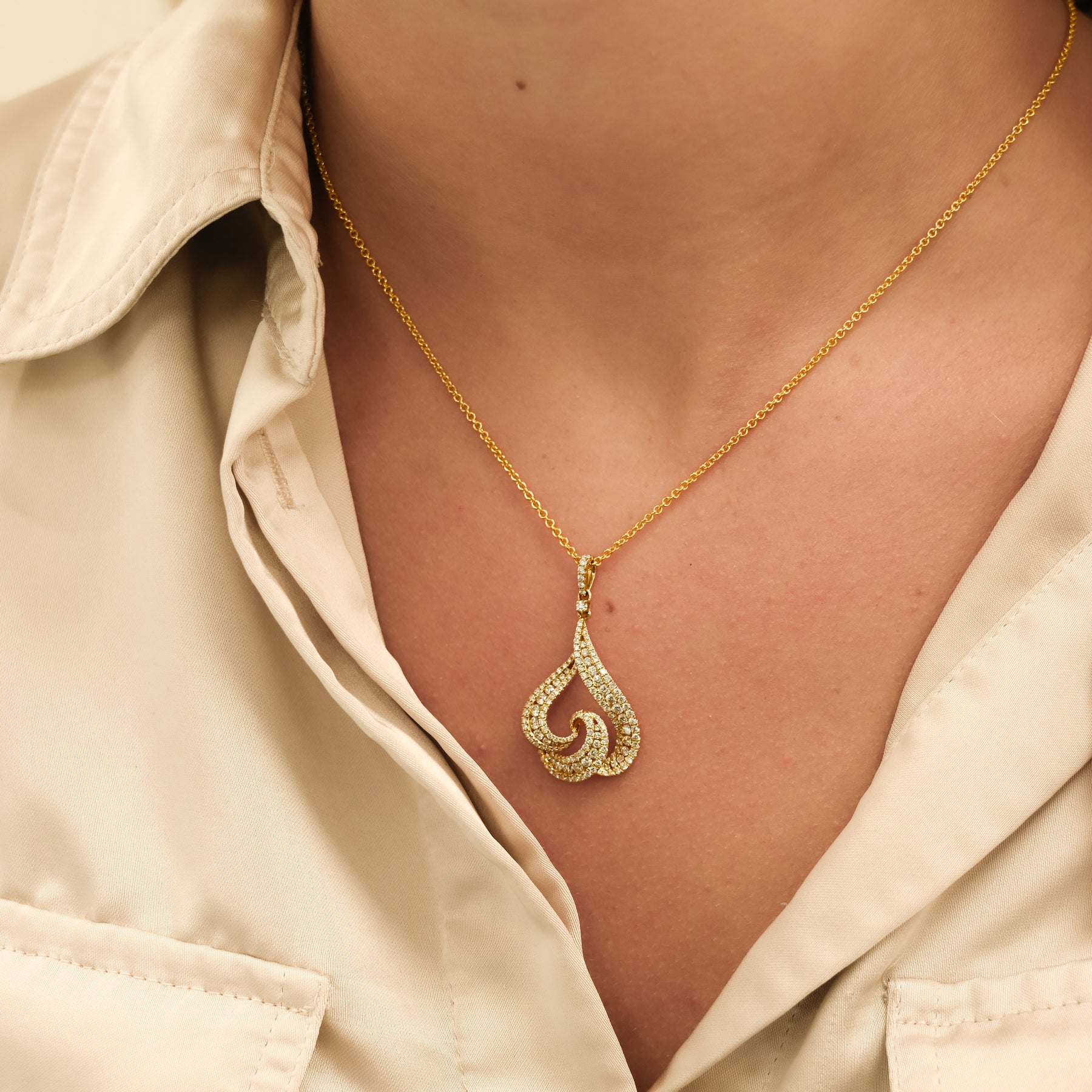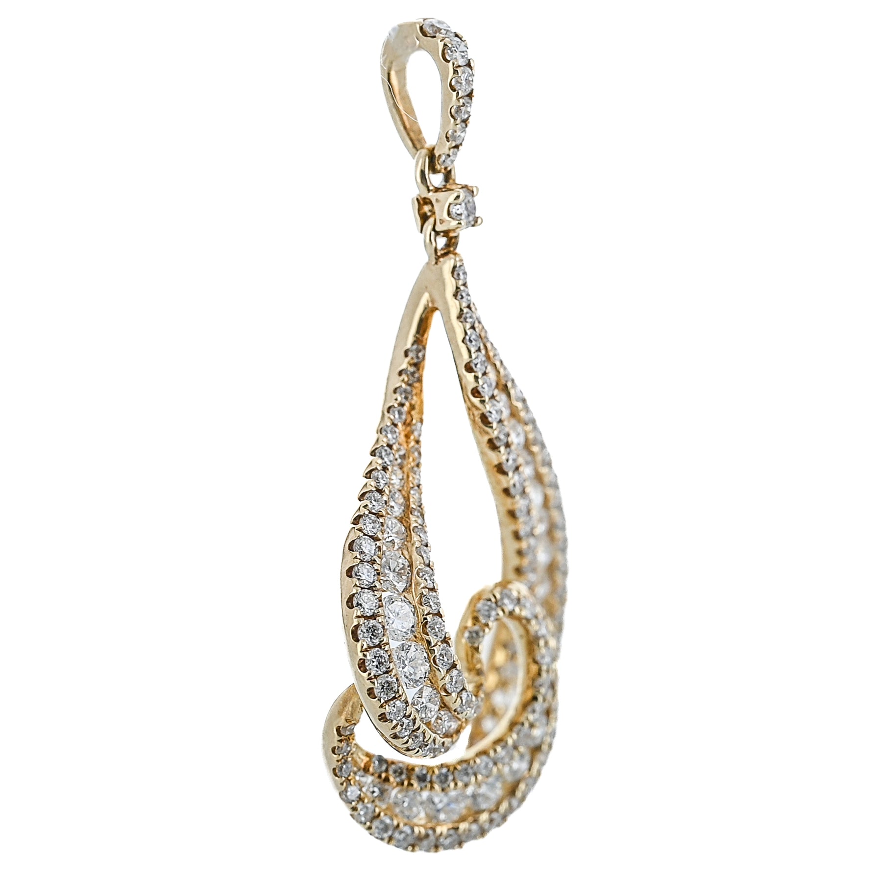 1.04CTW Round Diamond Swirl Pendant - 14K Yellow Gold