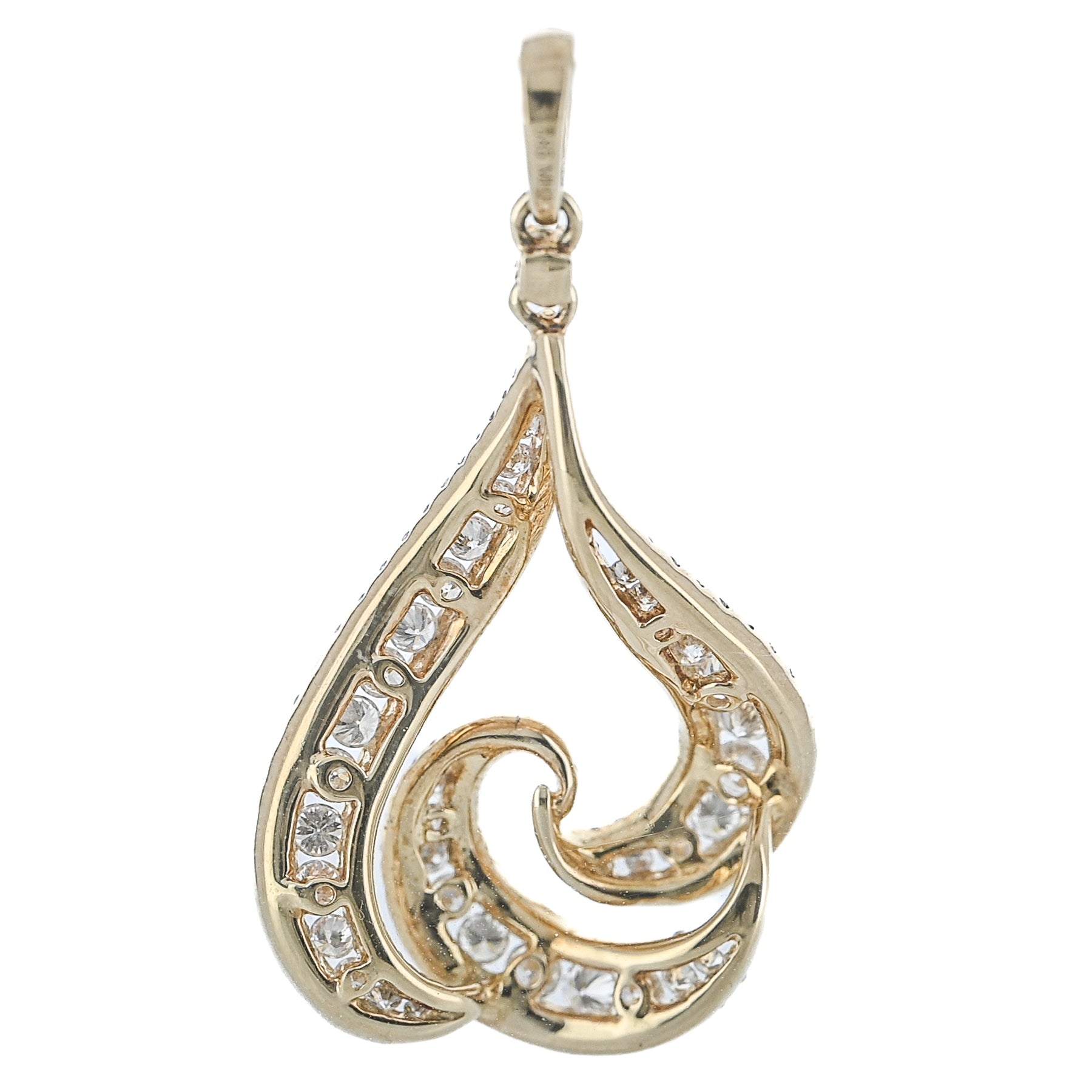 This 14K yellow gold pendant features a swirl design set with 1.04 carats of round brilliant diamonds. A diamond-accented bail completes the look. Chain not included.