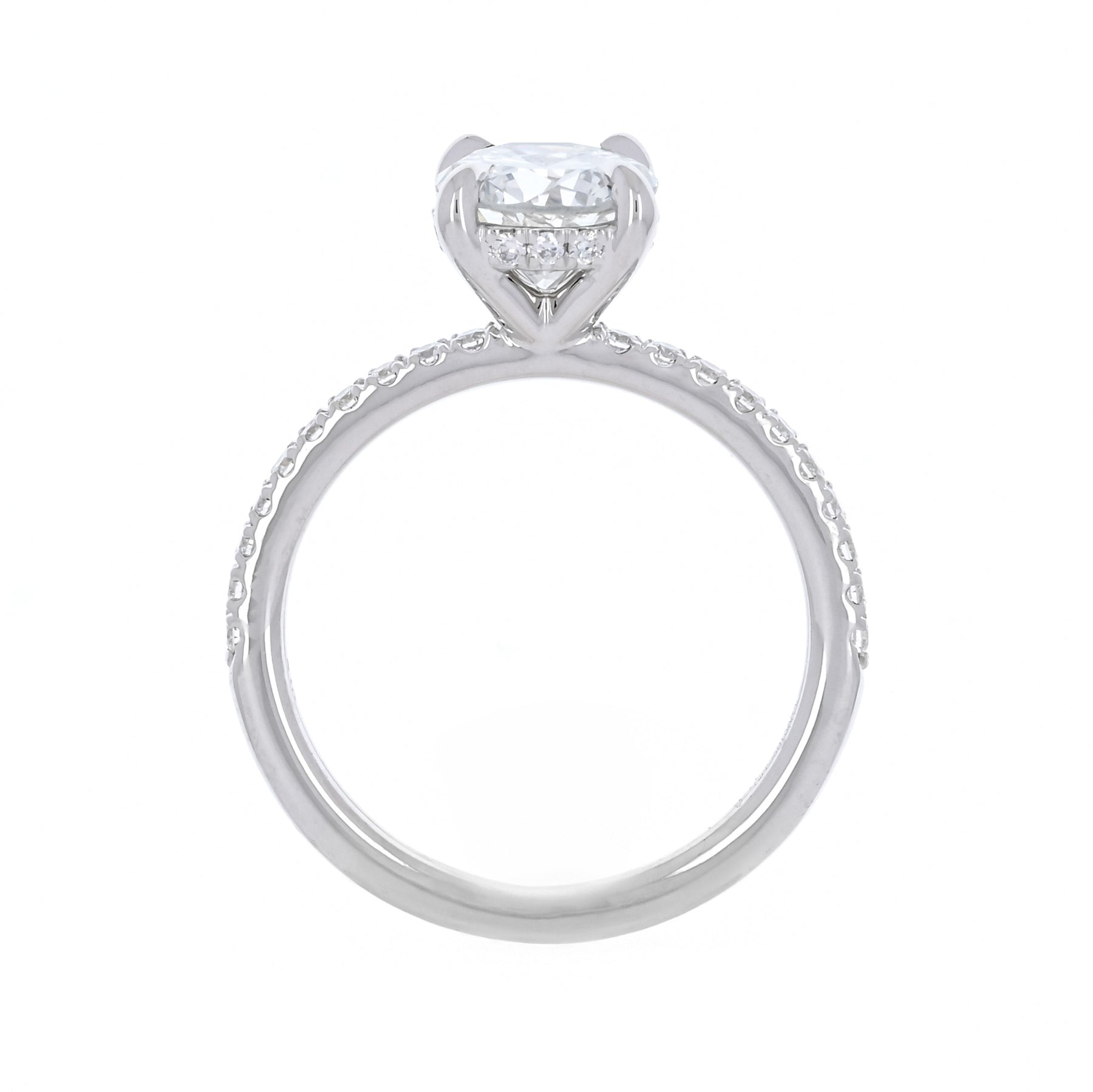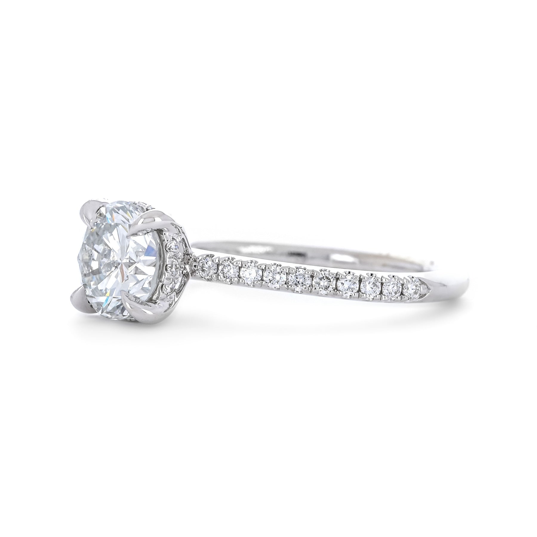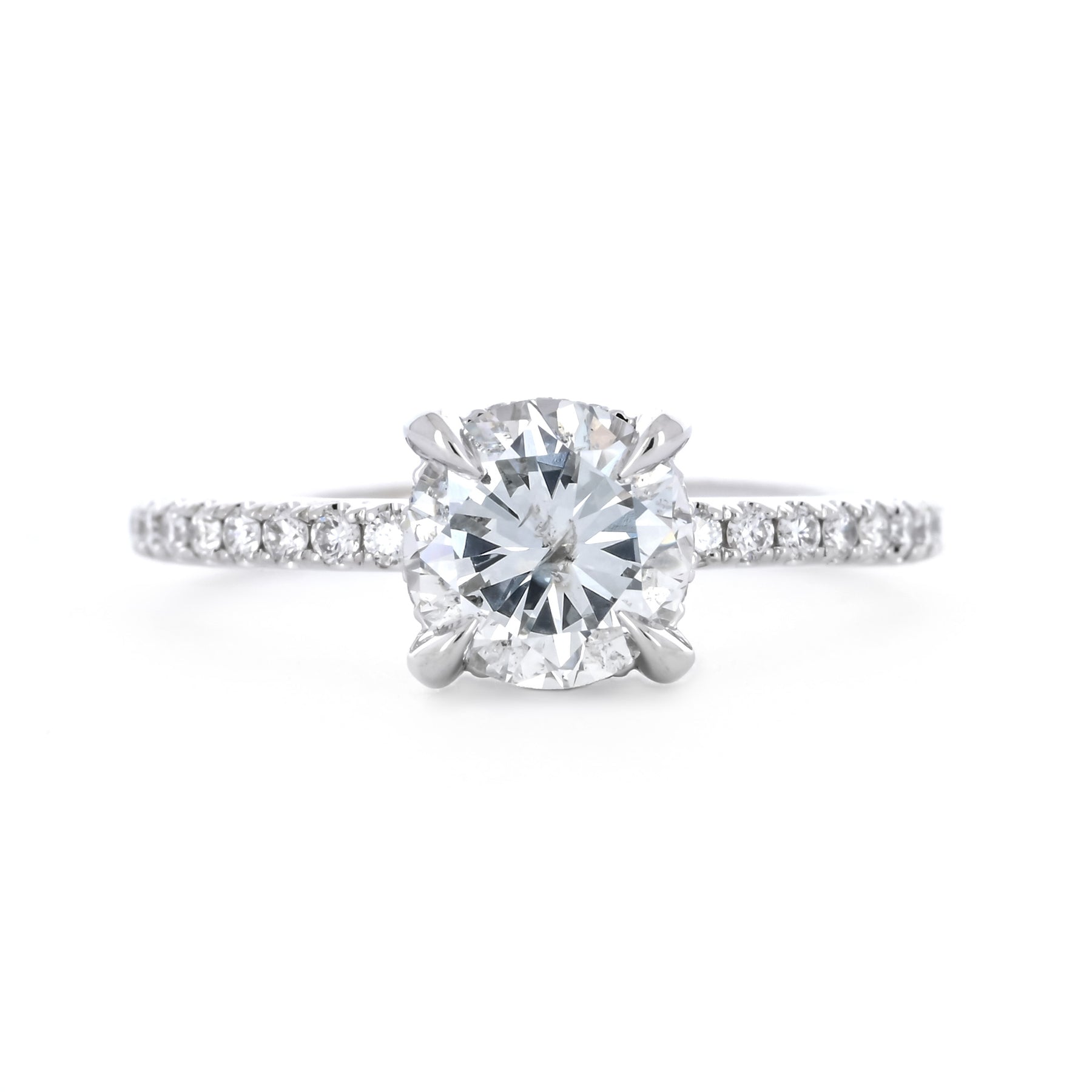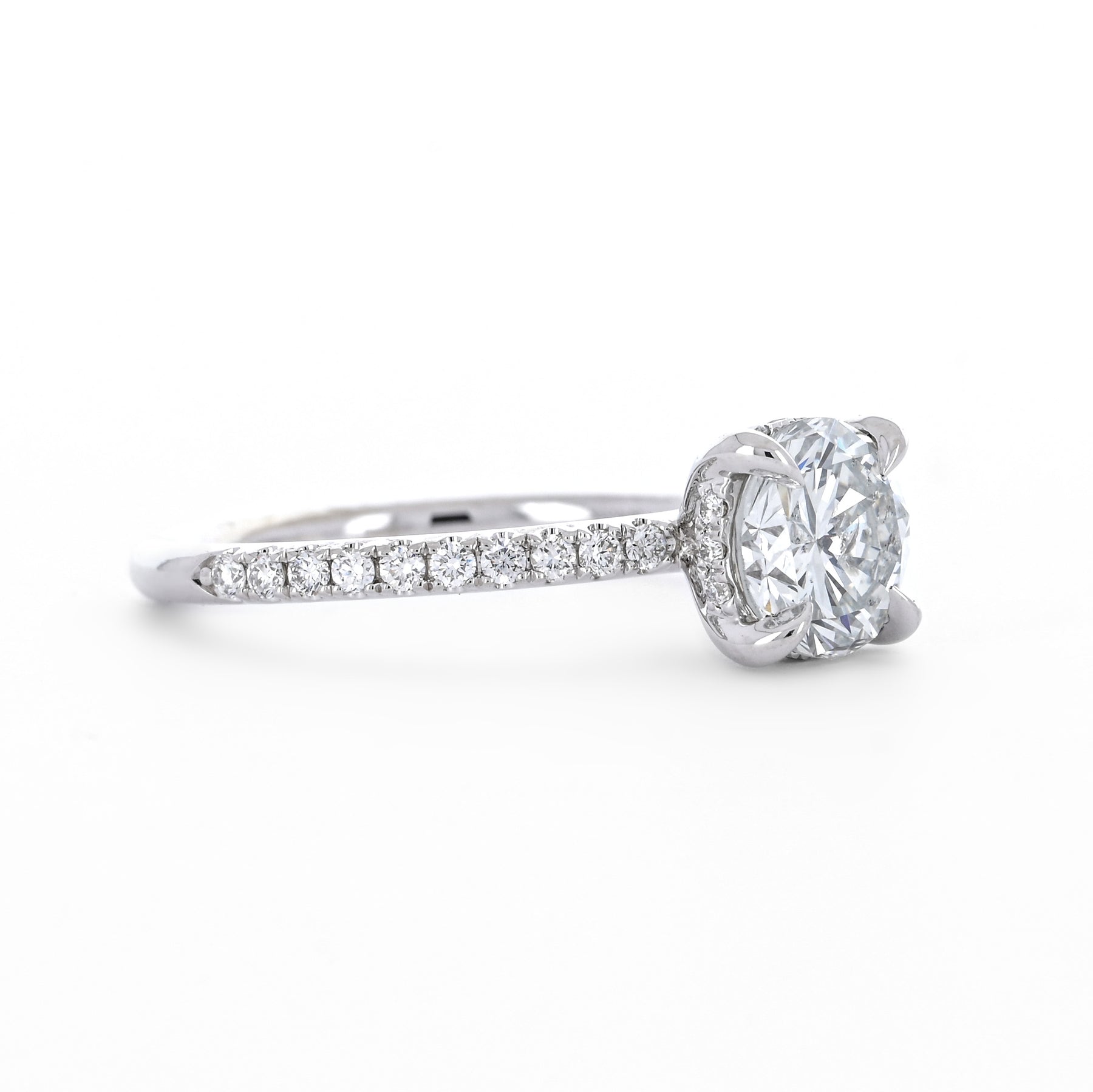 1.30ctw Round Diamond Engagement Ring, Hidden Halo, Pavê Band - 14K White Gold