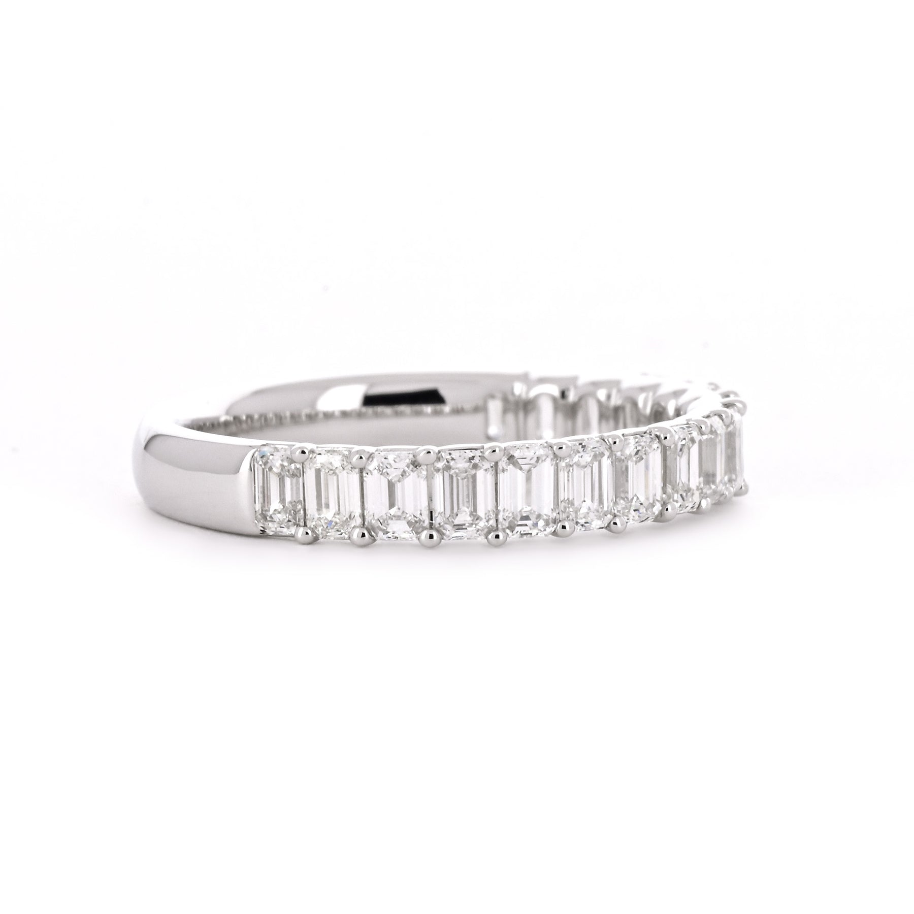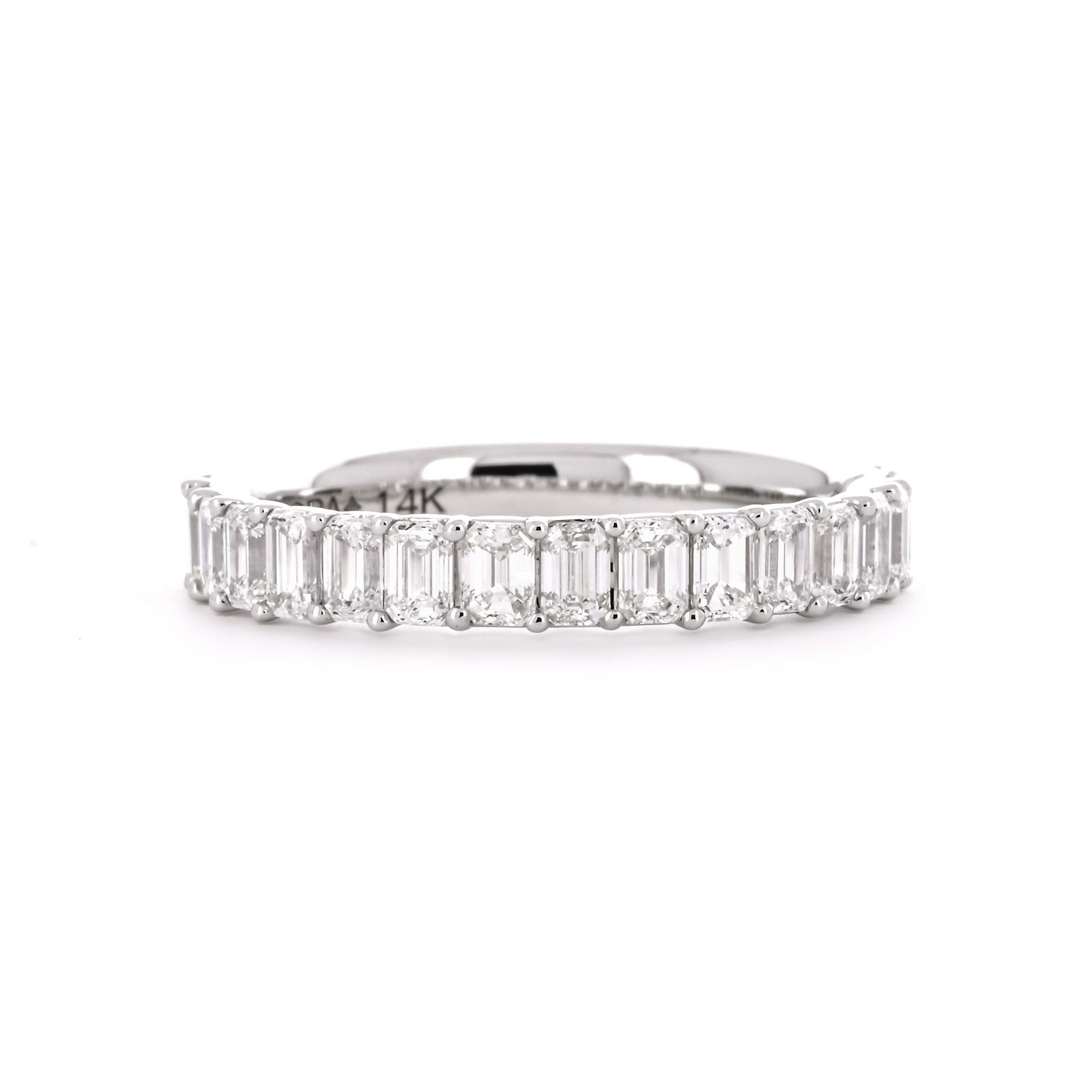 Introducing the 1.40ctw emerald diamond band, set in 14k white gold. This ring features 17 natural emerald diamonds.