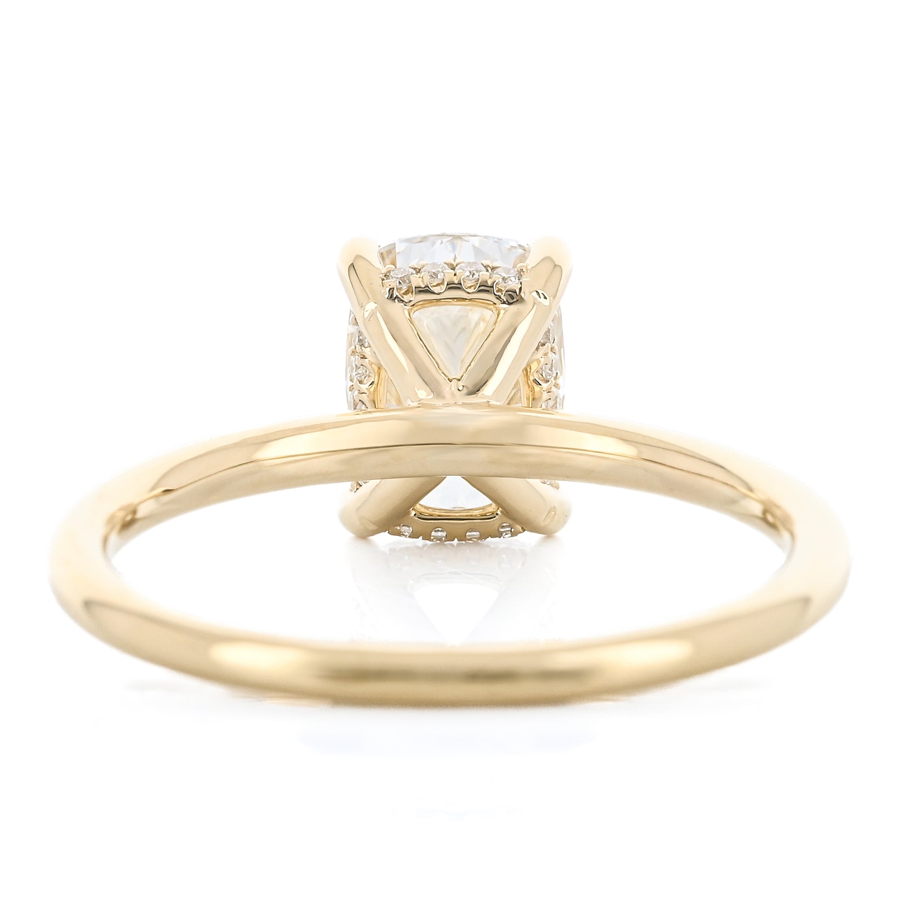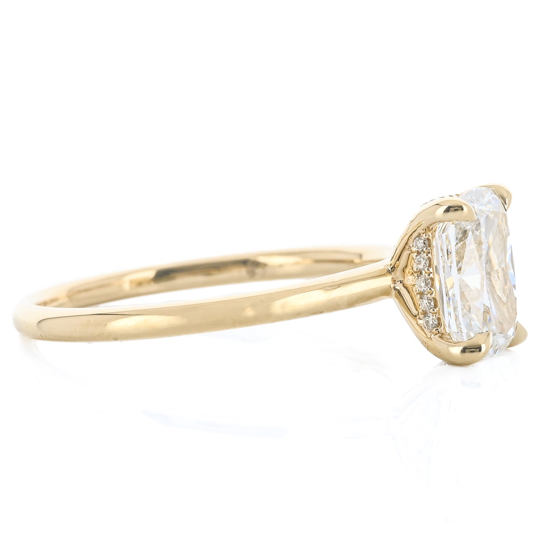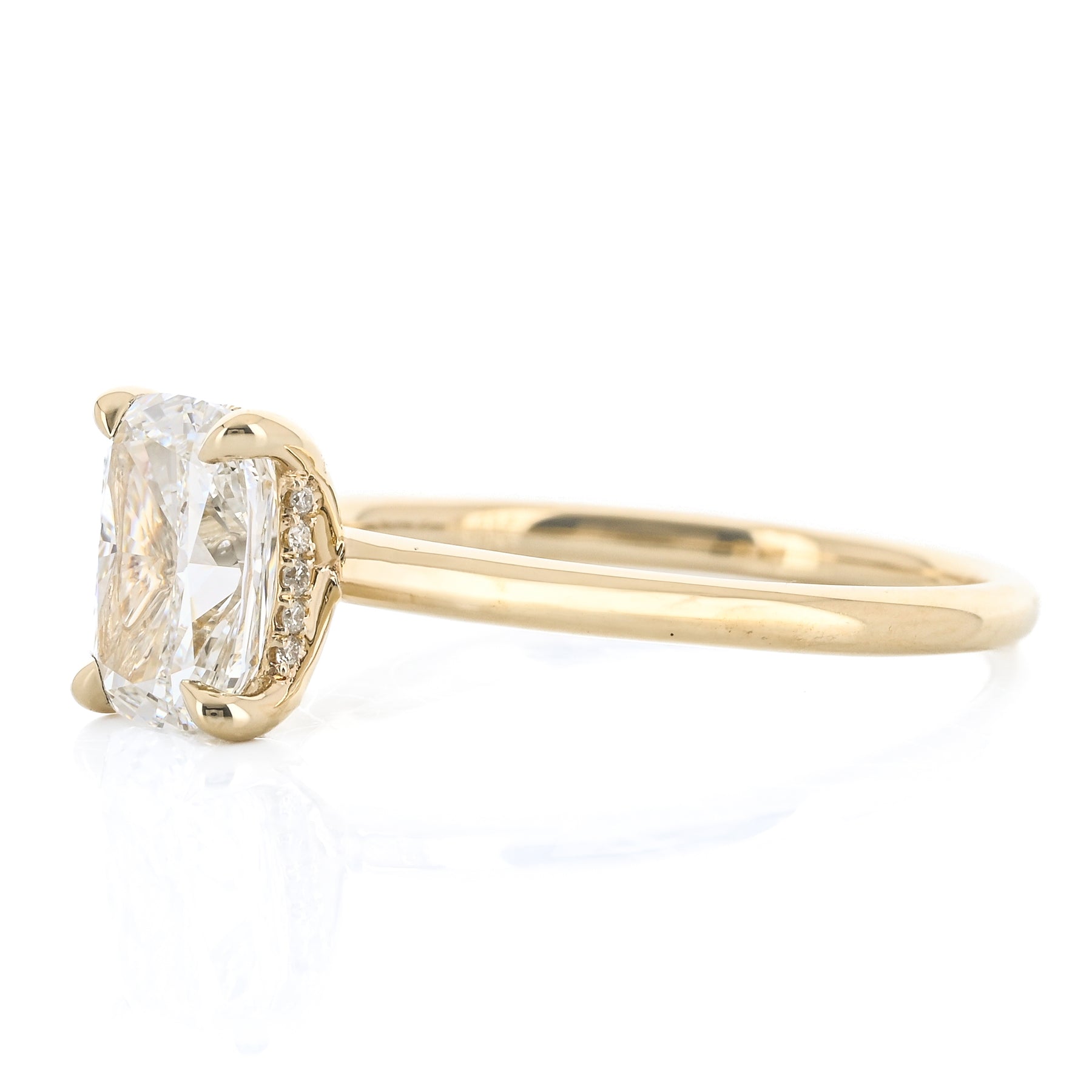 1.58CTW Cushion Lab Grown Diamond Engagement Ring - Hidden Halo + Solitaire - 14K Yellow Gold