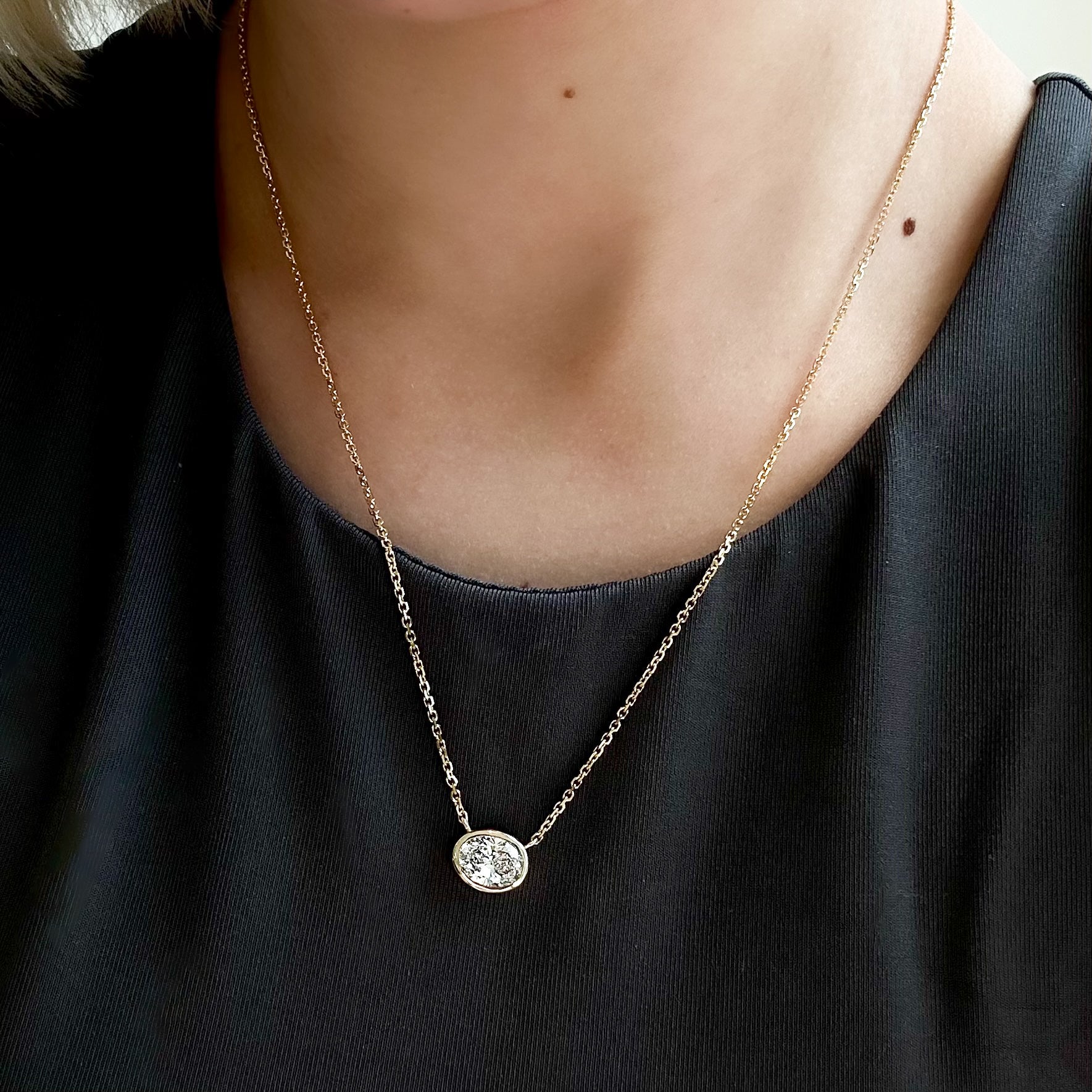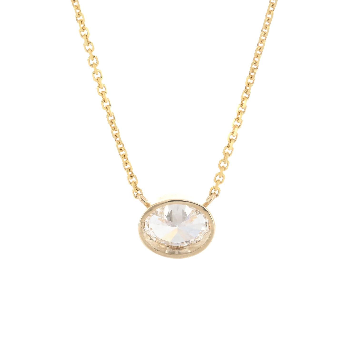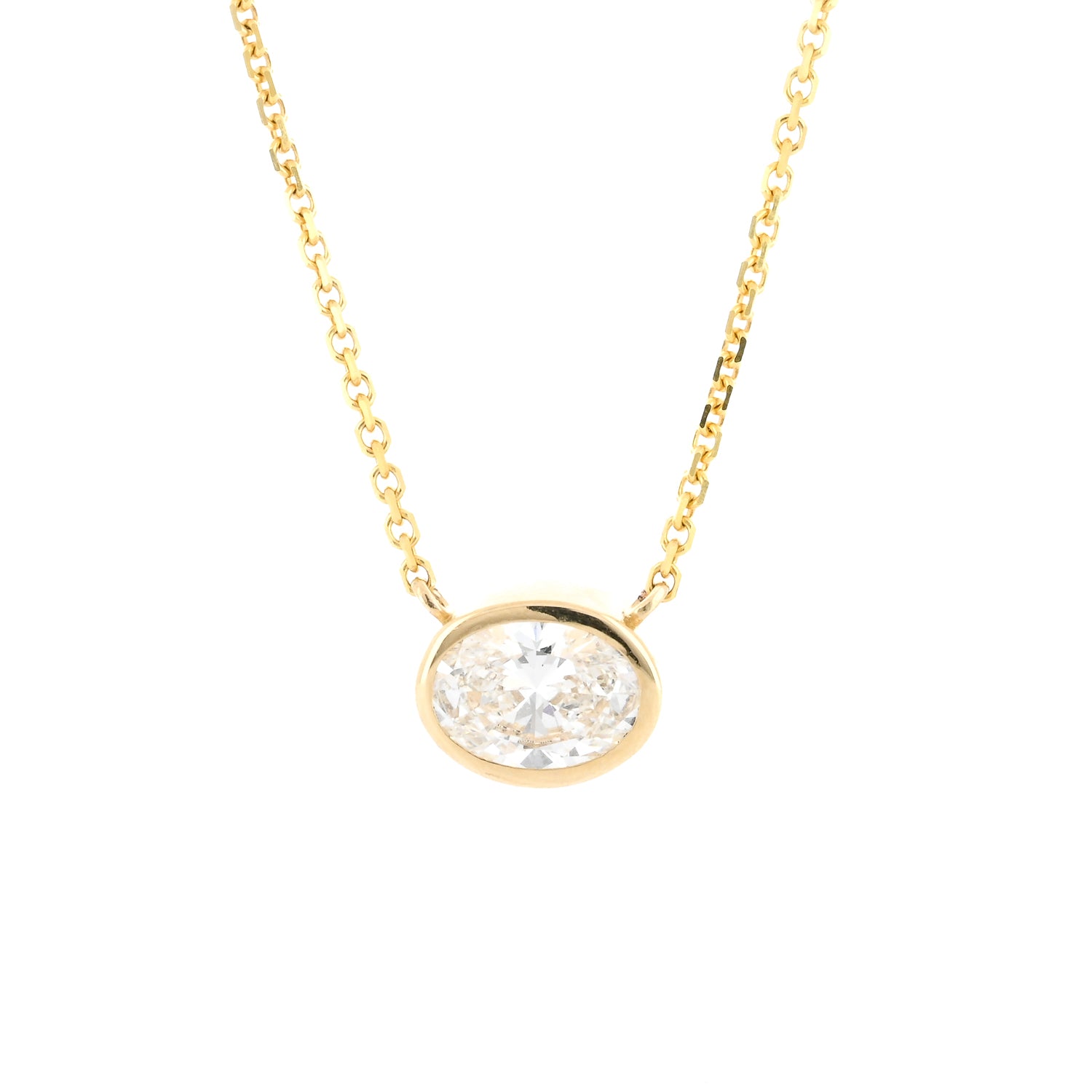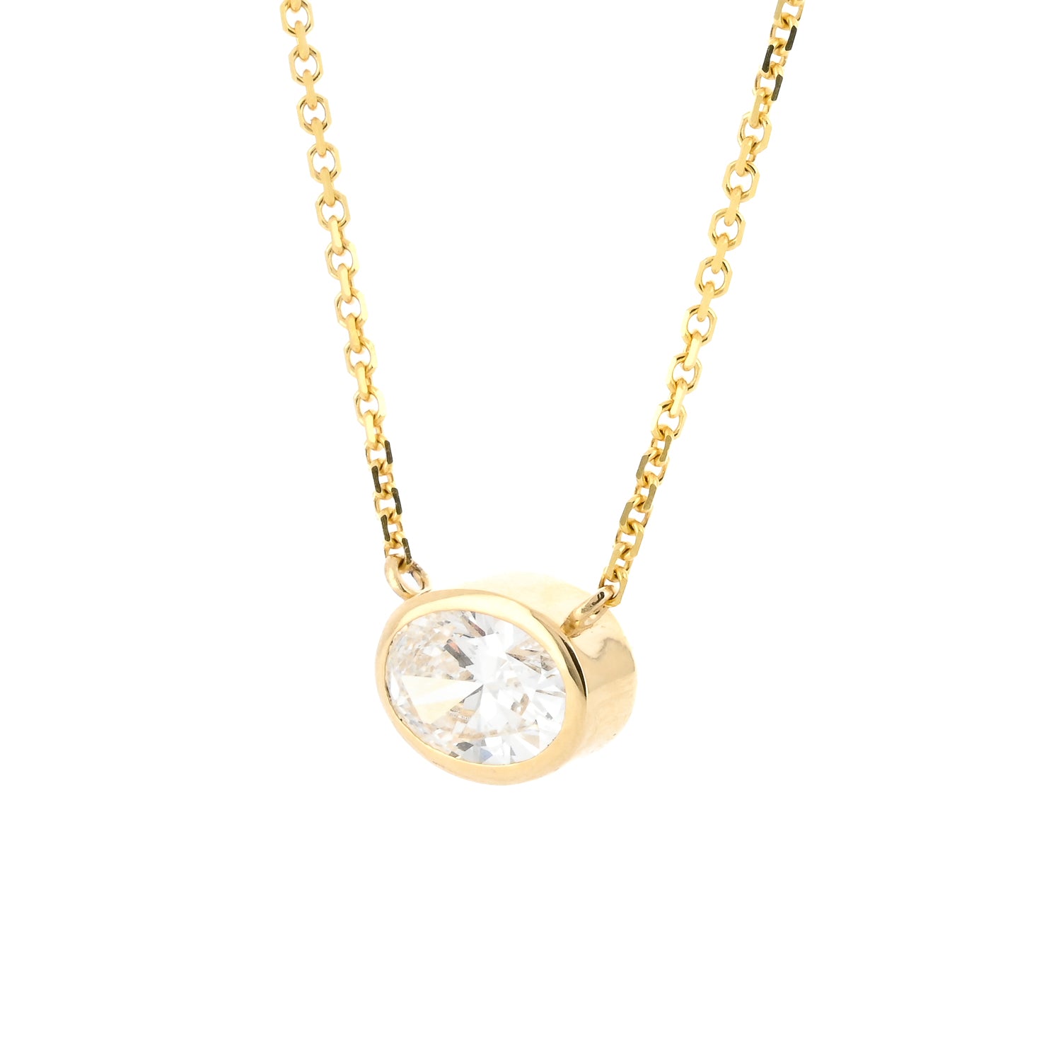 1.79ct Lab-Grown Oval Diamond Bezel Pendant, 18” – 14K Yellow Gold