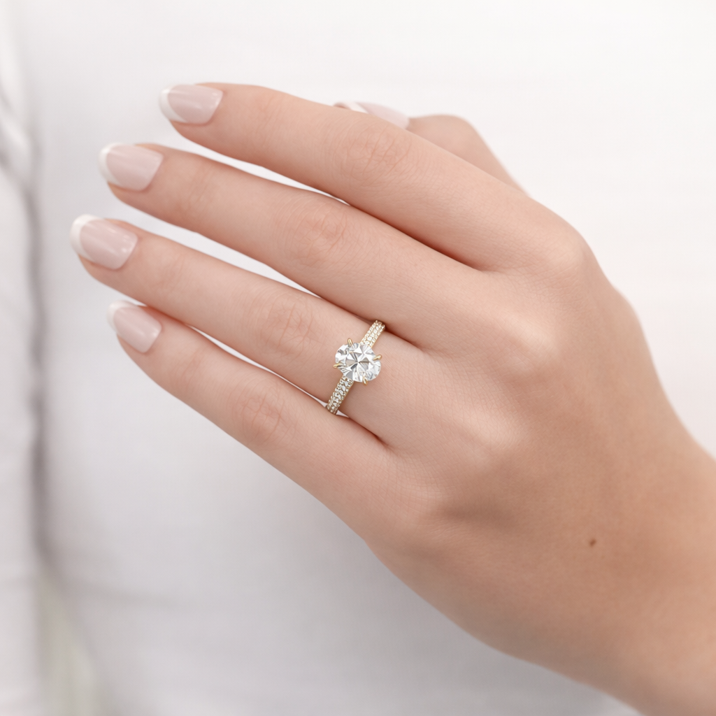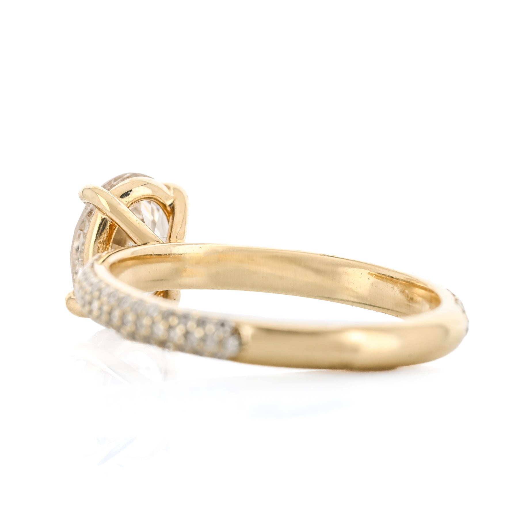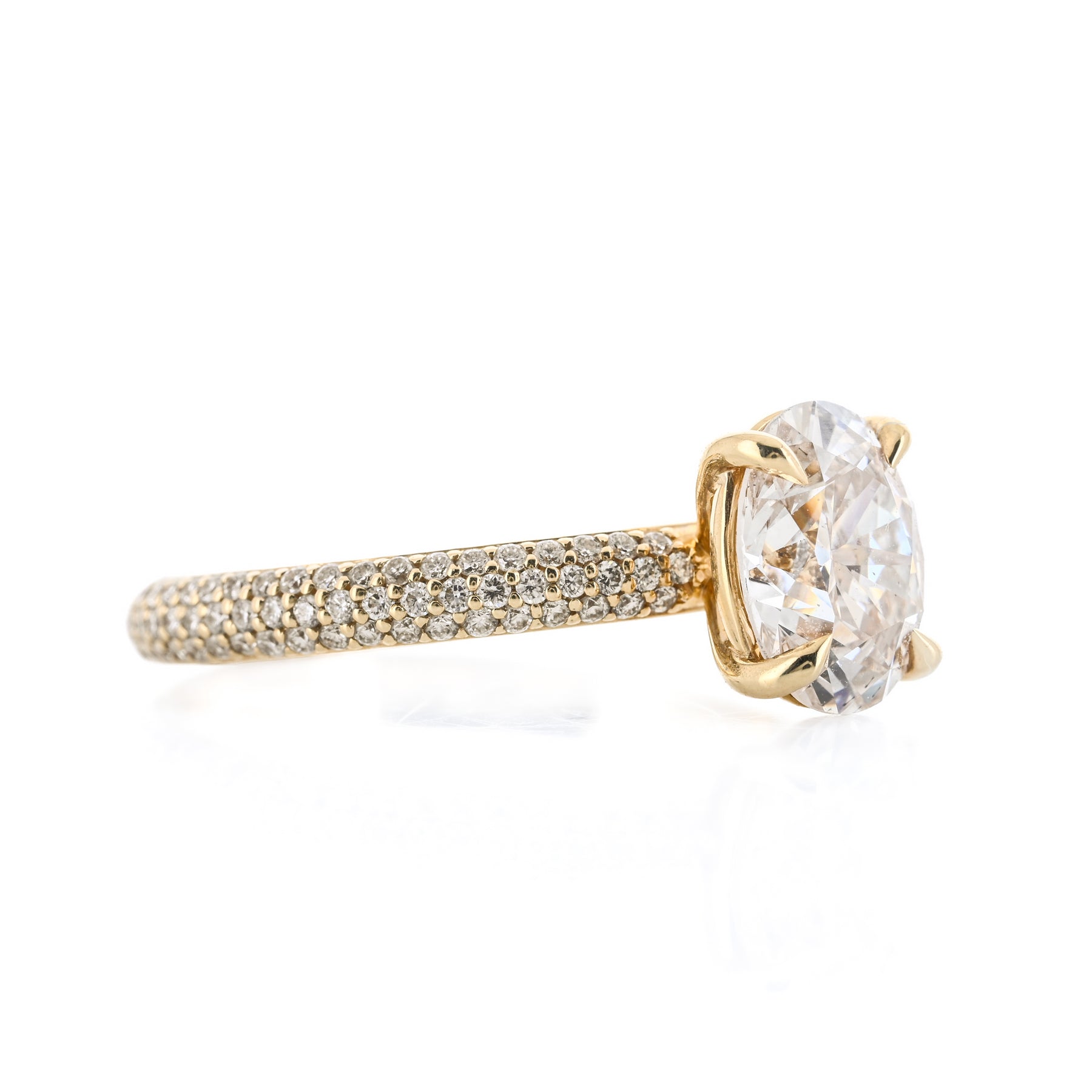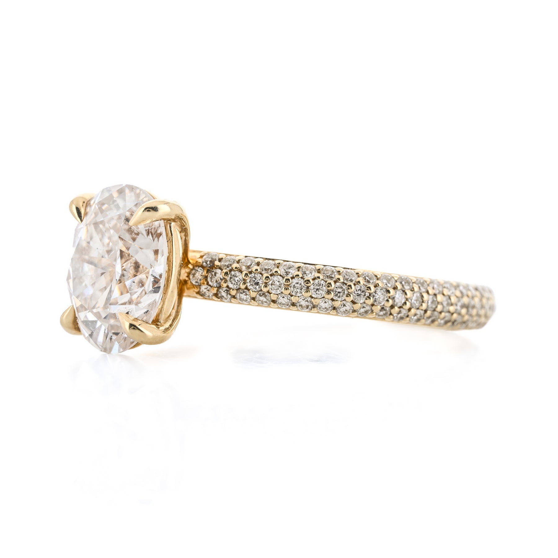 1.98CTW Oval Diamond Engagement Ring - Pavé Band - 14K Yellow Gold