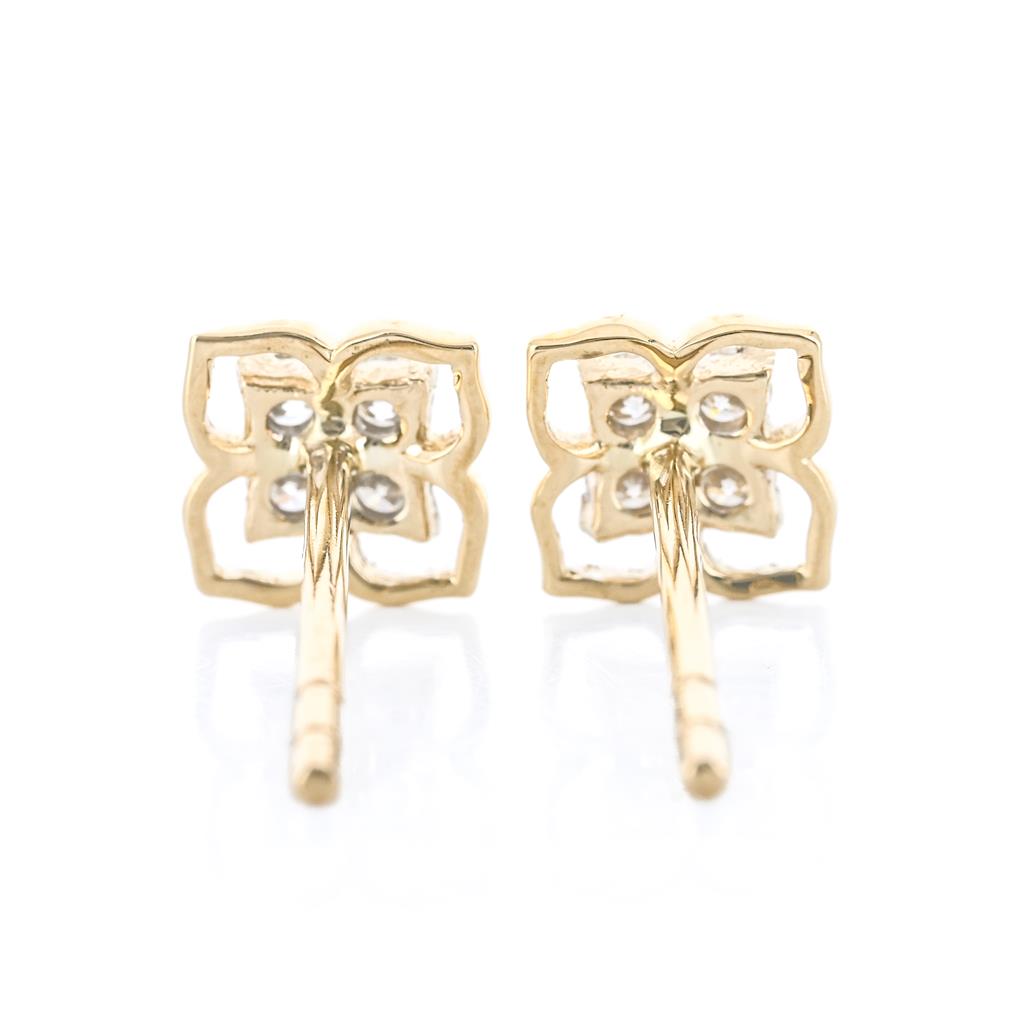 These 14K yellow gold floral stud earrings feature diamonds totaling 0.13 carats.