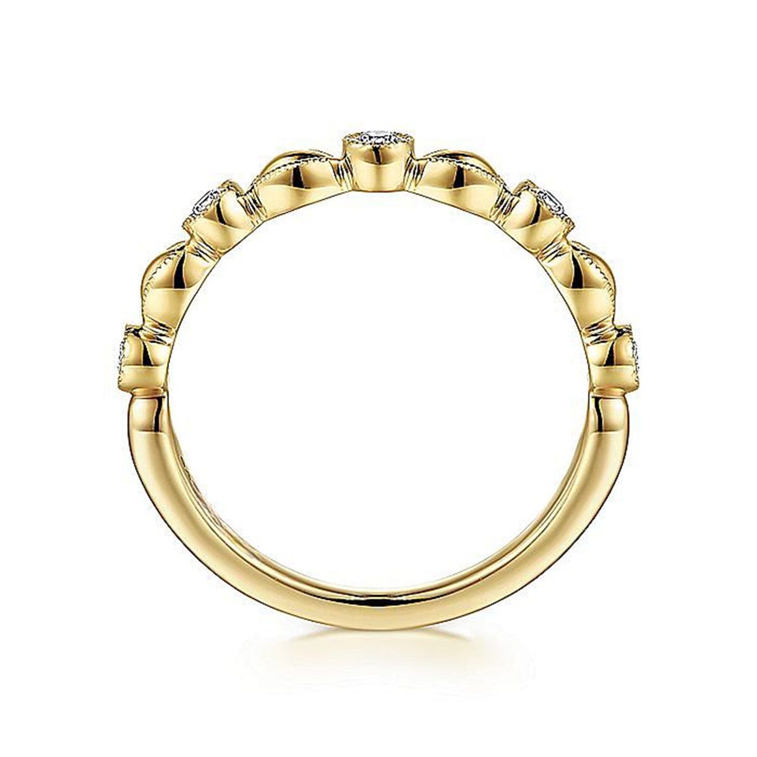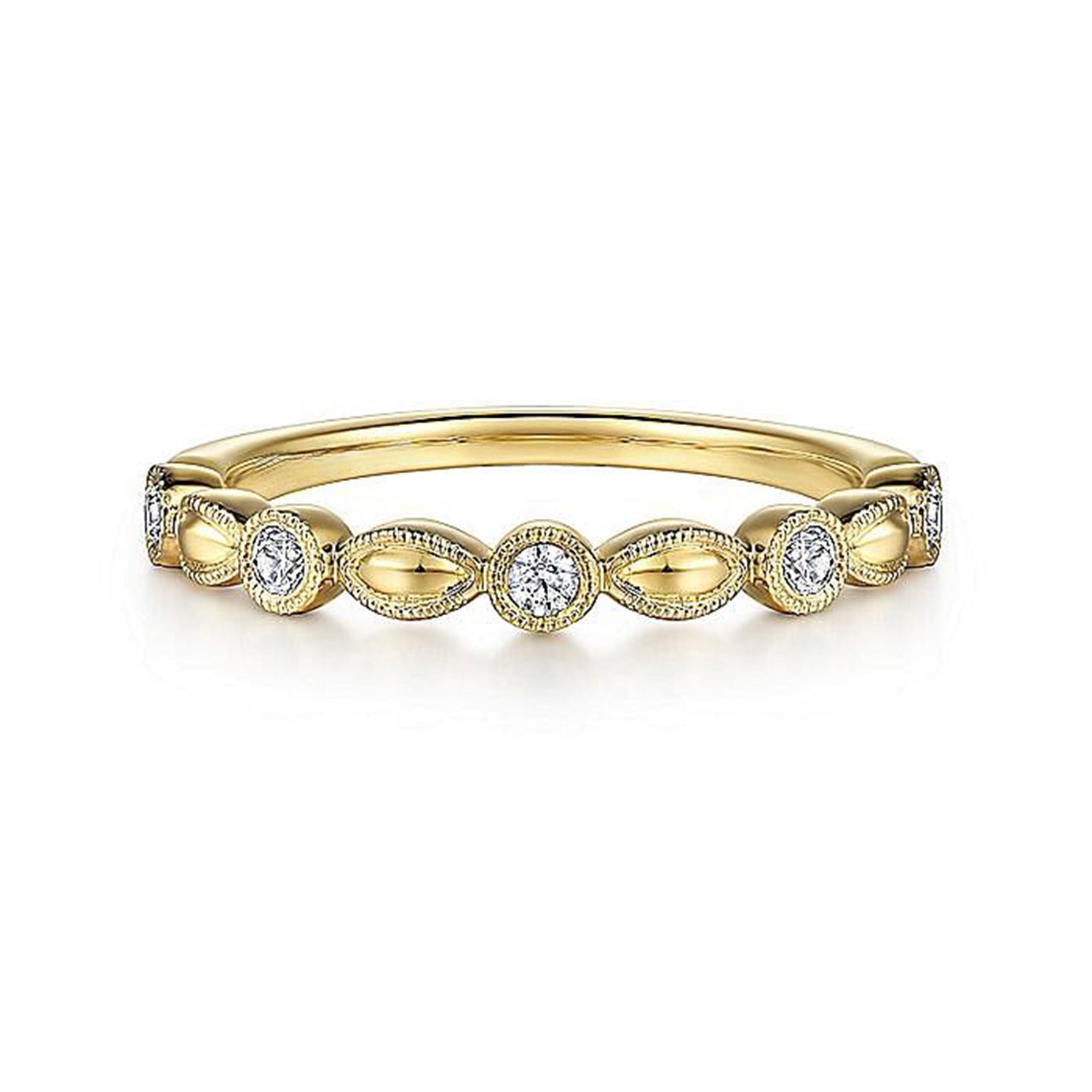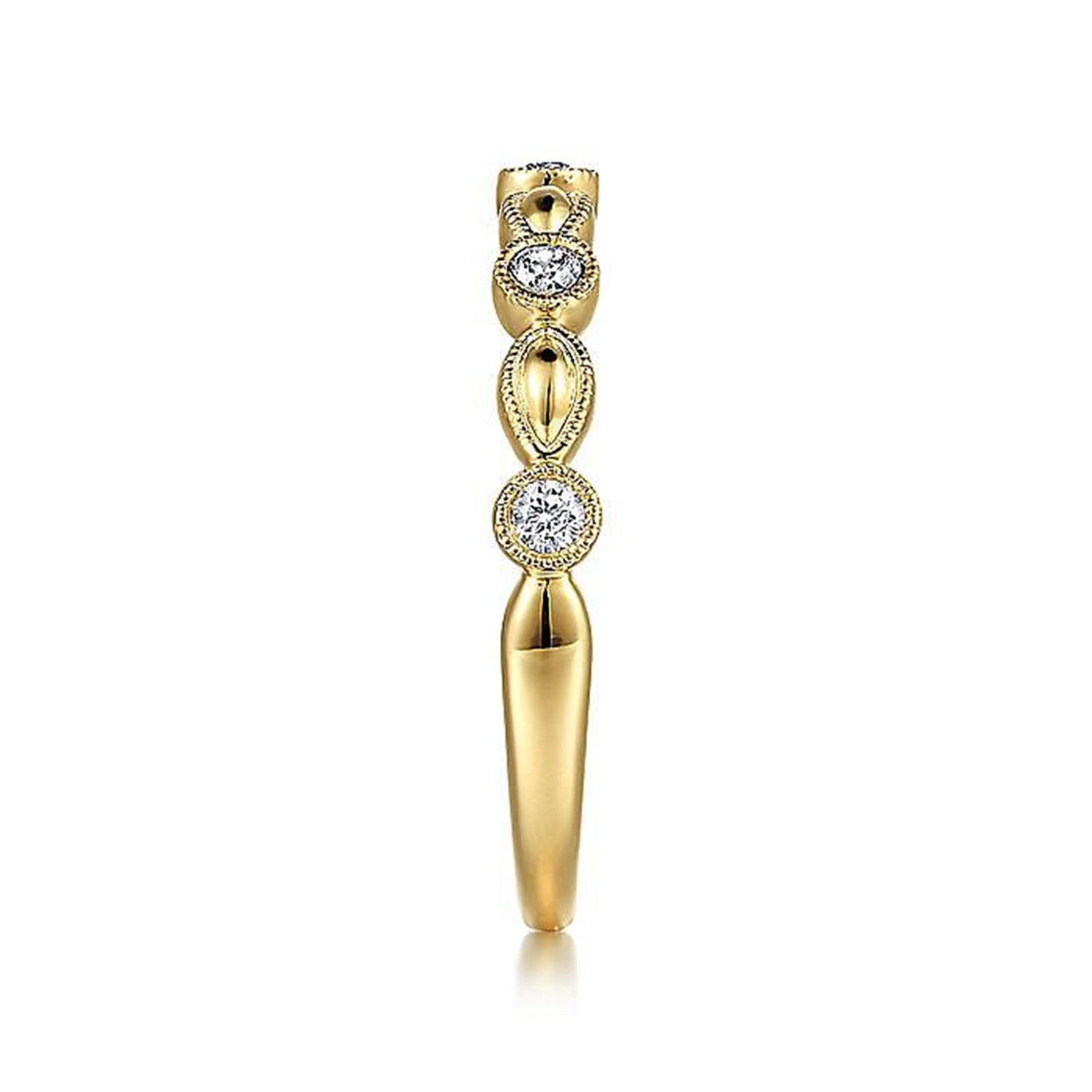 This 14K yellow gold marquise-shaped stackable ring features diamonds totaling 0.14 carats. Size 6.5.