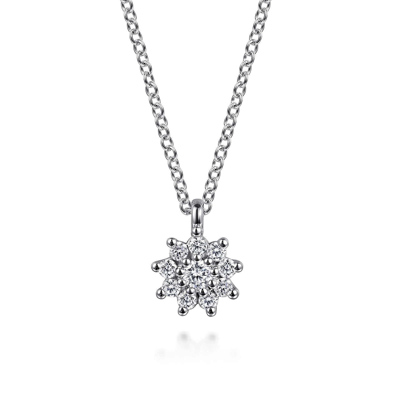 .19CTW White Sapphire Cluster Pendant, 17.5" - 14K White Gold