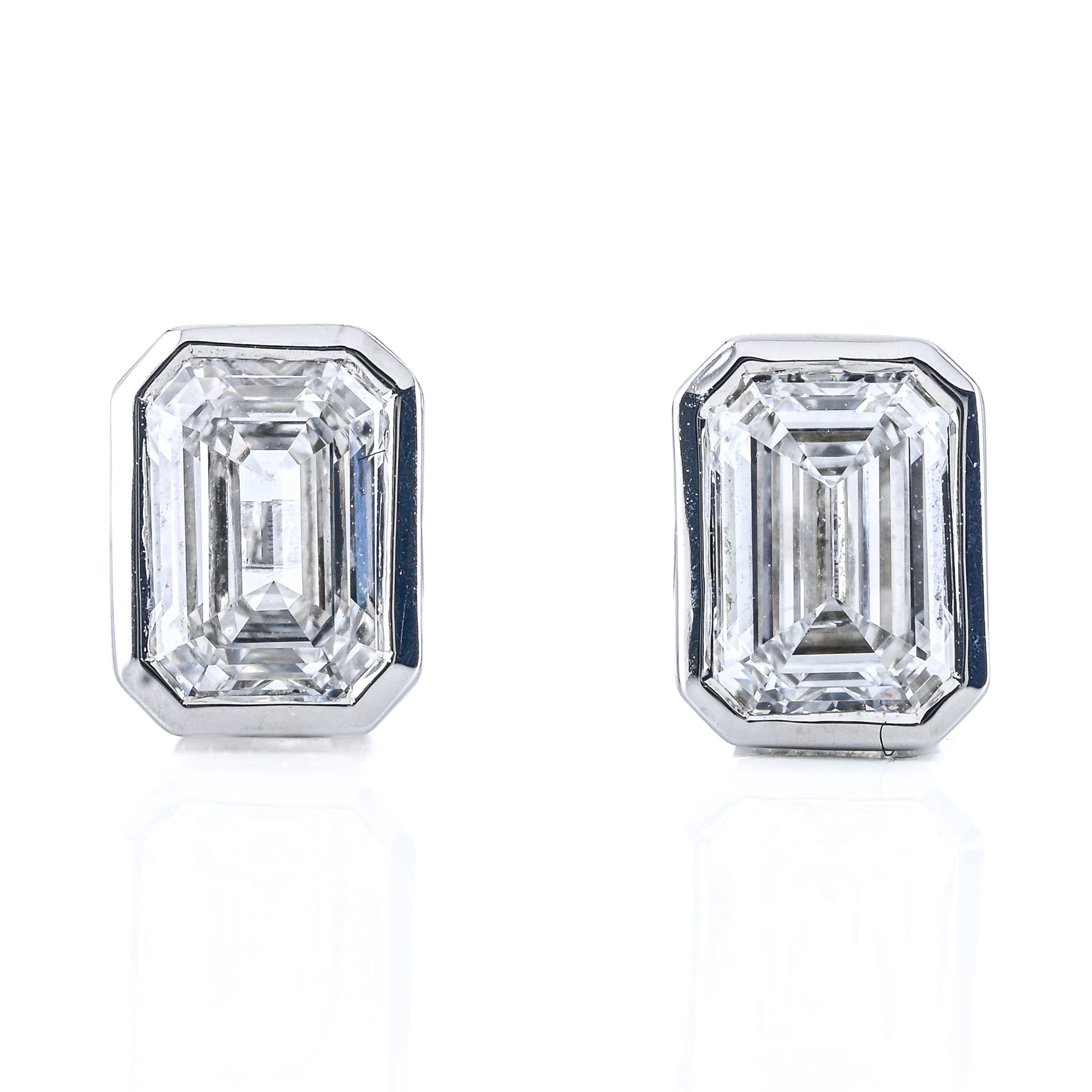 1CTW Emerald Lab Grown Diamond Stud Earrings - Bezel Set - 14K White Gold