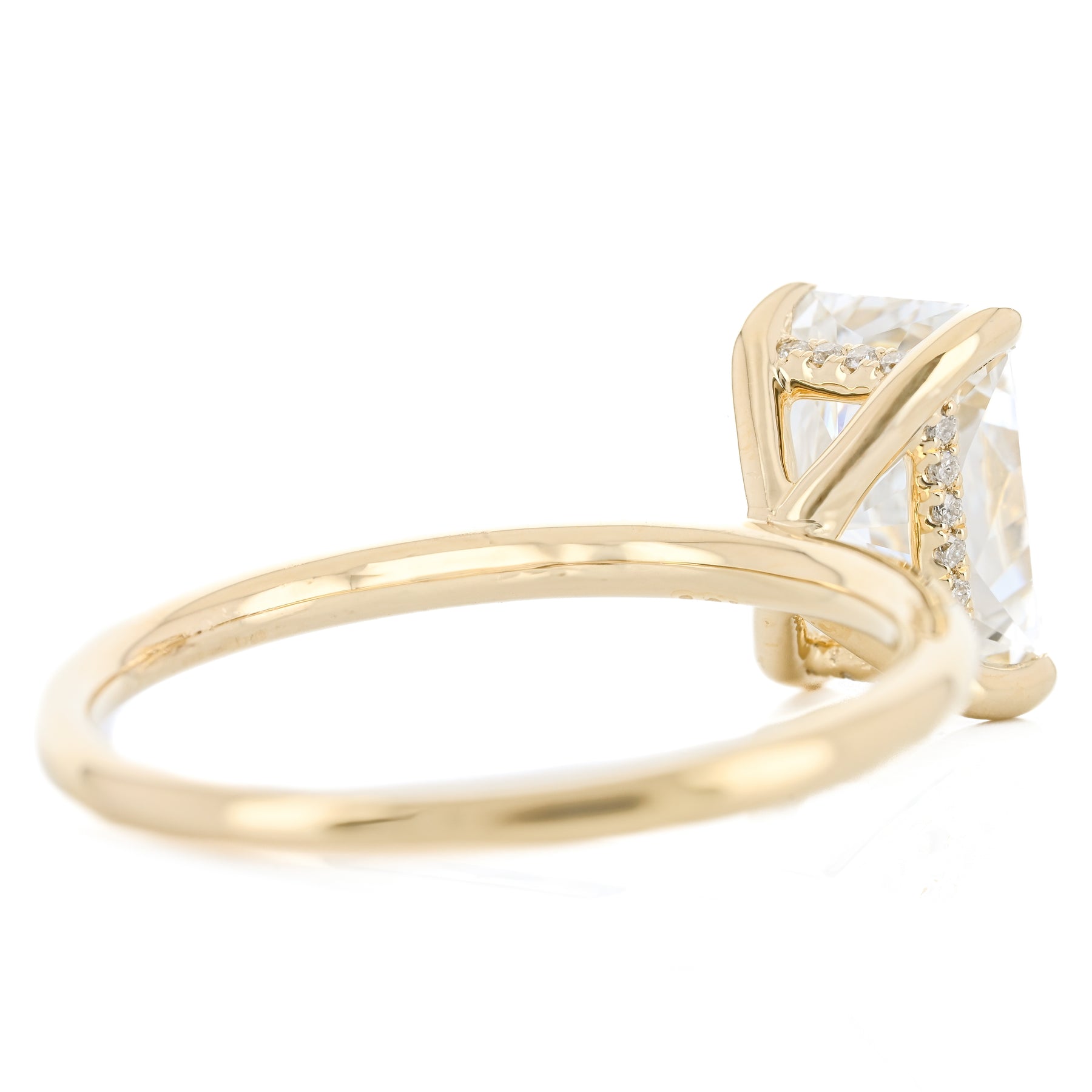 2.07CTW Radiant Lab Grown Diamond Engagment Ring - Solitaire + Hidden Halo - 14K Yellow Gold