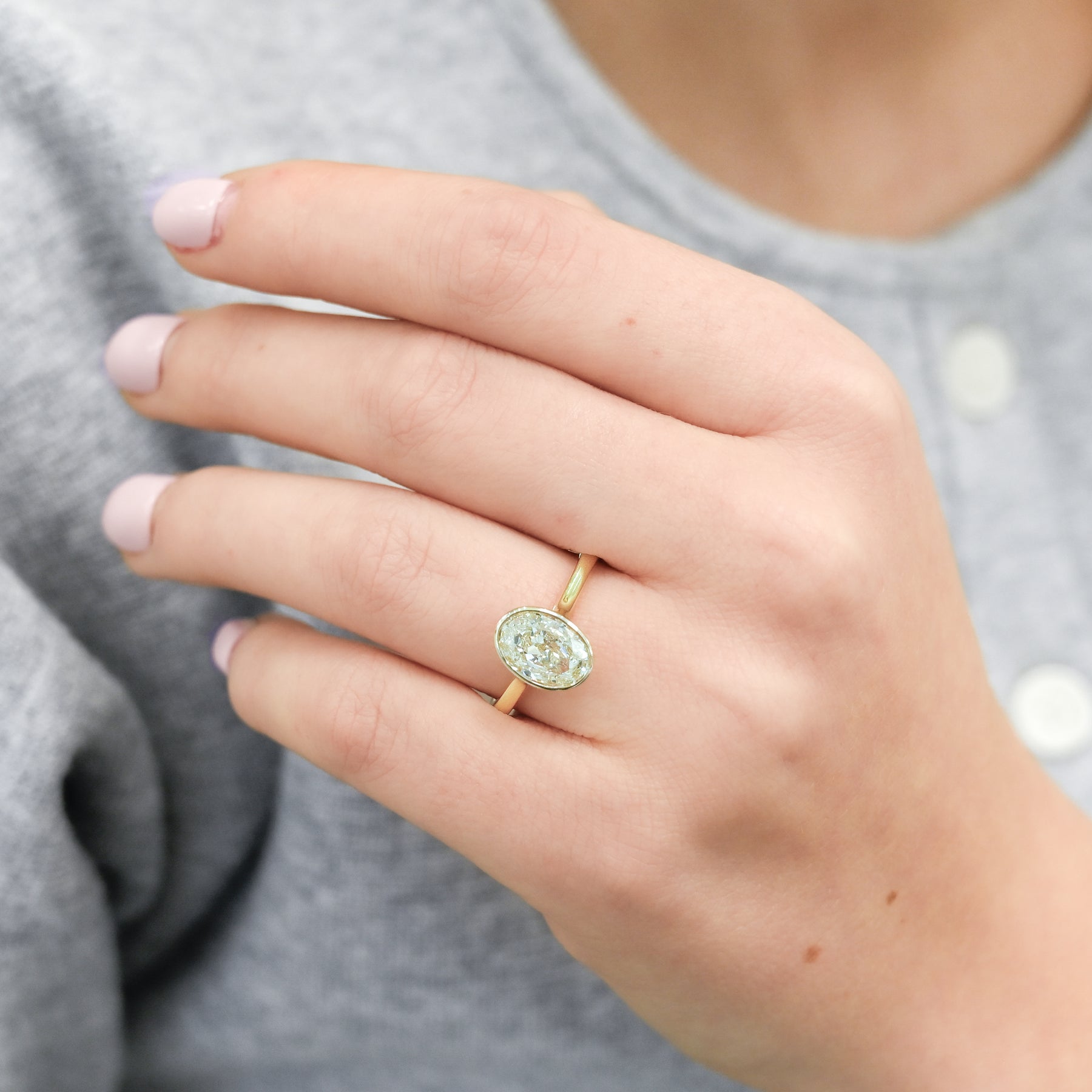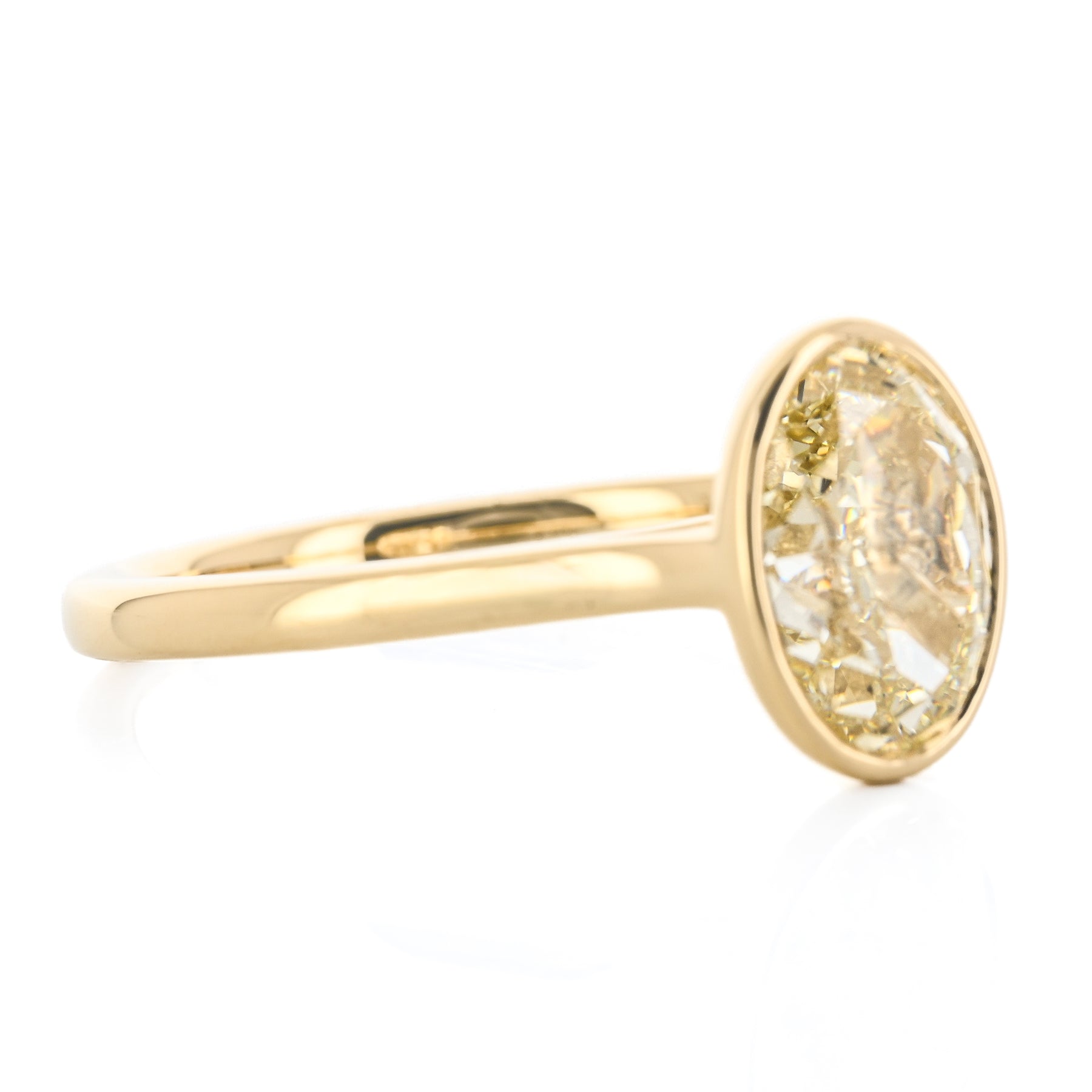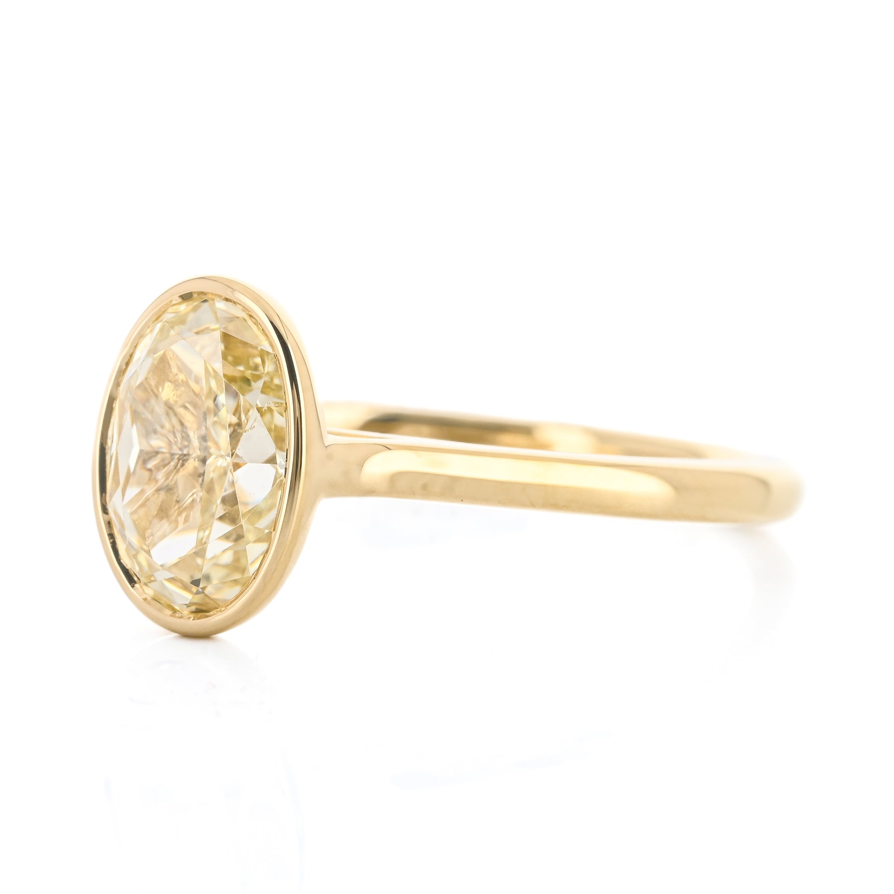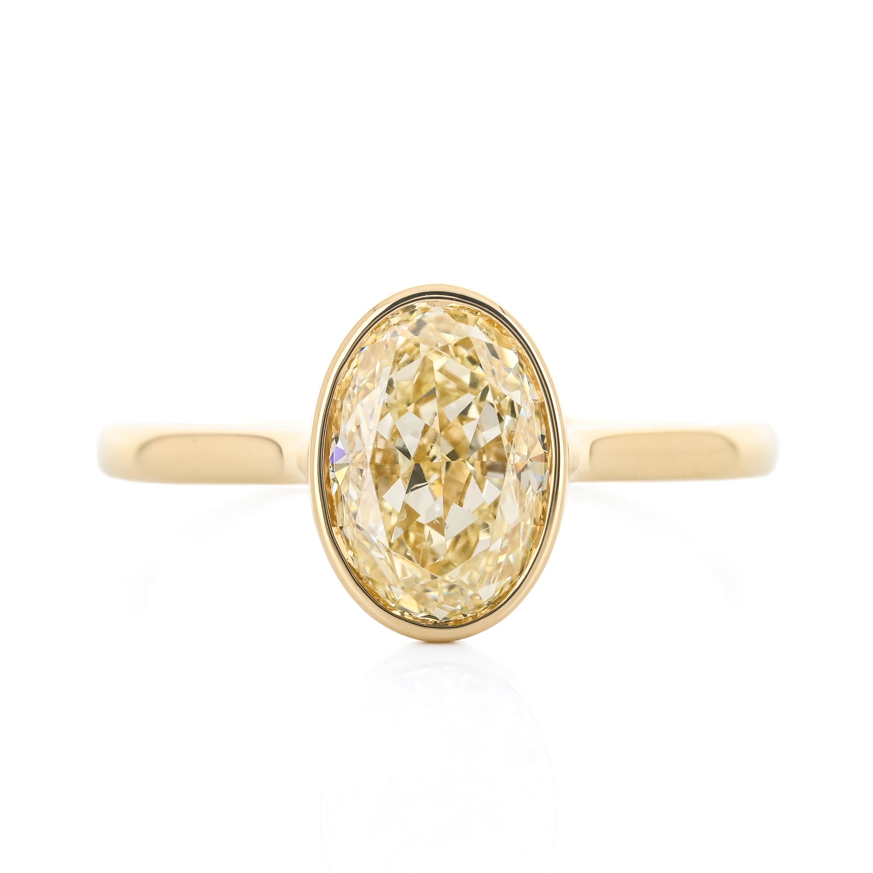 2.11CT Oval Diamond Engagement Ring - Bezel Set - 18K Yellow Gold
