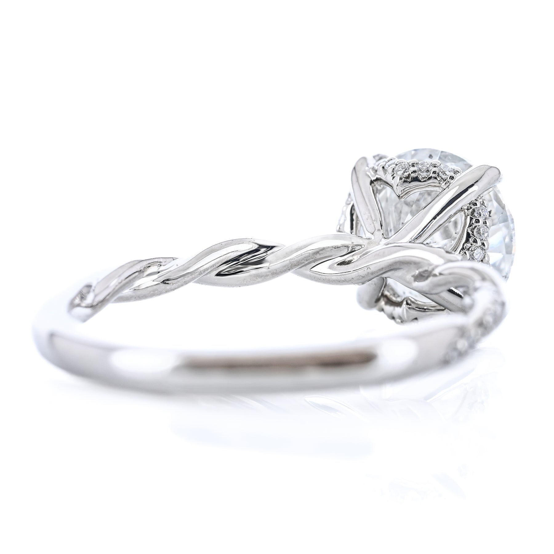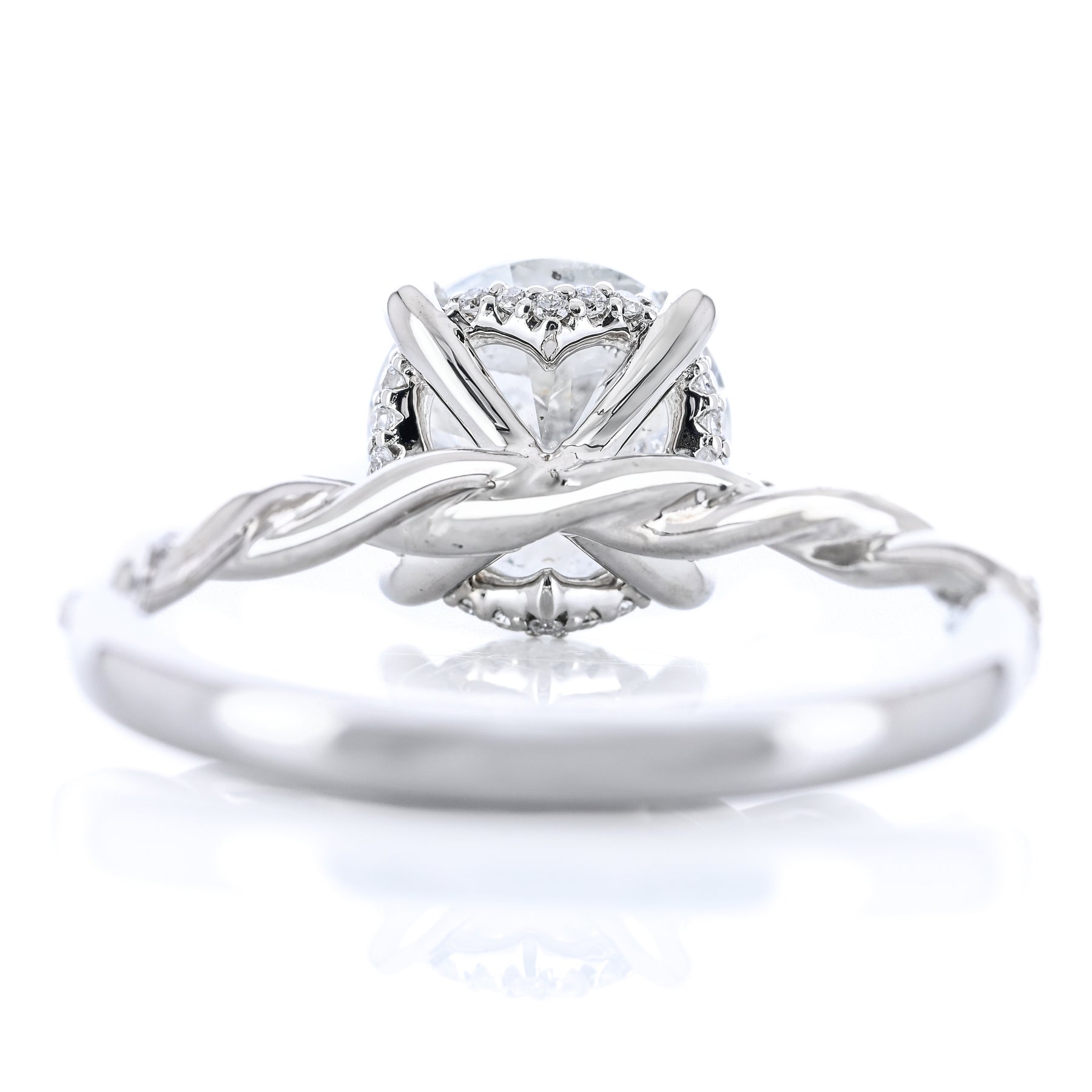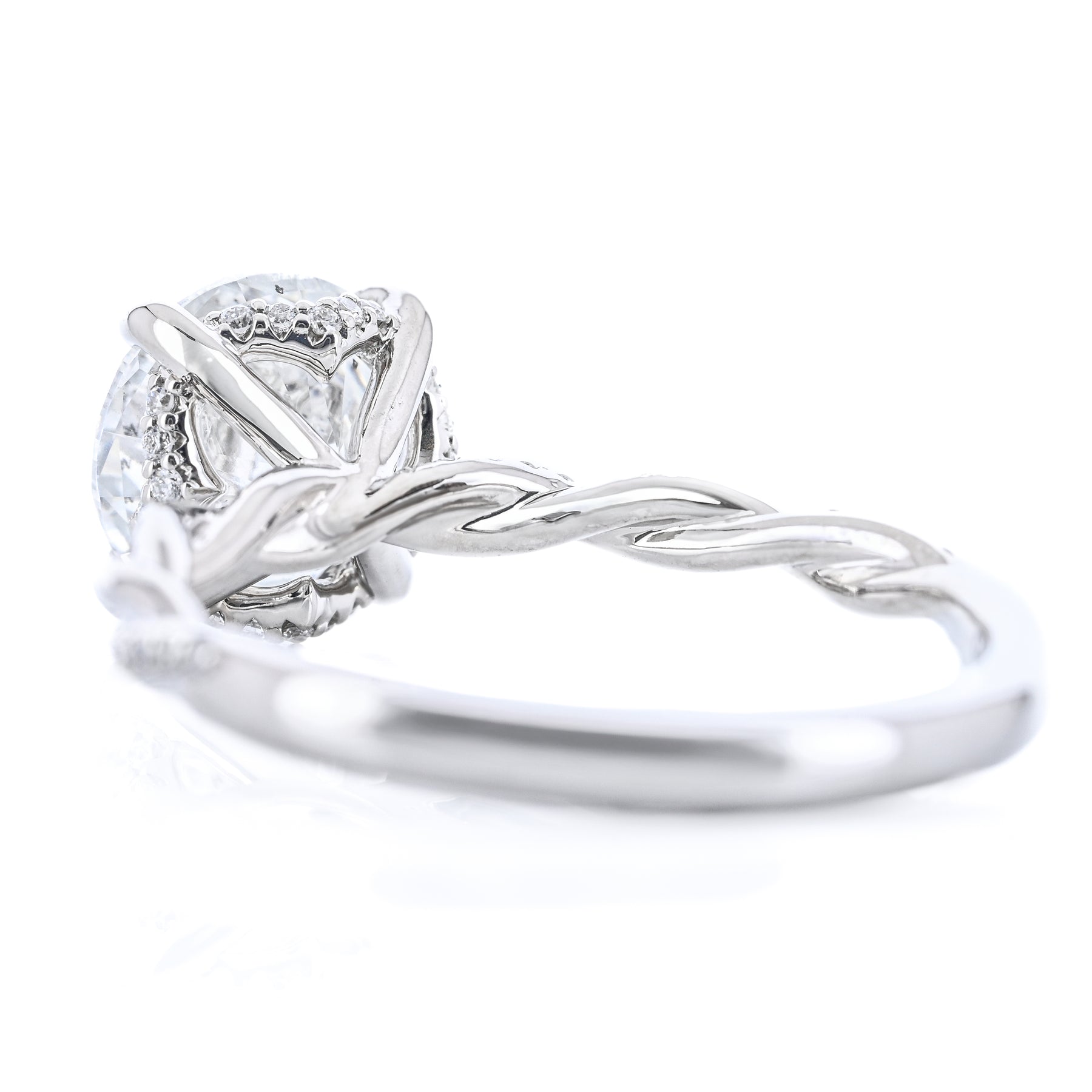 2.12CTW Round Diamond Engagement Ring - Hidden Scalloped Halo + Twisted Diamond Band - 14K White Gold