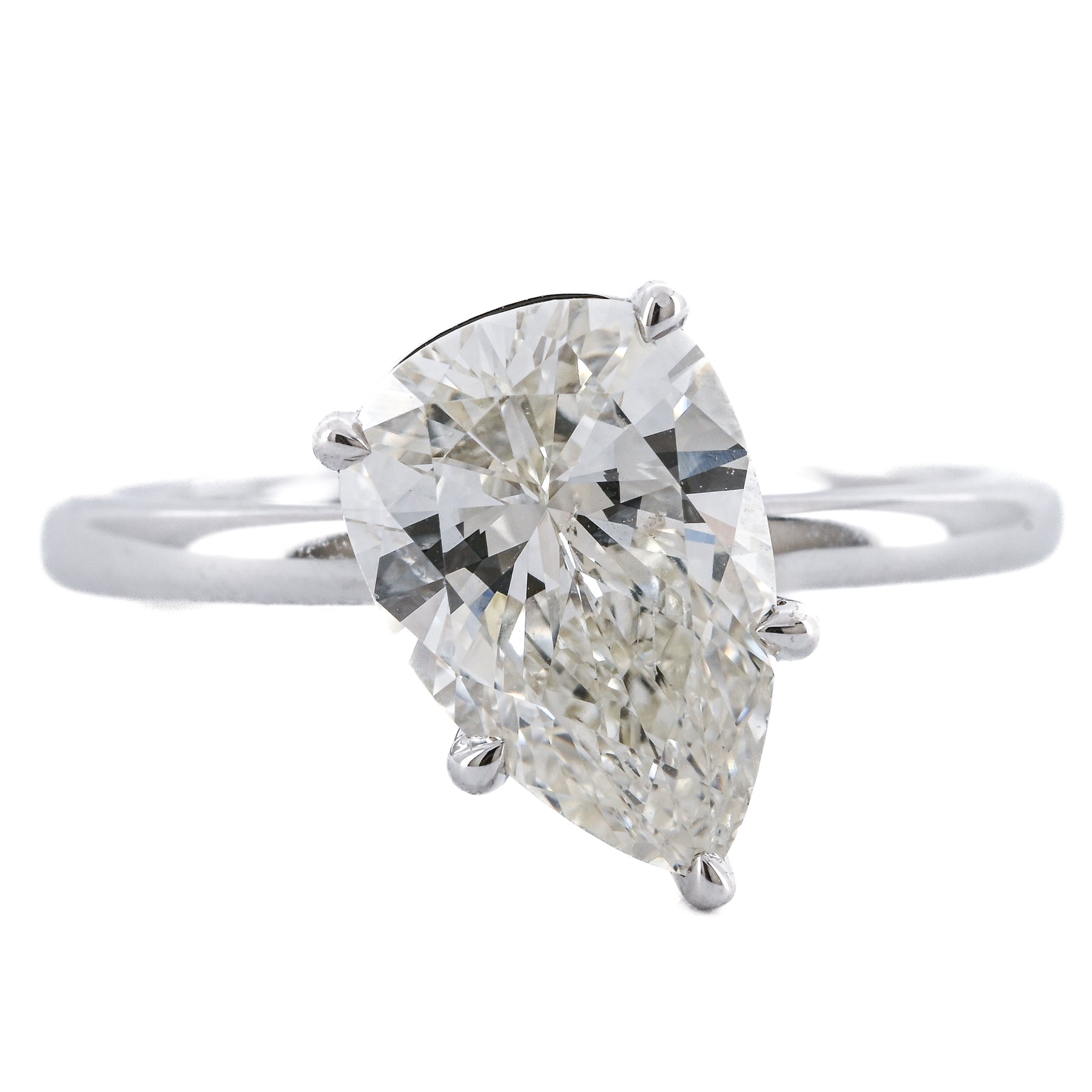 2.48CT Pear Diamond Engagement Ring - Slanted Solitaire - 14K White Gold