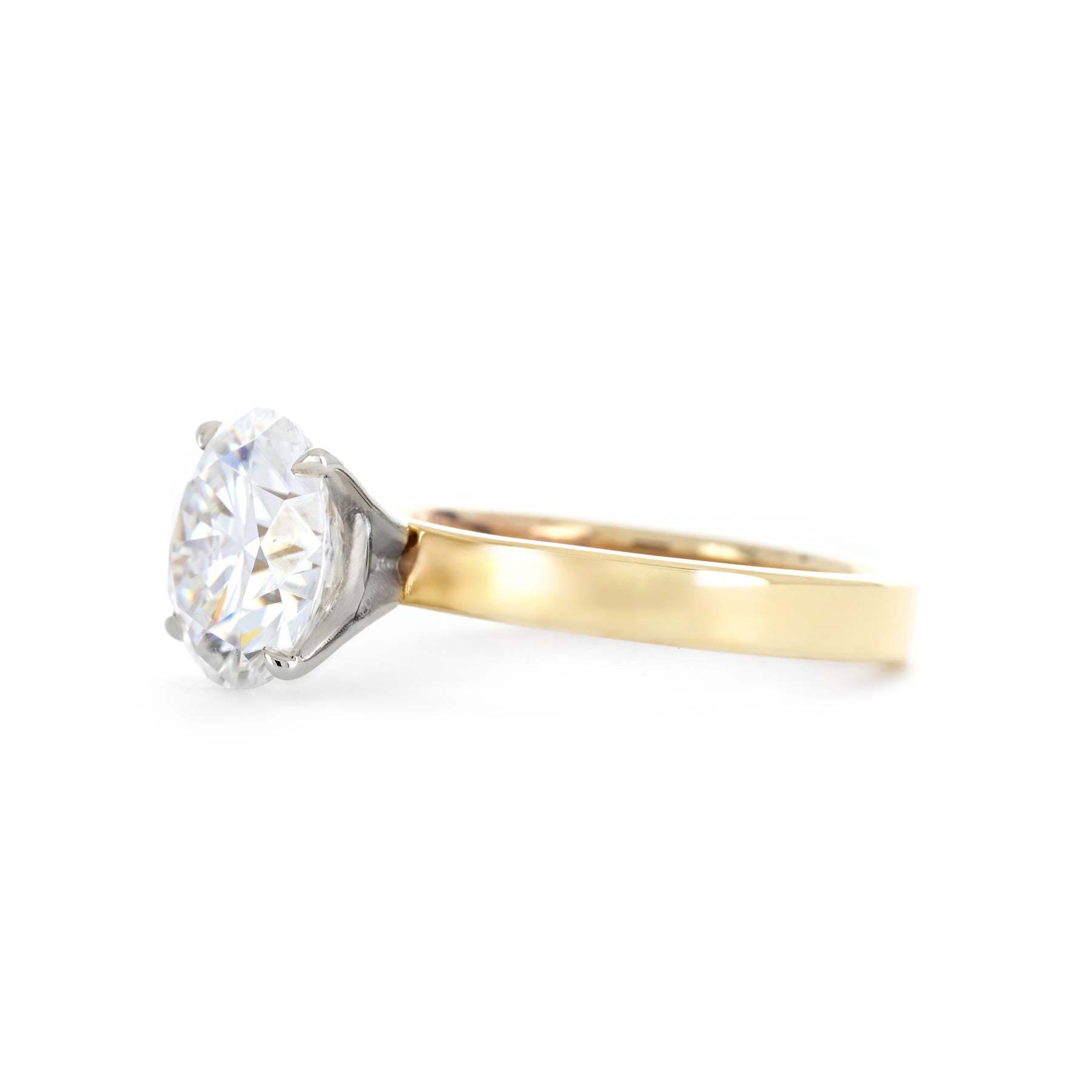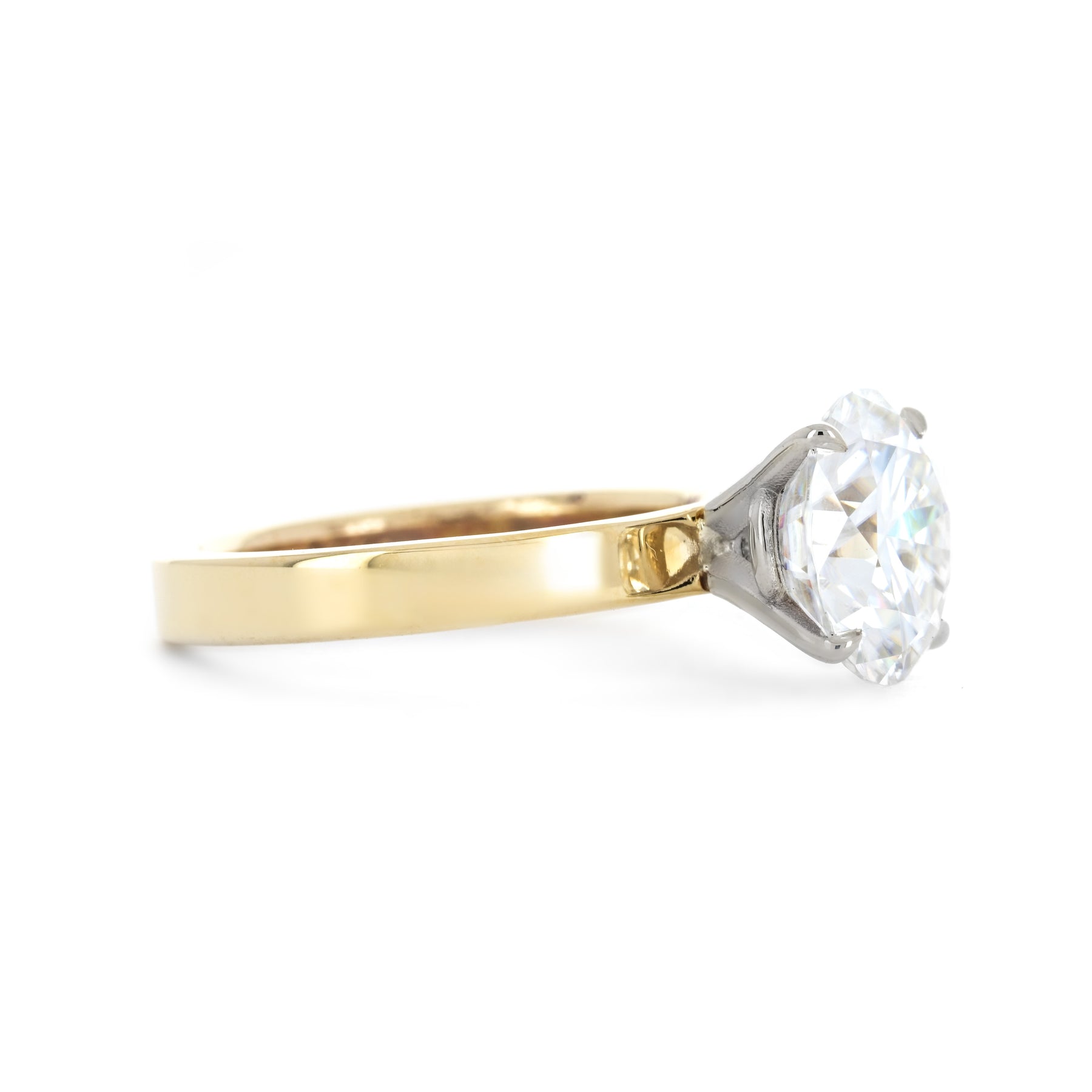 2.95ct Round Moissanite Engagement Ring, 3mm Band - 14k Multi-Tone Gold