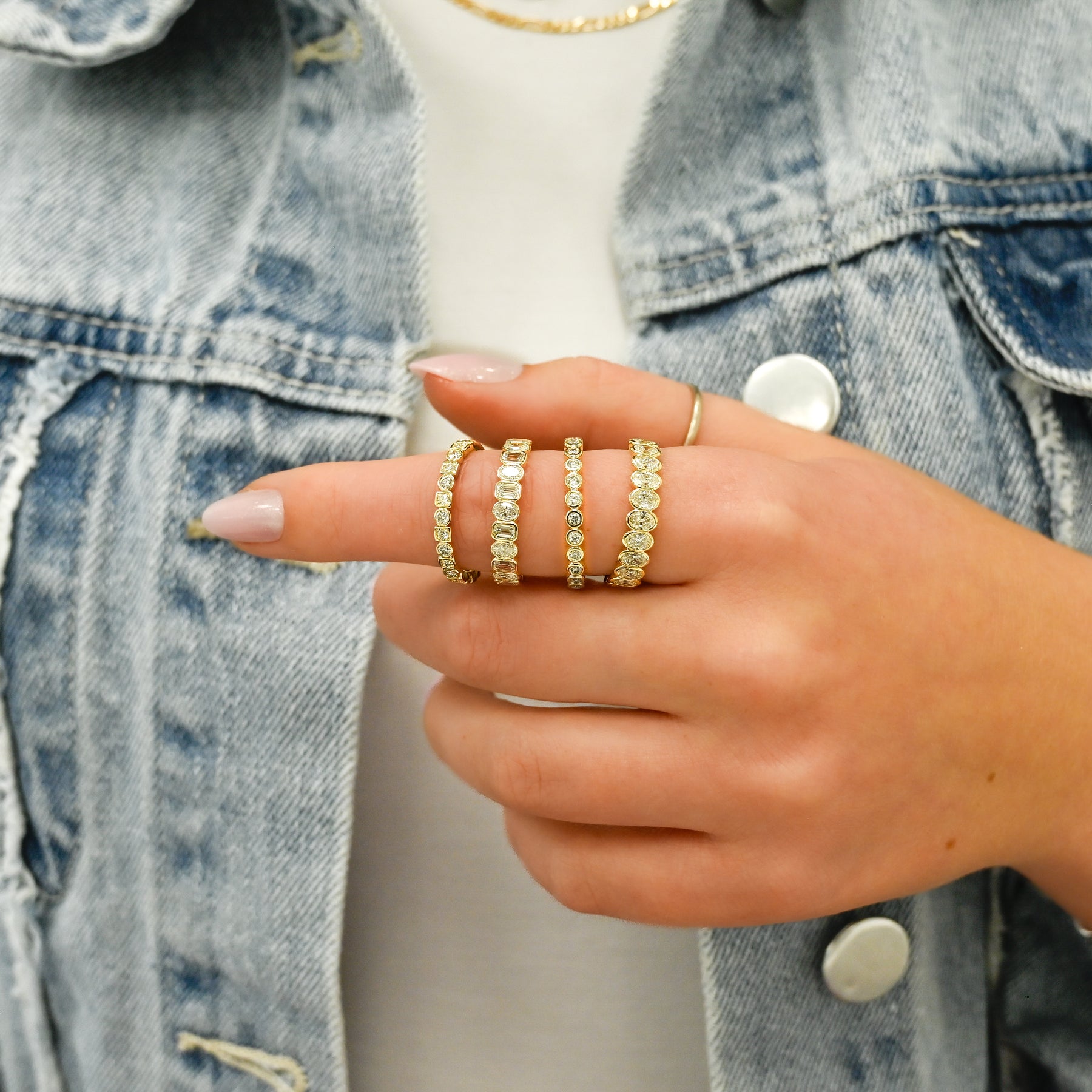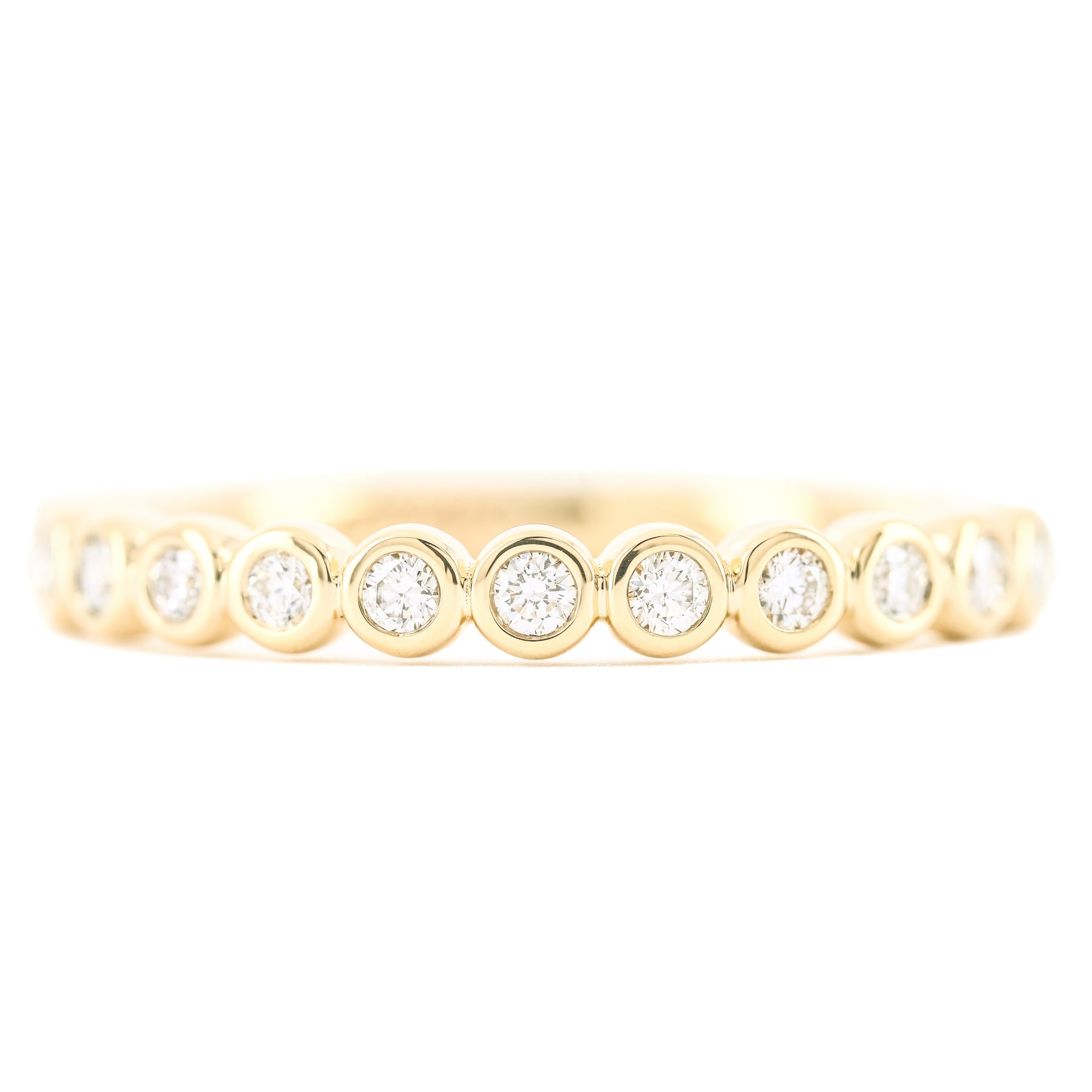 Introducing the .23ctw Round Diamond Bezel Set Band, crafted in 14K yellow gold, size 6.5