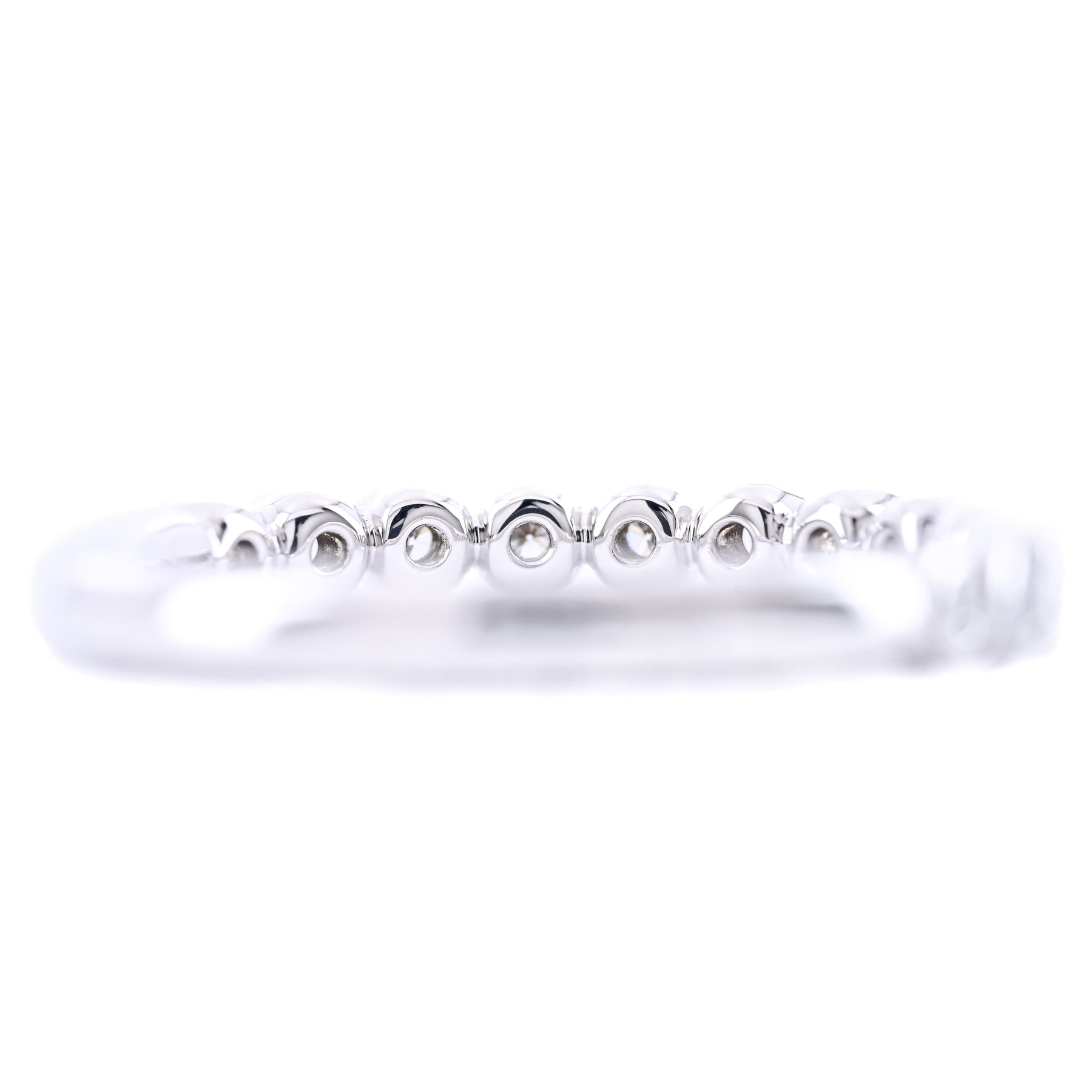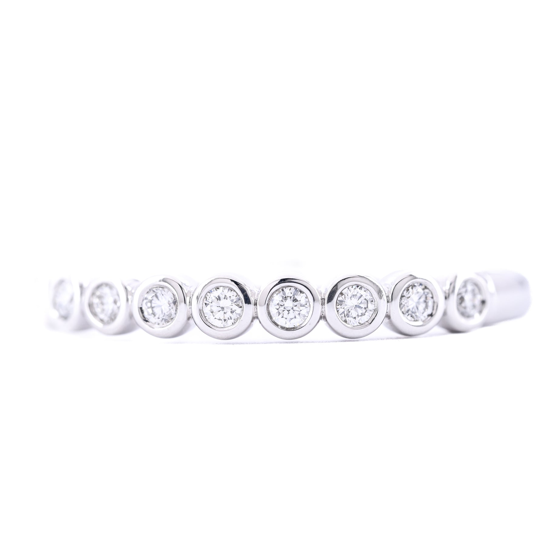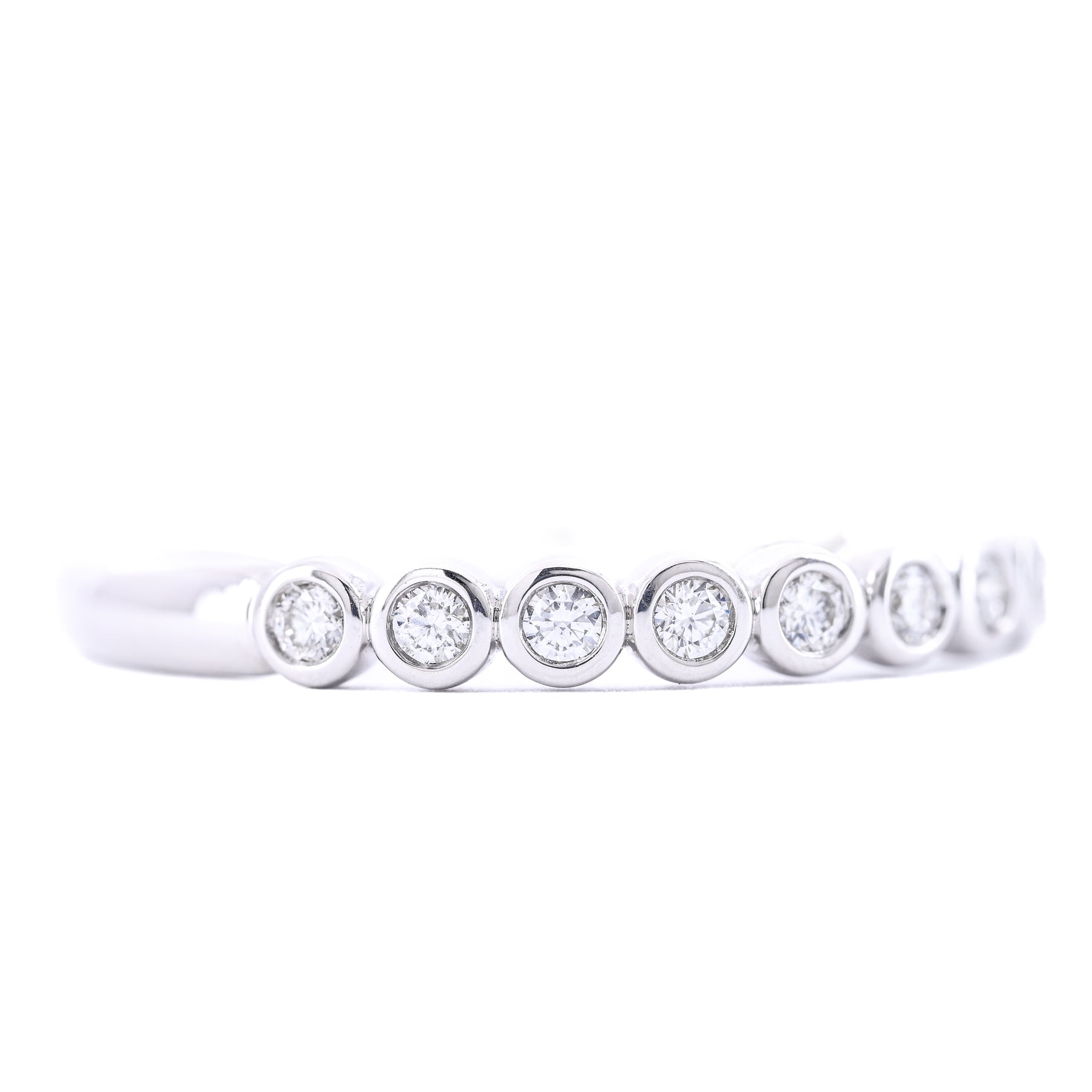 Introducing the .24ctw Round Diamond Bezel Band, crafted in 14K white gold, size 6.5