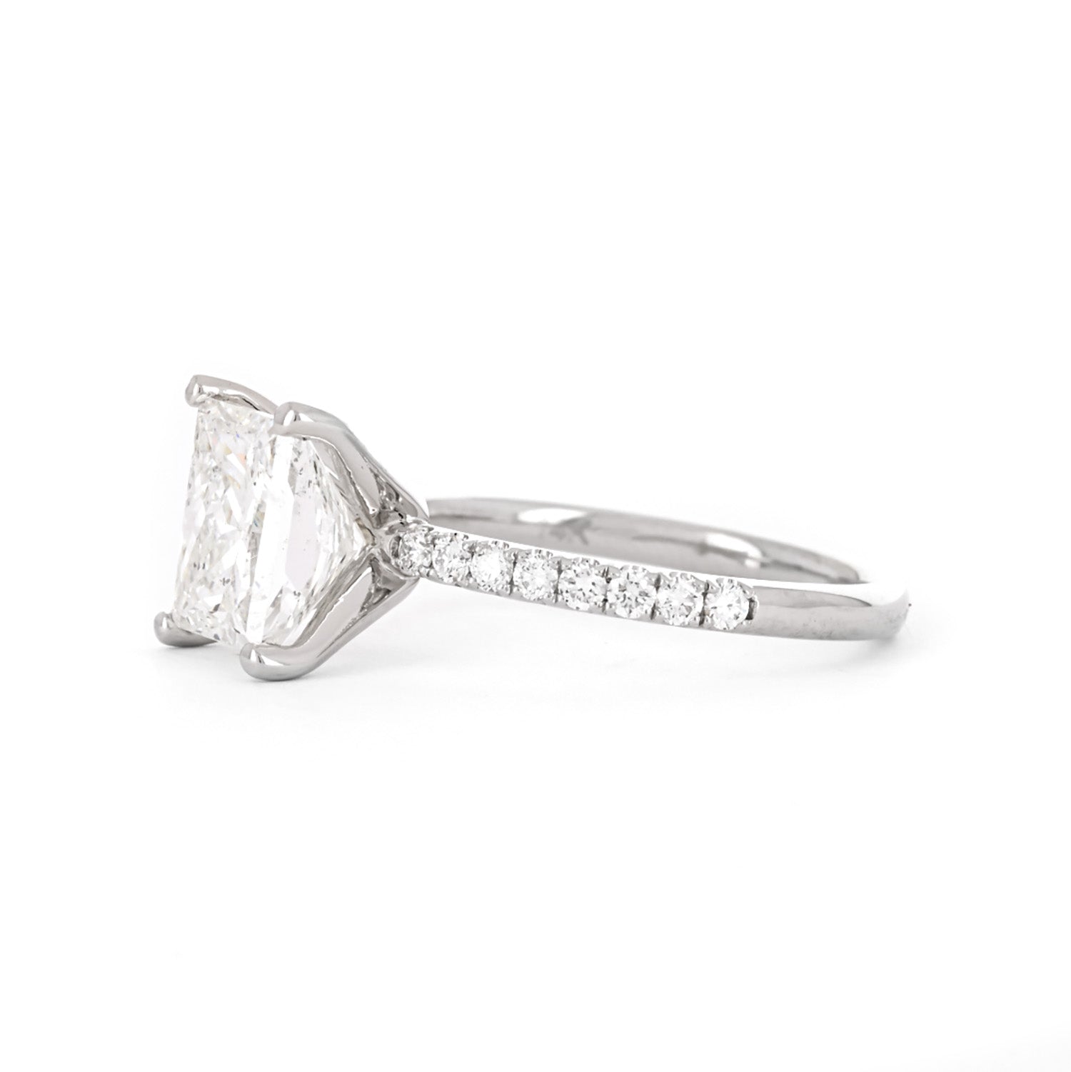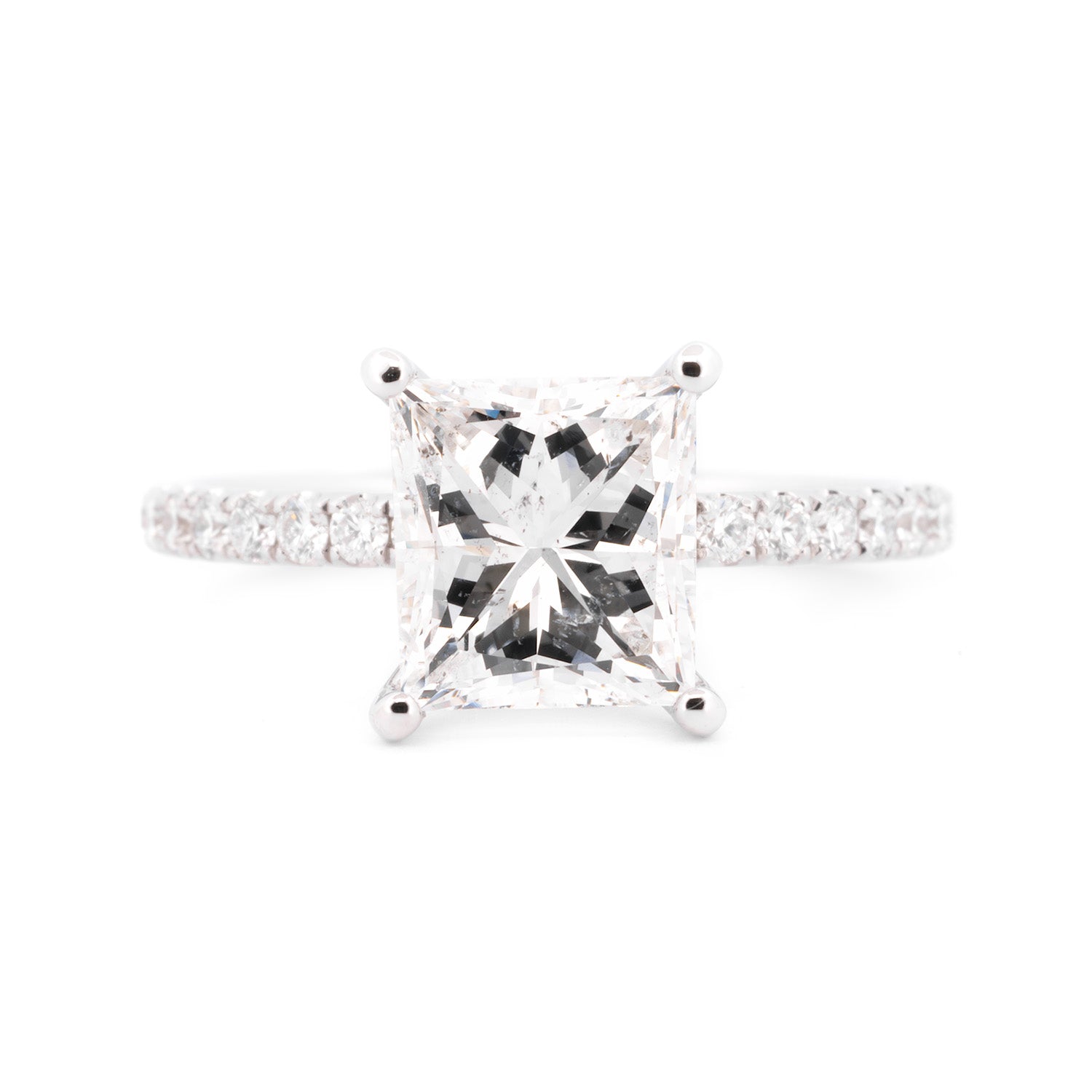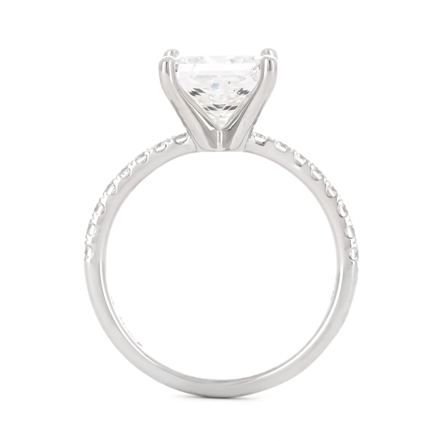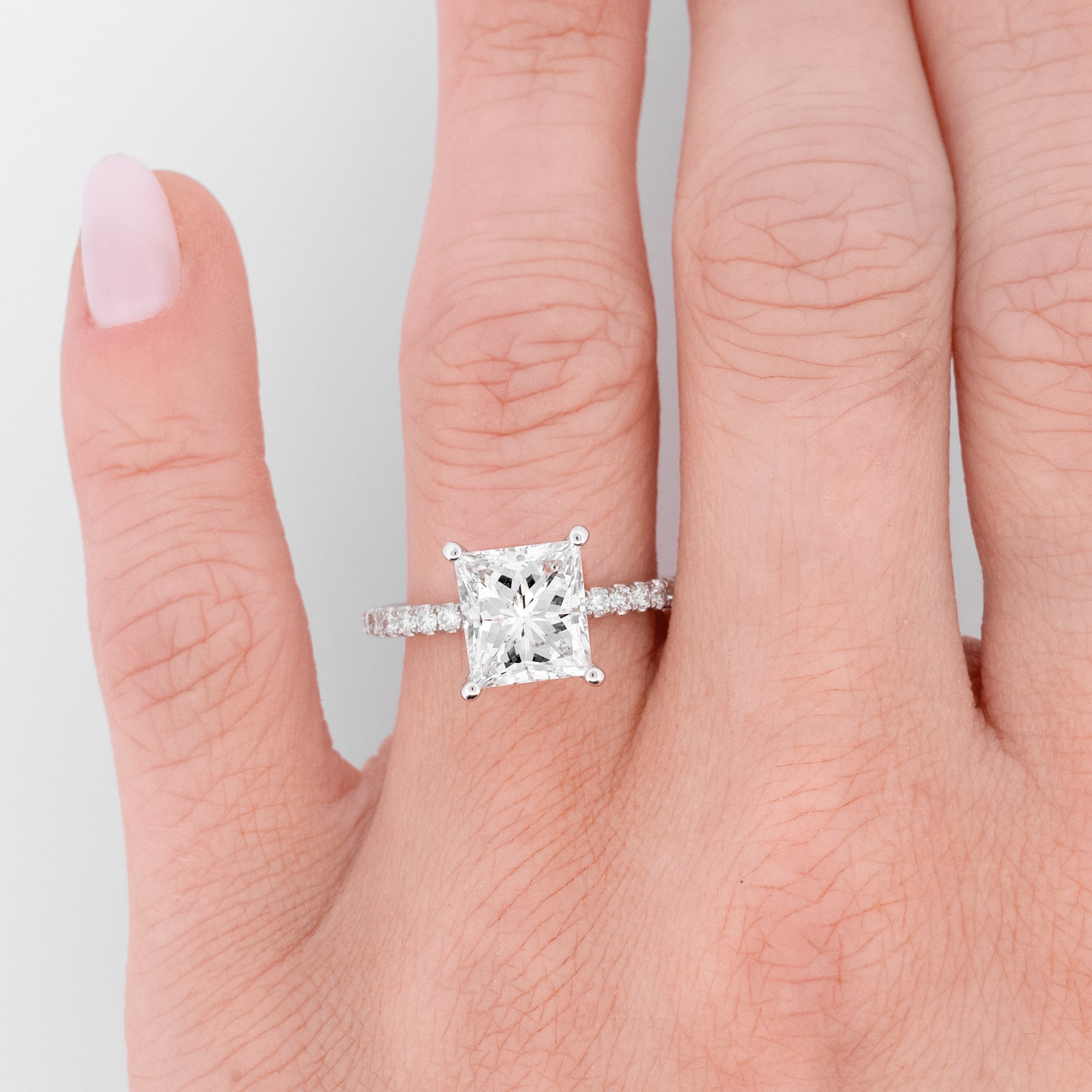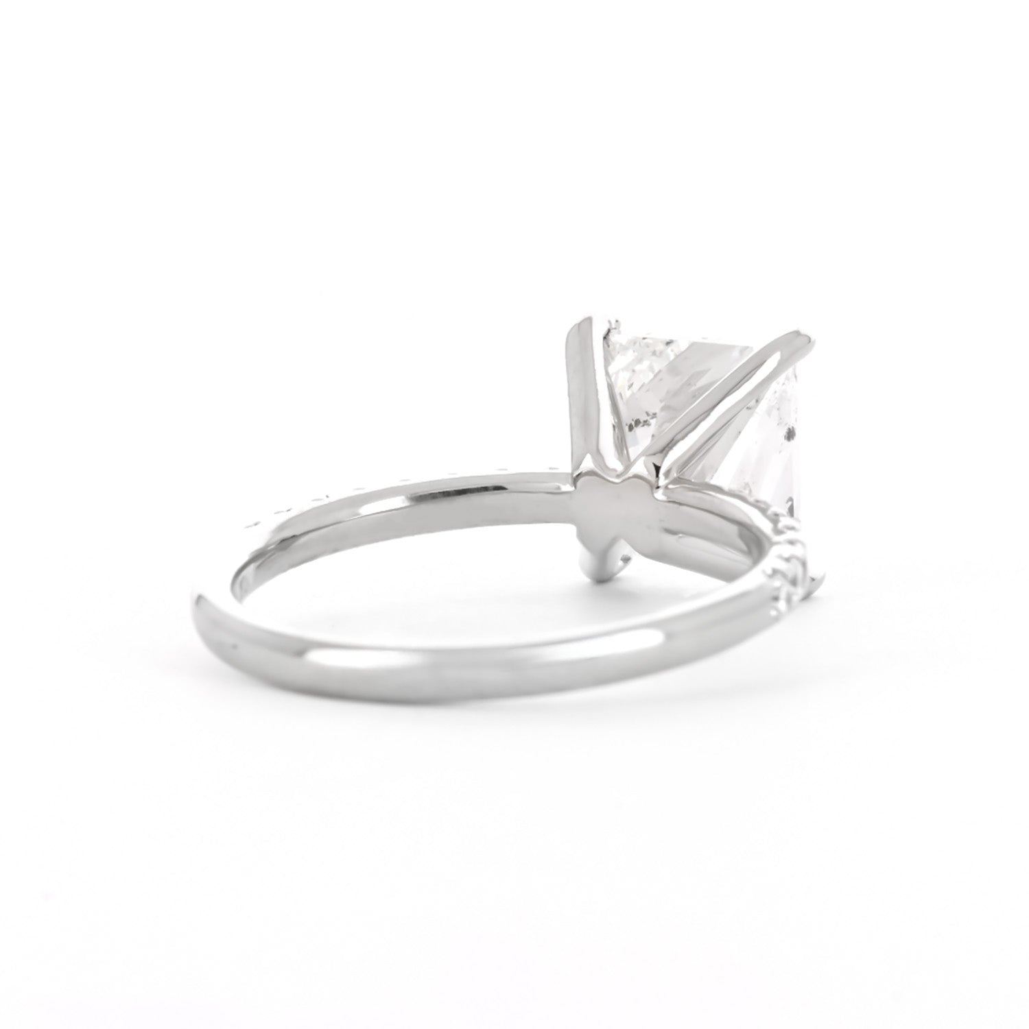 3.20ctw Princess Diamond Solitaire Engagement Ring, Pavê -14K White Gold