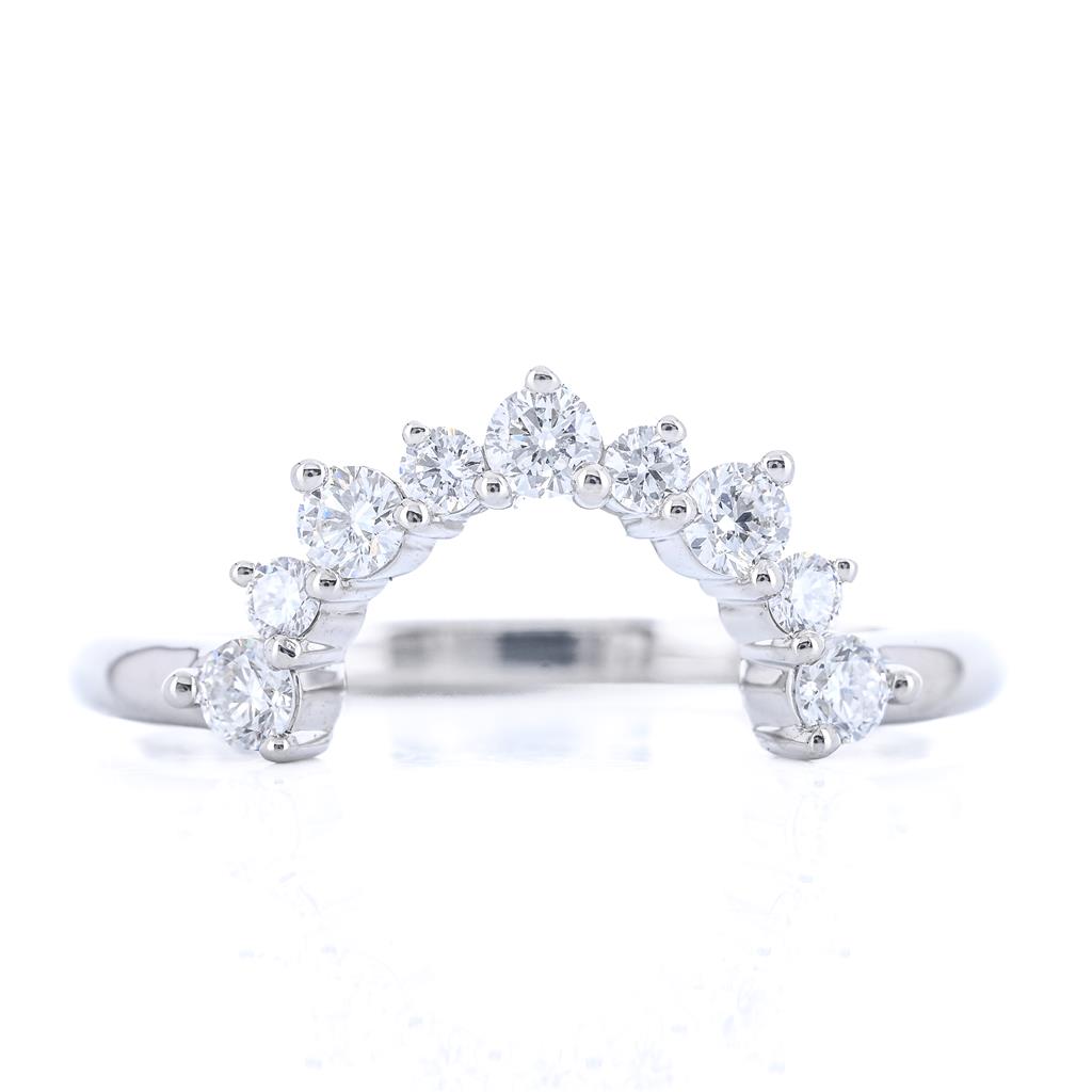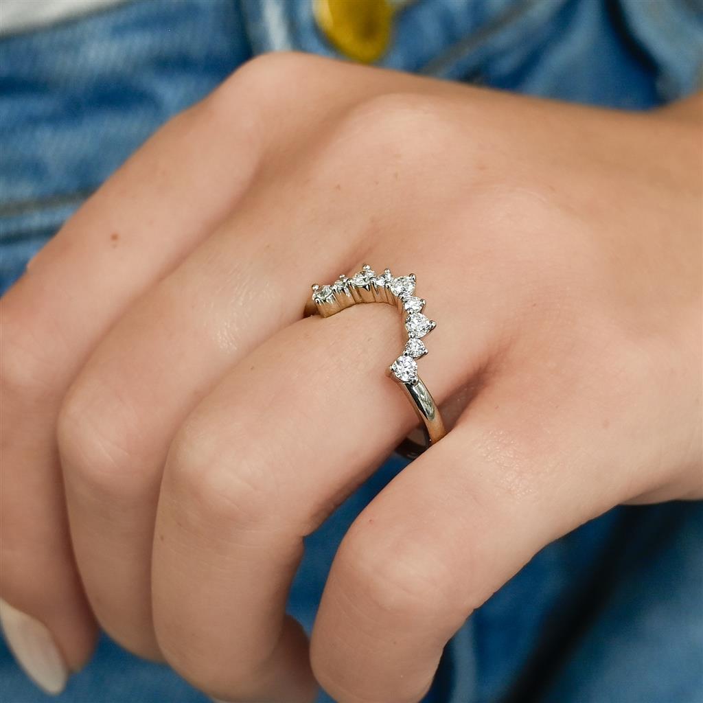 This 14K white gold diamond contour band features 0.37 carats total weight of lab-grown diamonds, designed in a graceful curve for a perfect stack or to complement an engagement ring. Size 3.5.