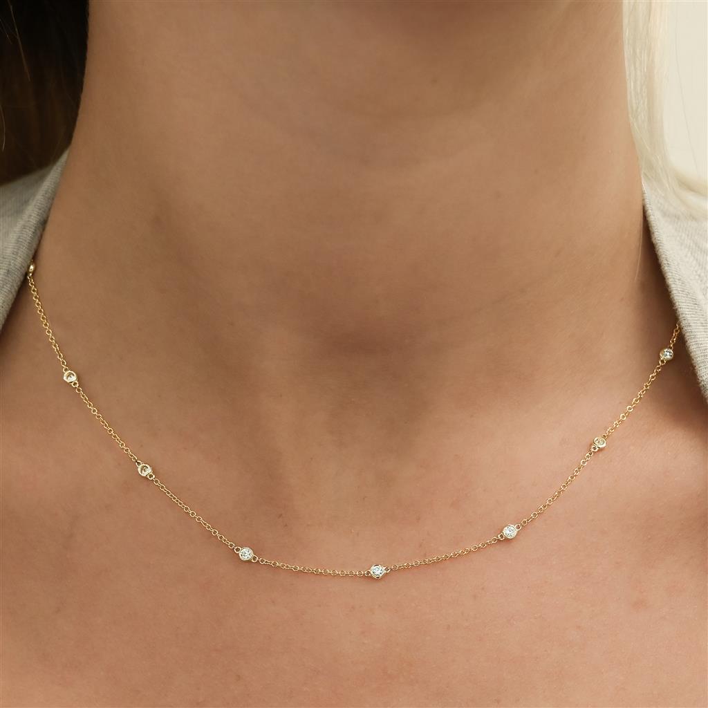 This 14K yellow gold necklace features a classic Diamonds by the Yard design with 0.38 carats of diamonds set along an 18-inch chain.