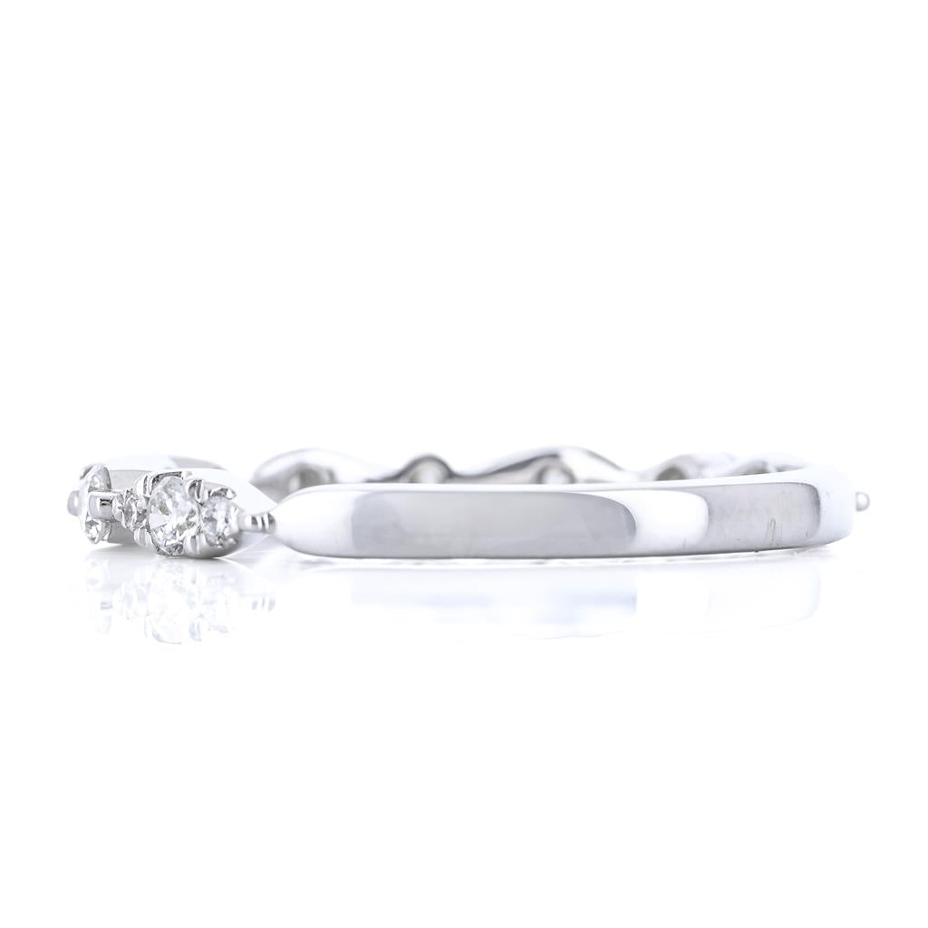 This 18K white gold diamond band features 0.40 carats of round diamonds in a single-prong alternating marquise station design and is a size 6.5.