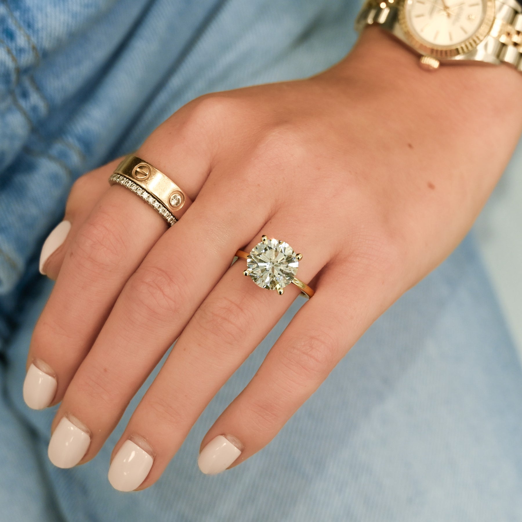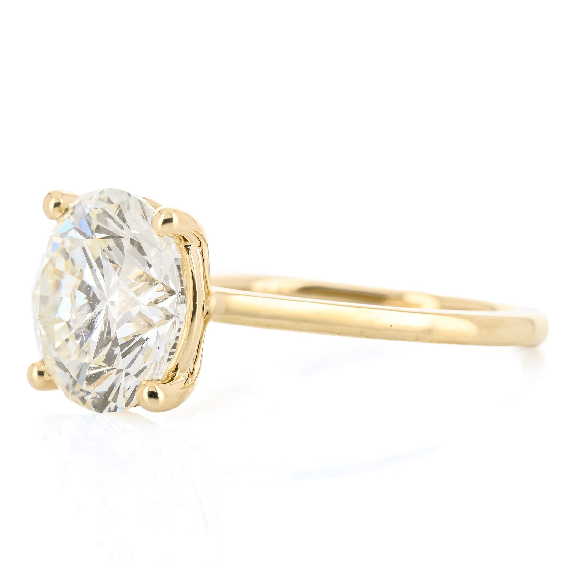 Introducing the 5.04ct Round Brilliant Cut Diamond Solitaire Ring, a breathtaking GIA-certified center stone set in a timeless 14K yellow gold solitaire design.