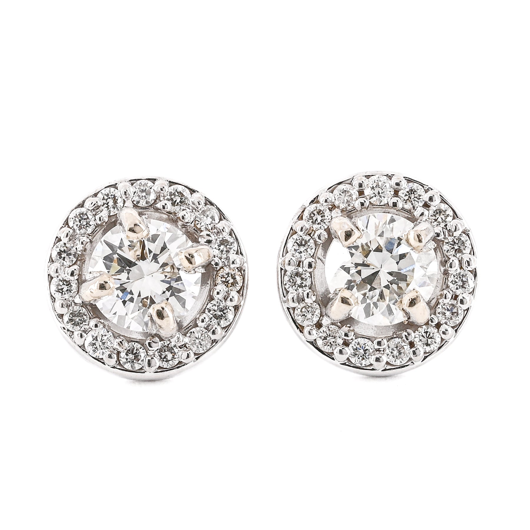 .63CTW Round Diamond Stud Earrings - 4 Prong + Halo - 14K White Gold