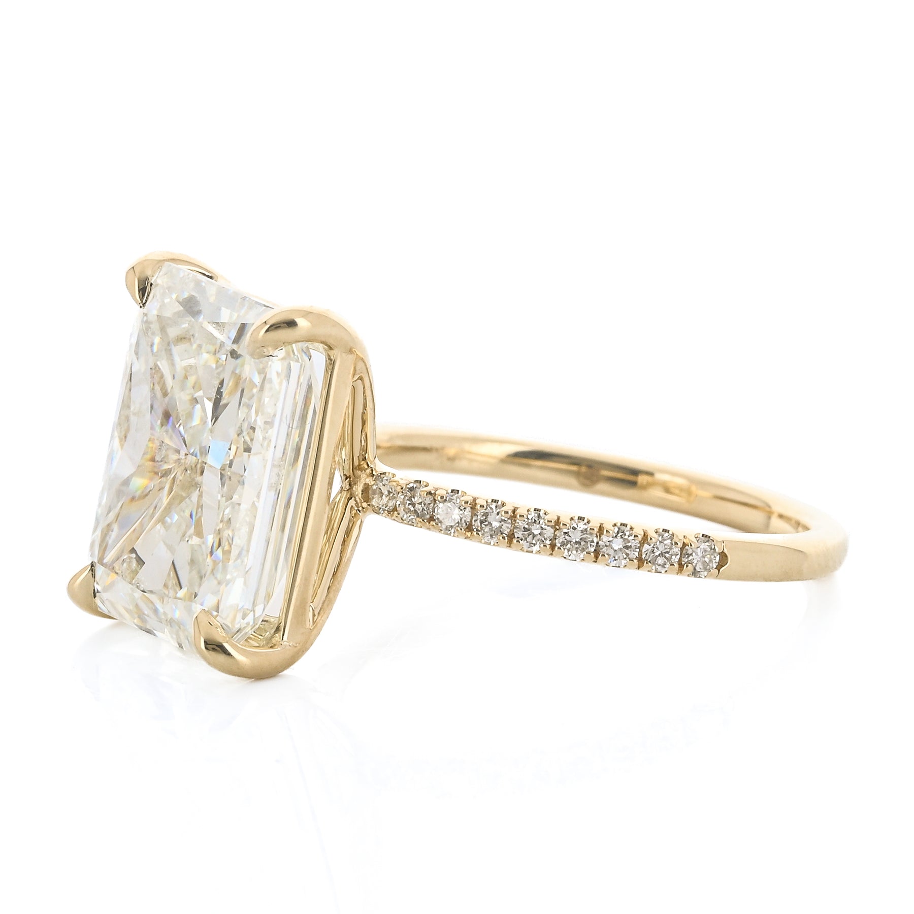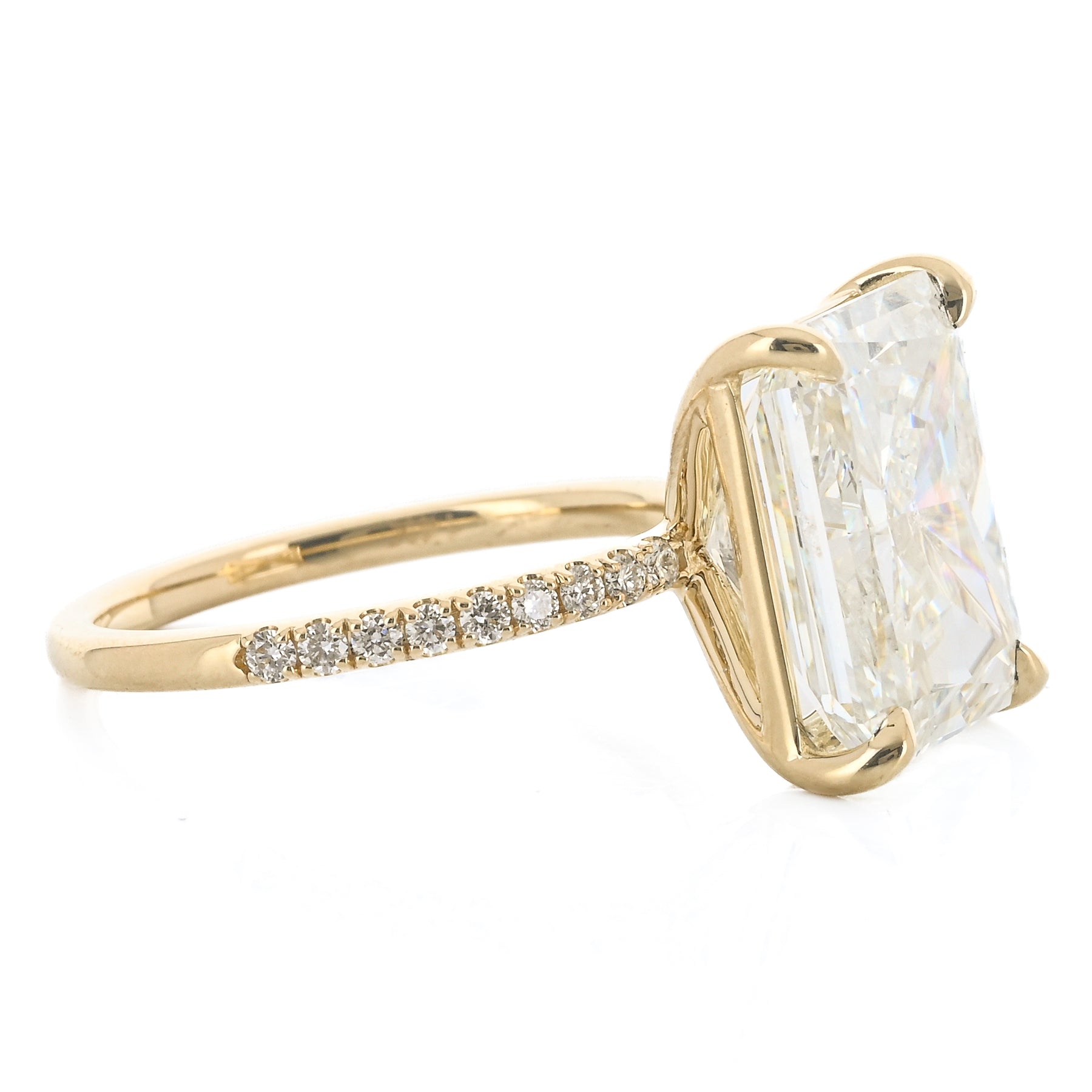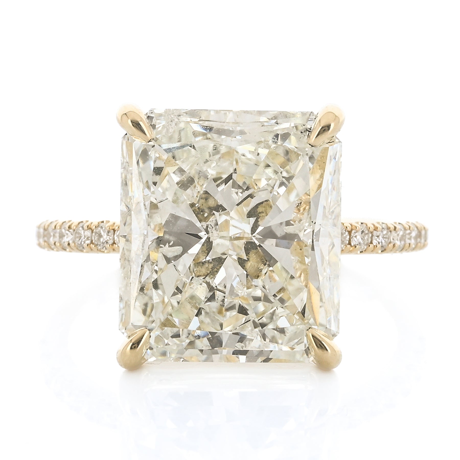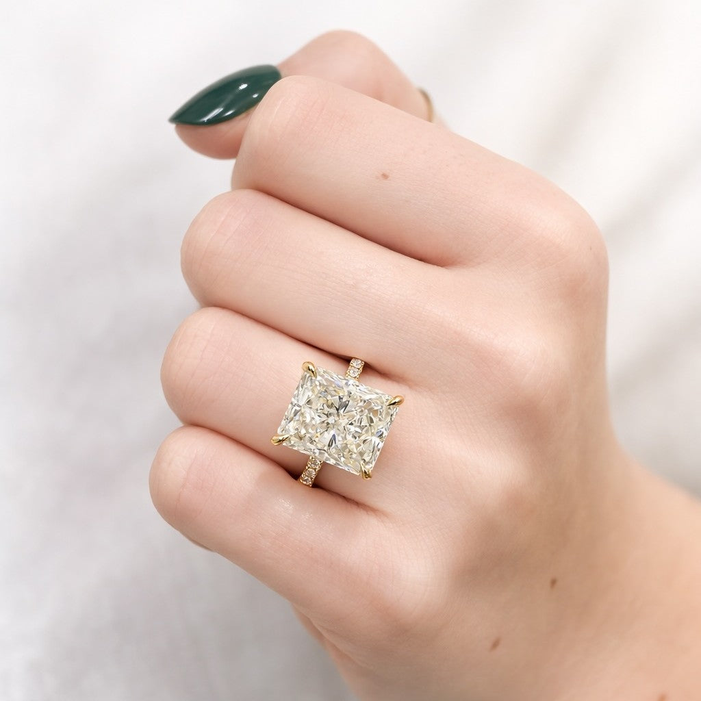 8.52CTW Radiant Diamond Engagement Ring - Pavé Band - 14K Yellow Gold