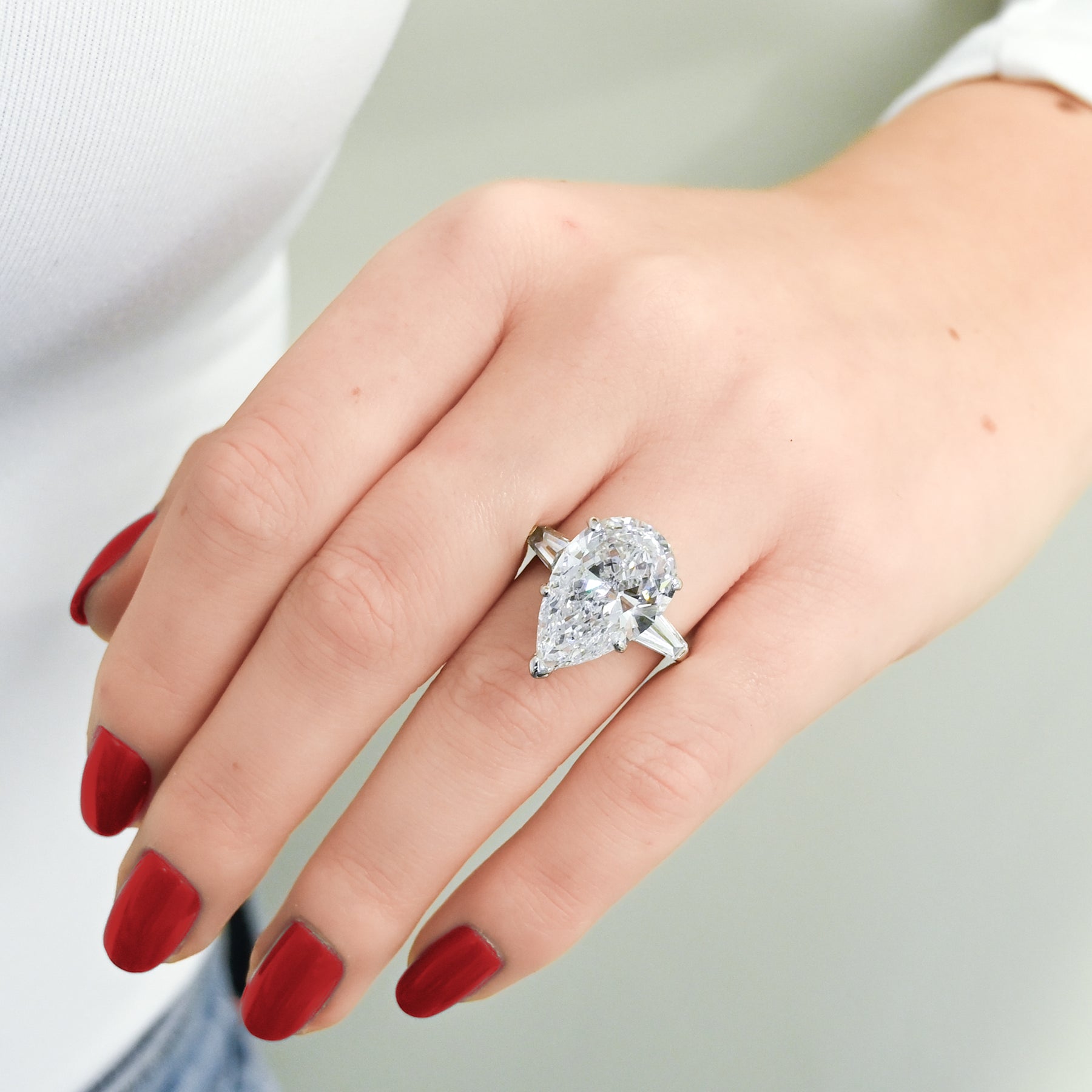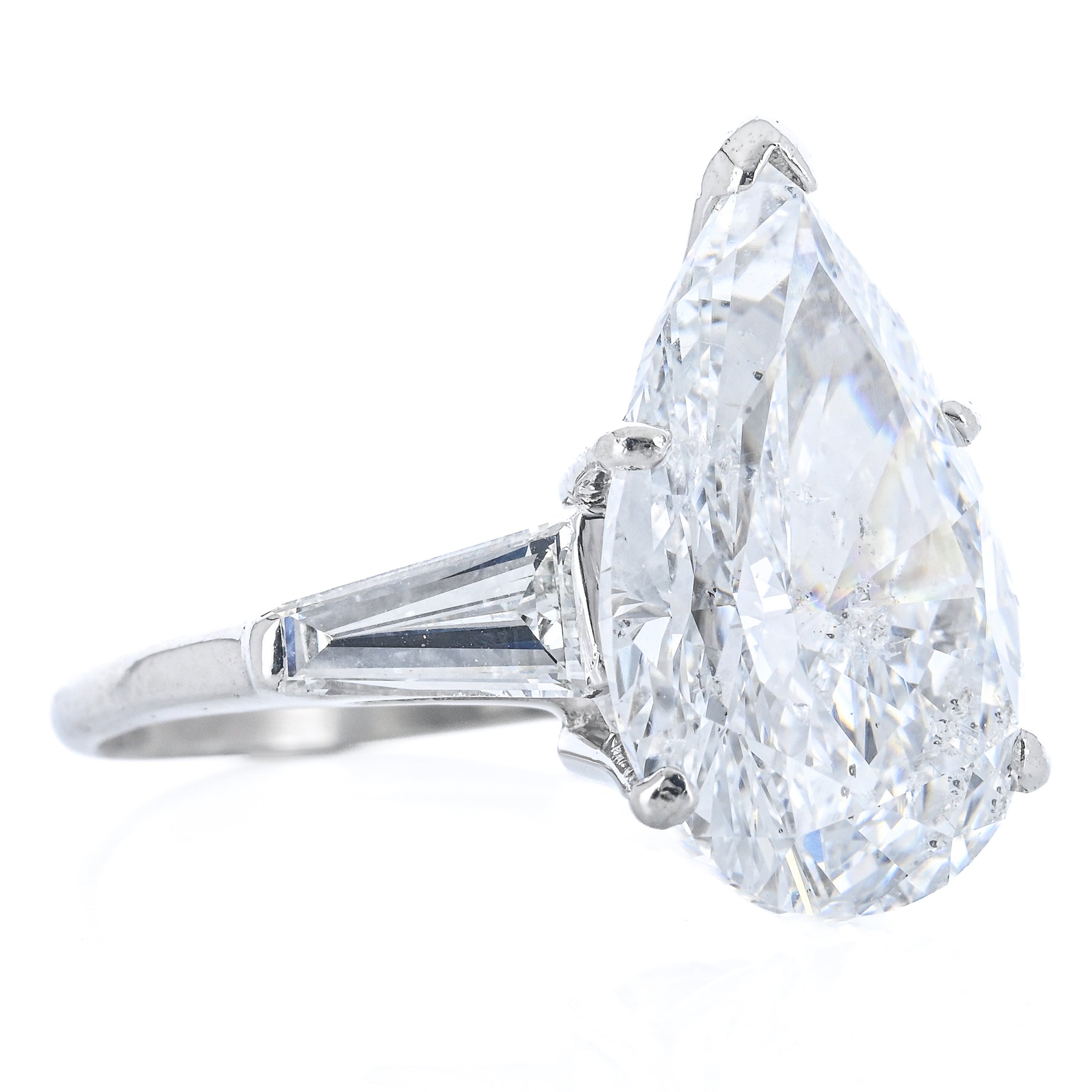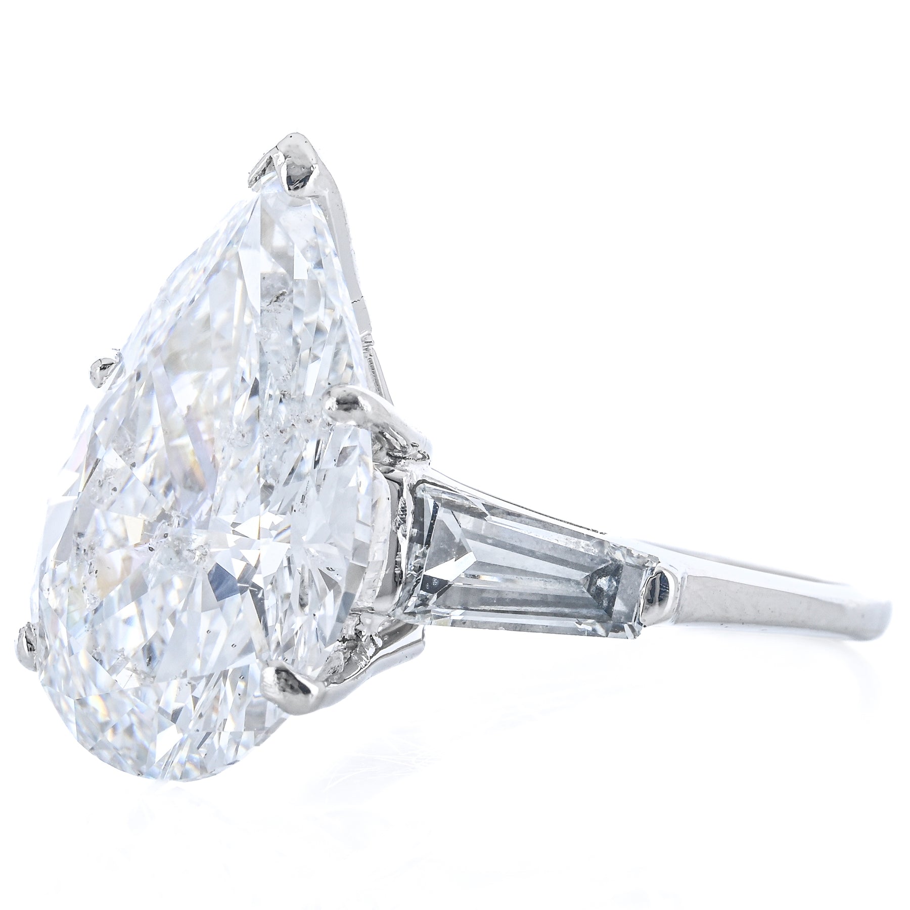 8.81CTW Pear + Tapered Baguette Diamond Three Stone Engagement Ring - 950 Platinum