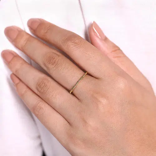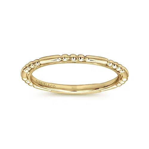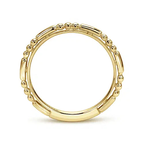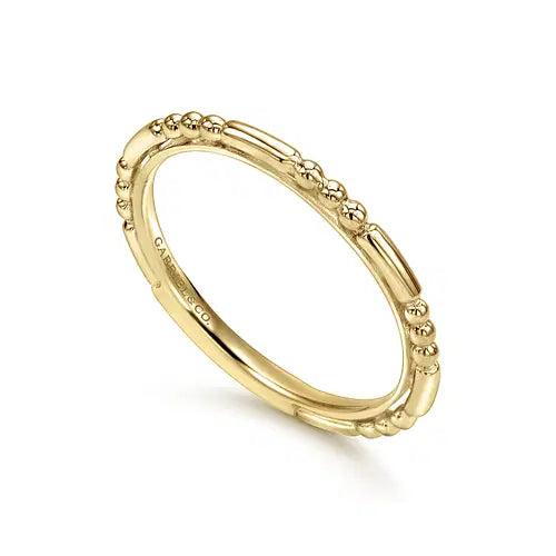 This 14K yellow gold stackable ring features alternating ball and bar stations. Size 6.5.