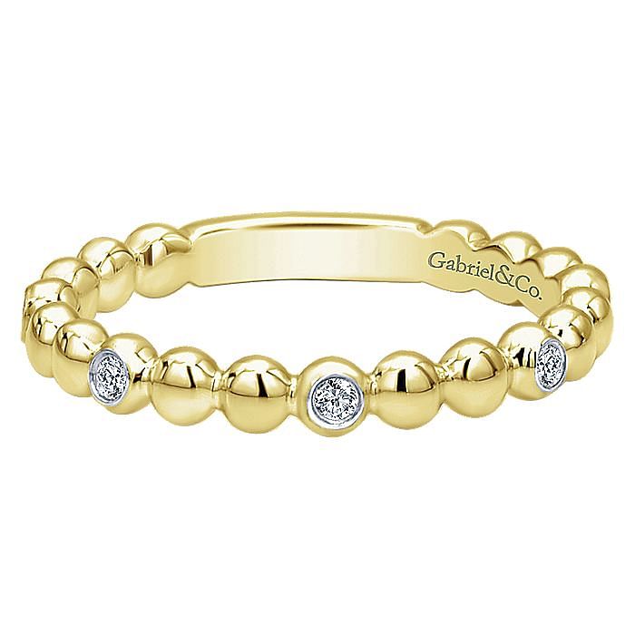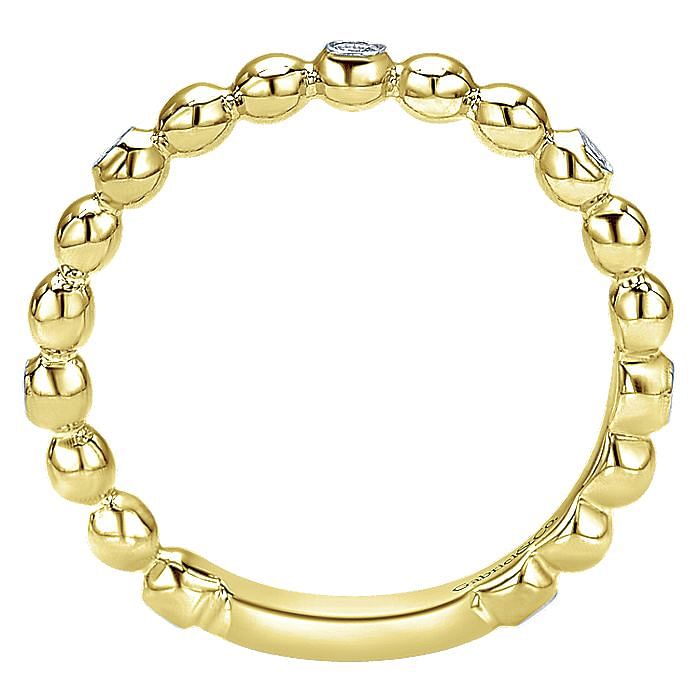 Beaded Station and Diamond Ring, Size 6.5 | 14k Yellow Gold