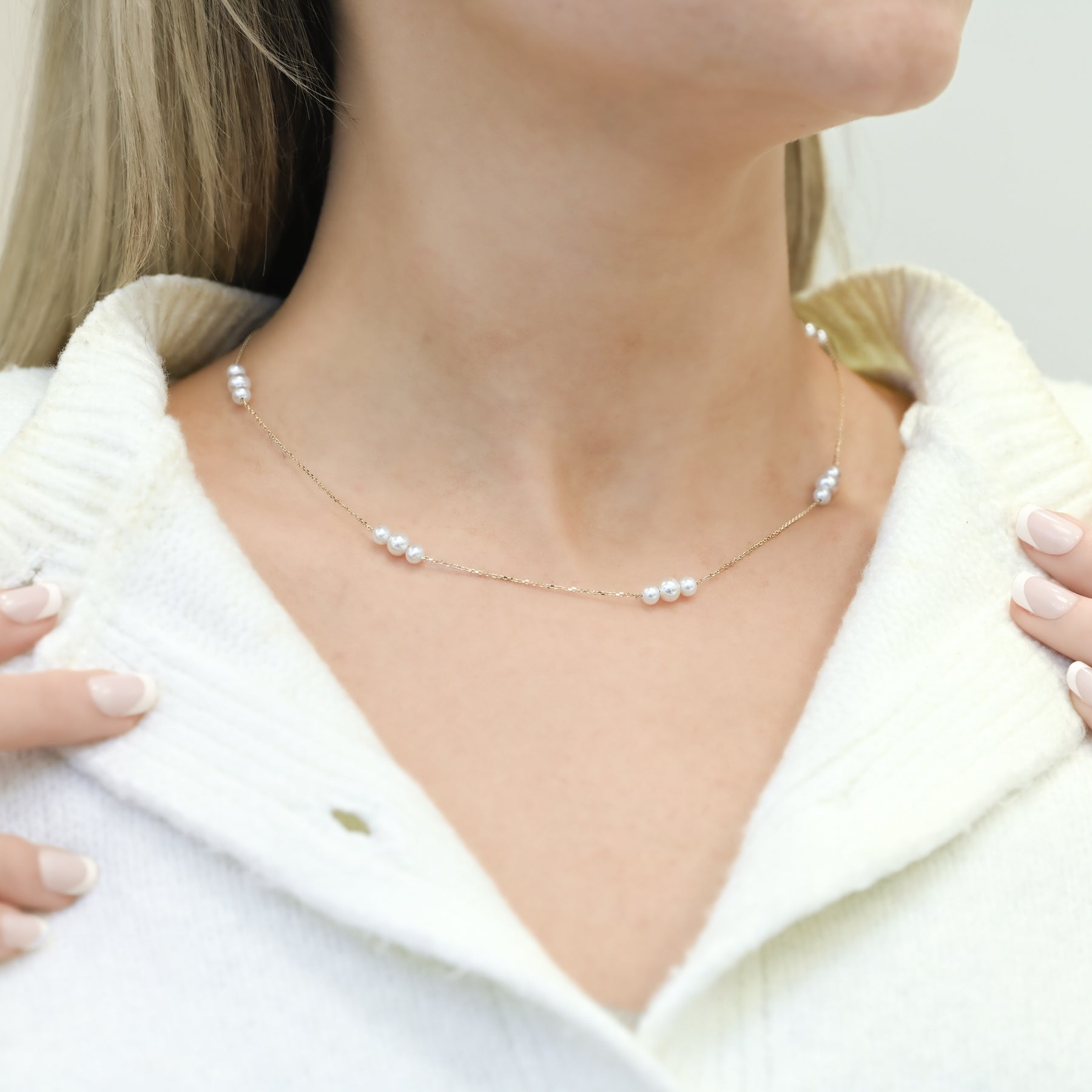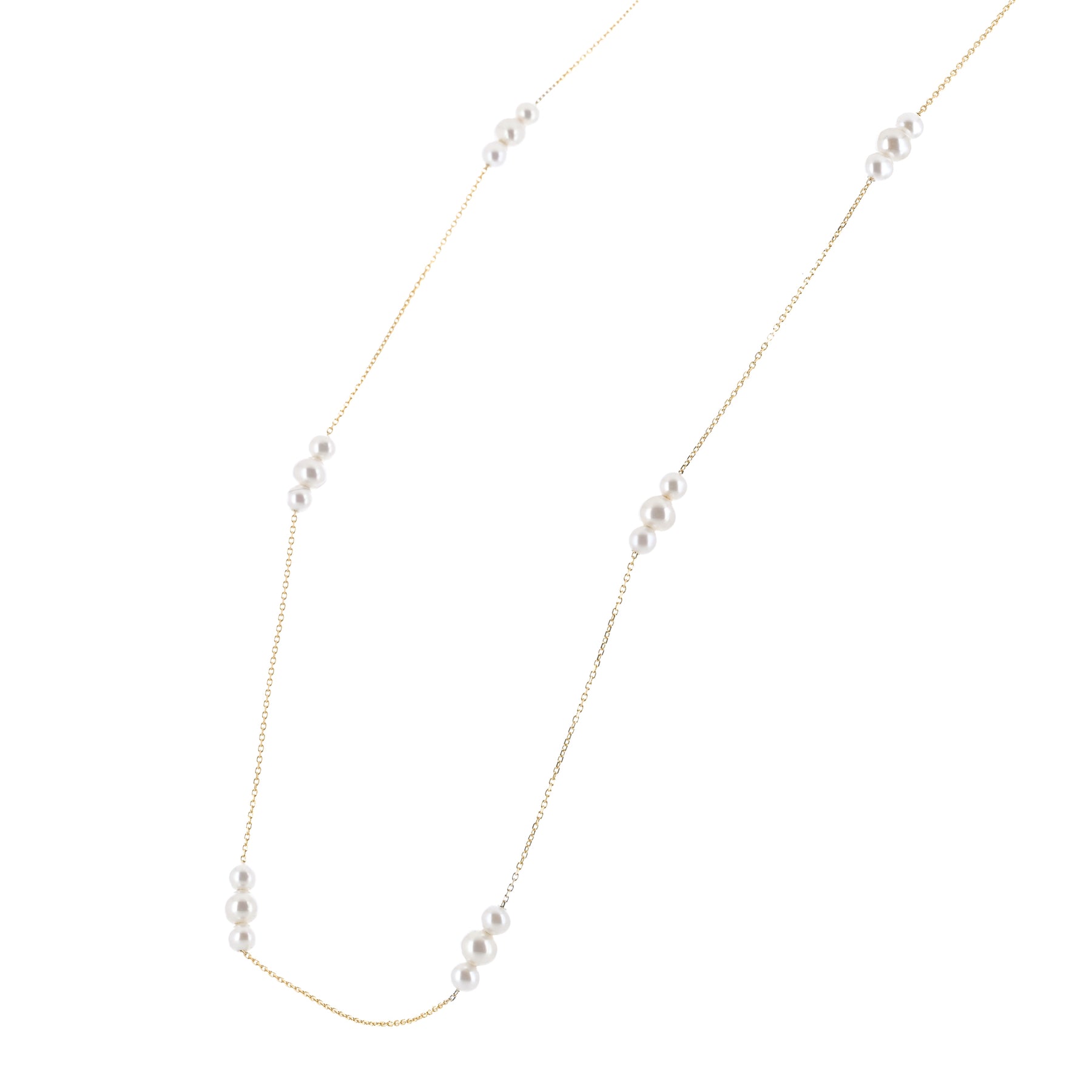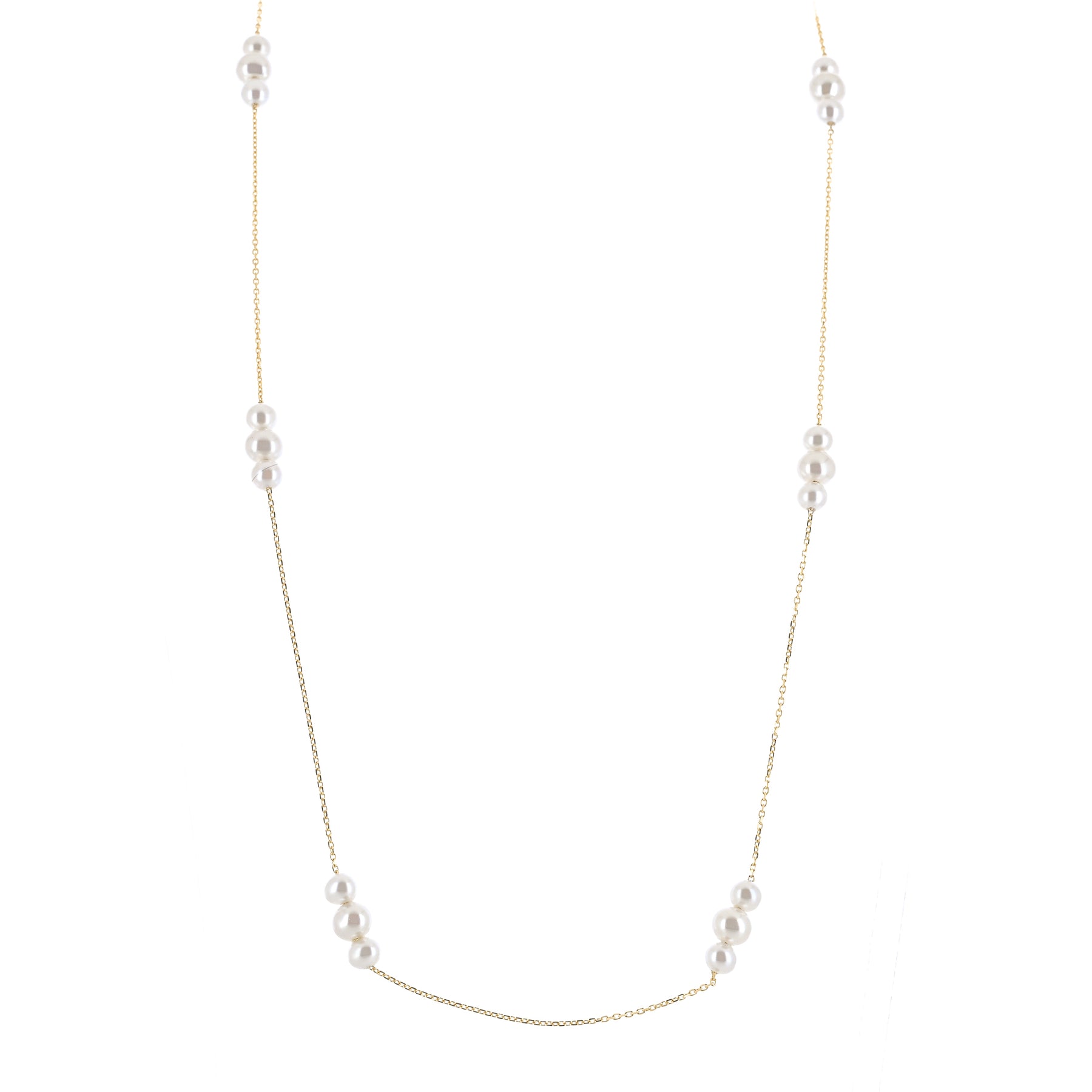 Cultured Freshwater Pearl Necklace, 18" - Graduated Stations - 14K Yellow Gold
