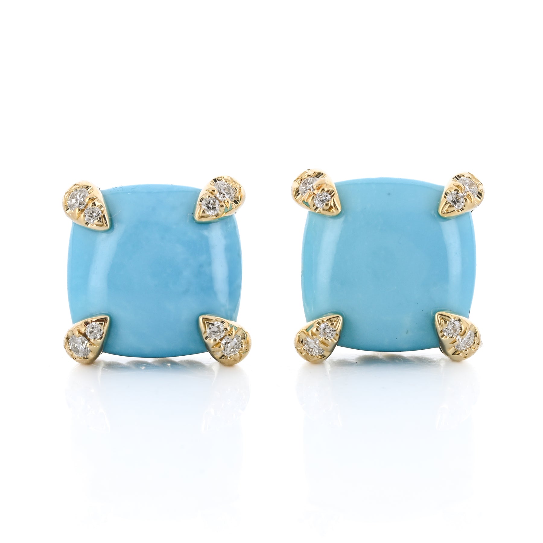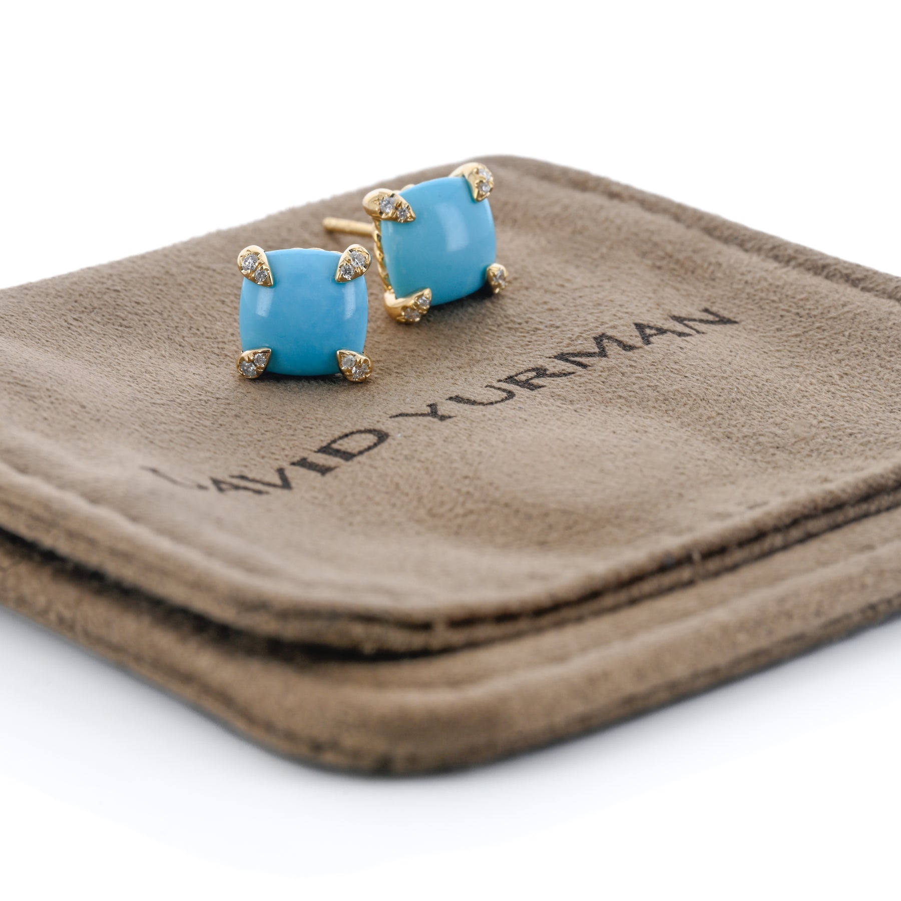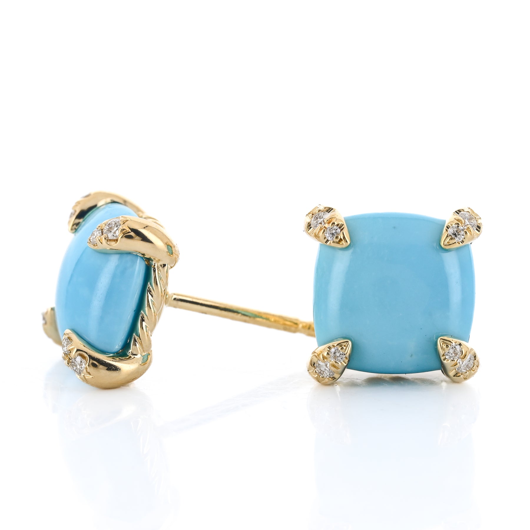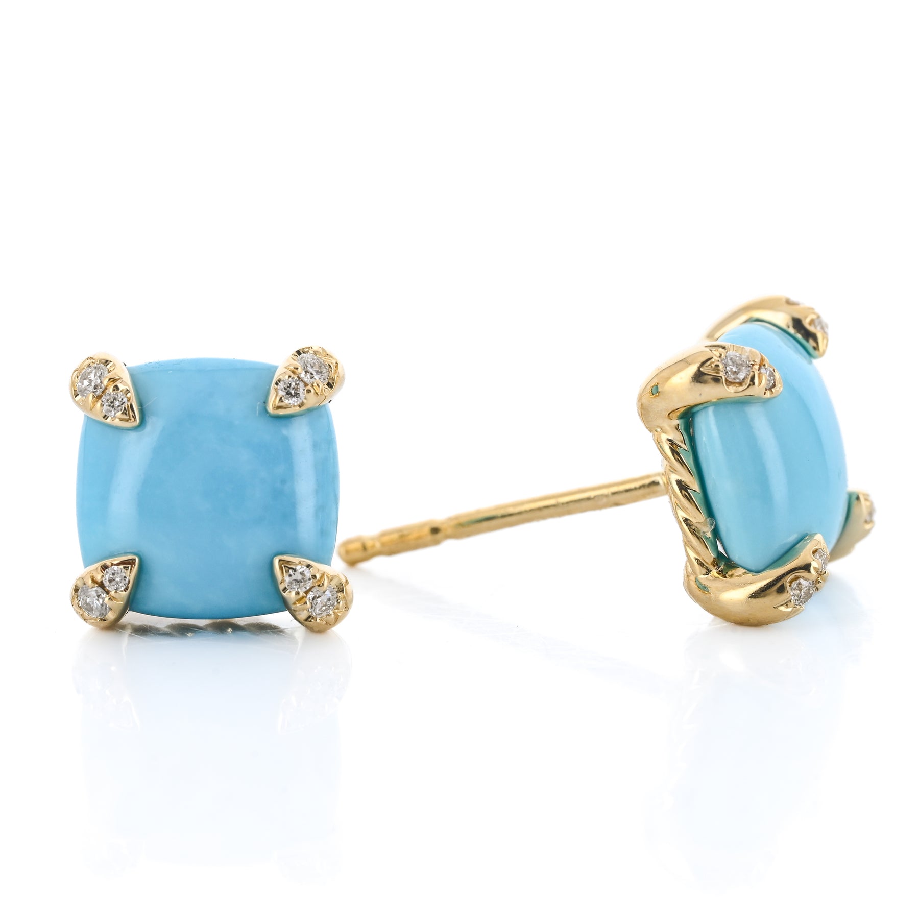 David Yurman | .06CTW Diamond + Turquoise Chatelaine Stud Earrings - 18K Yellow Gold