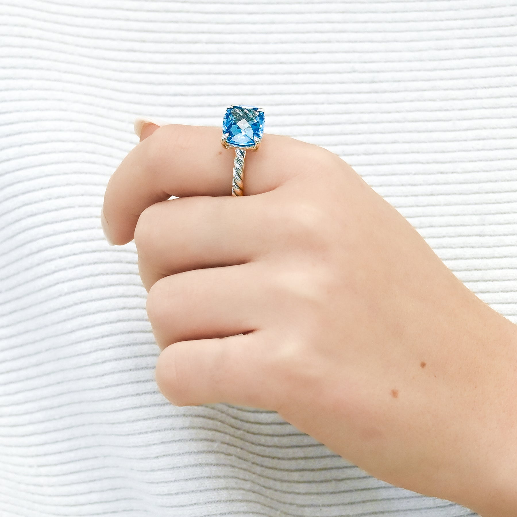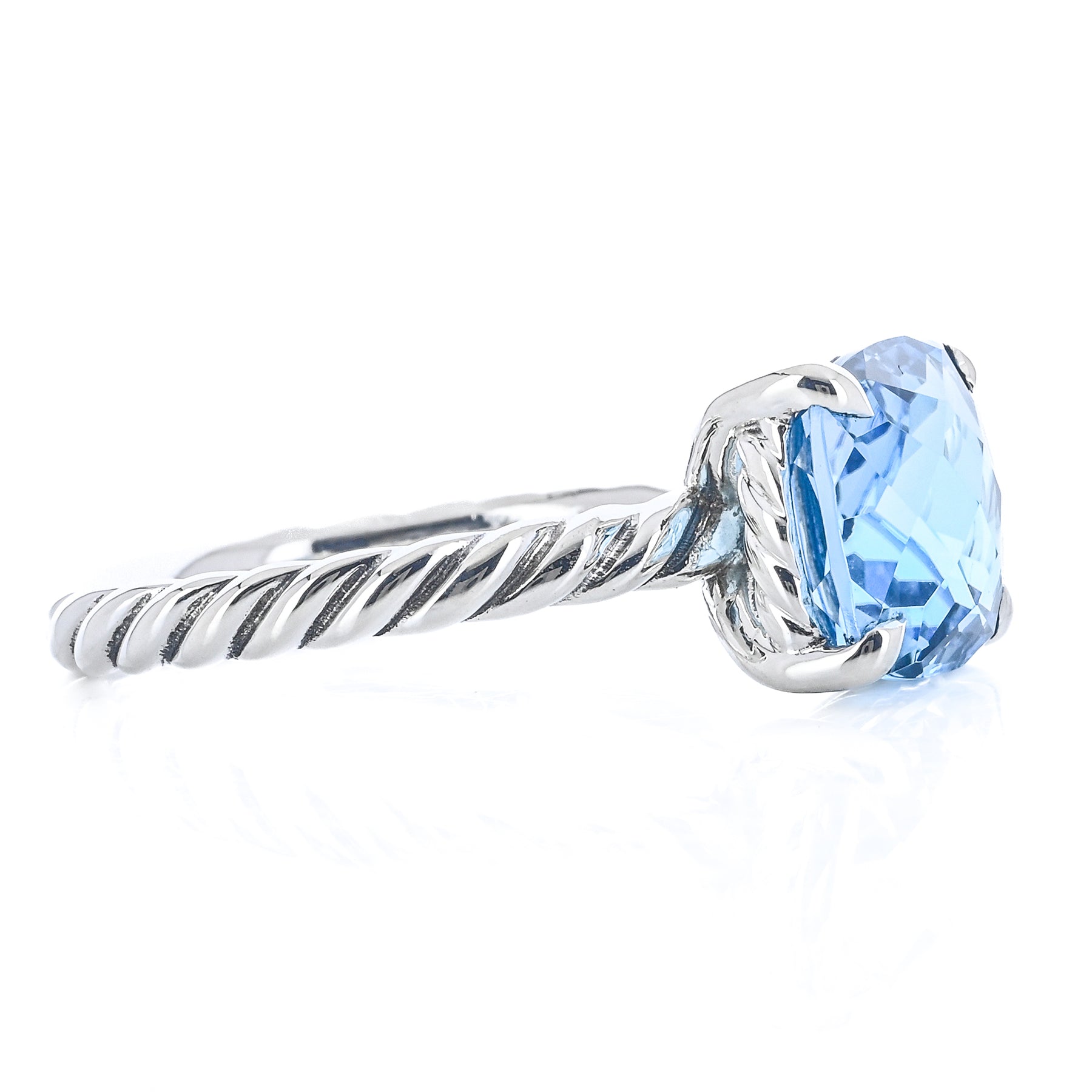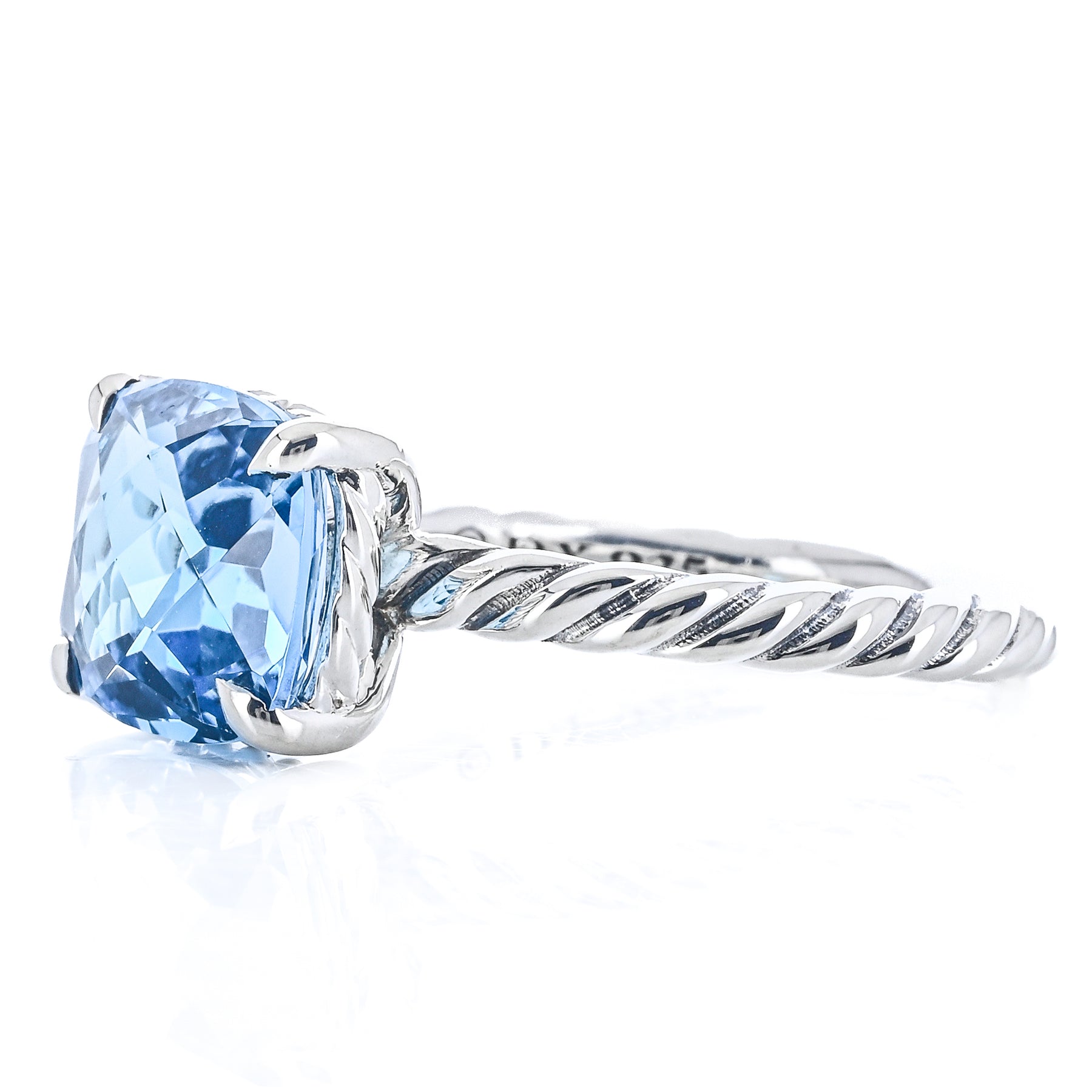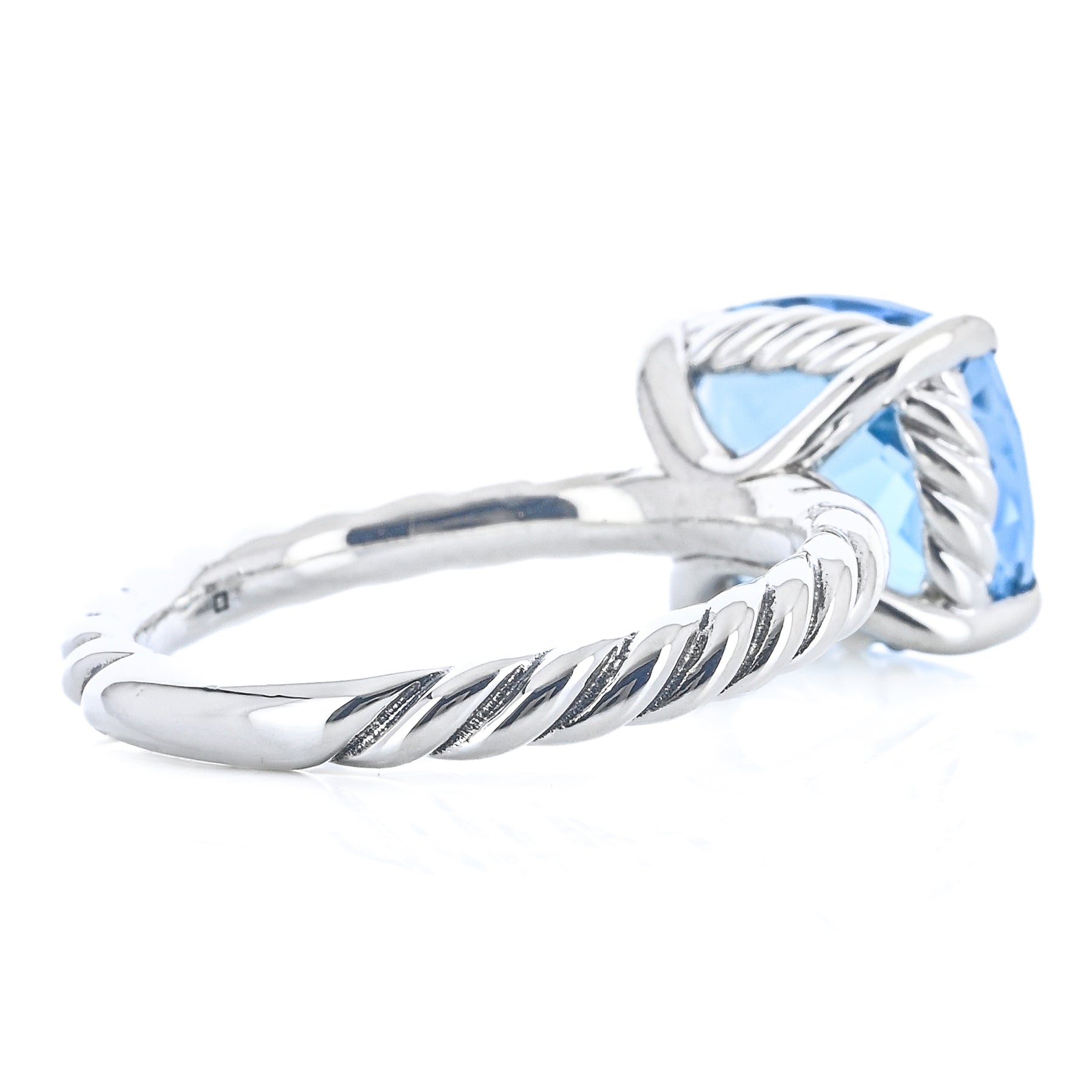 This estate David Yurman Classic Cable ring is crafted in 925 sterling silver and features a vibrant topaz center. Size 8, it showcases Yurman’s signature twisted cable design with elegant color and timeless style.